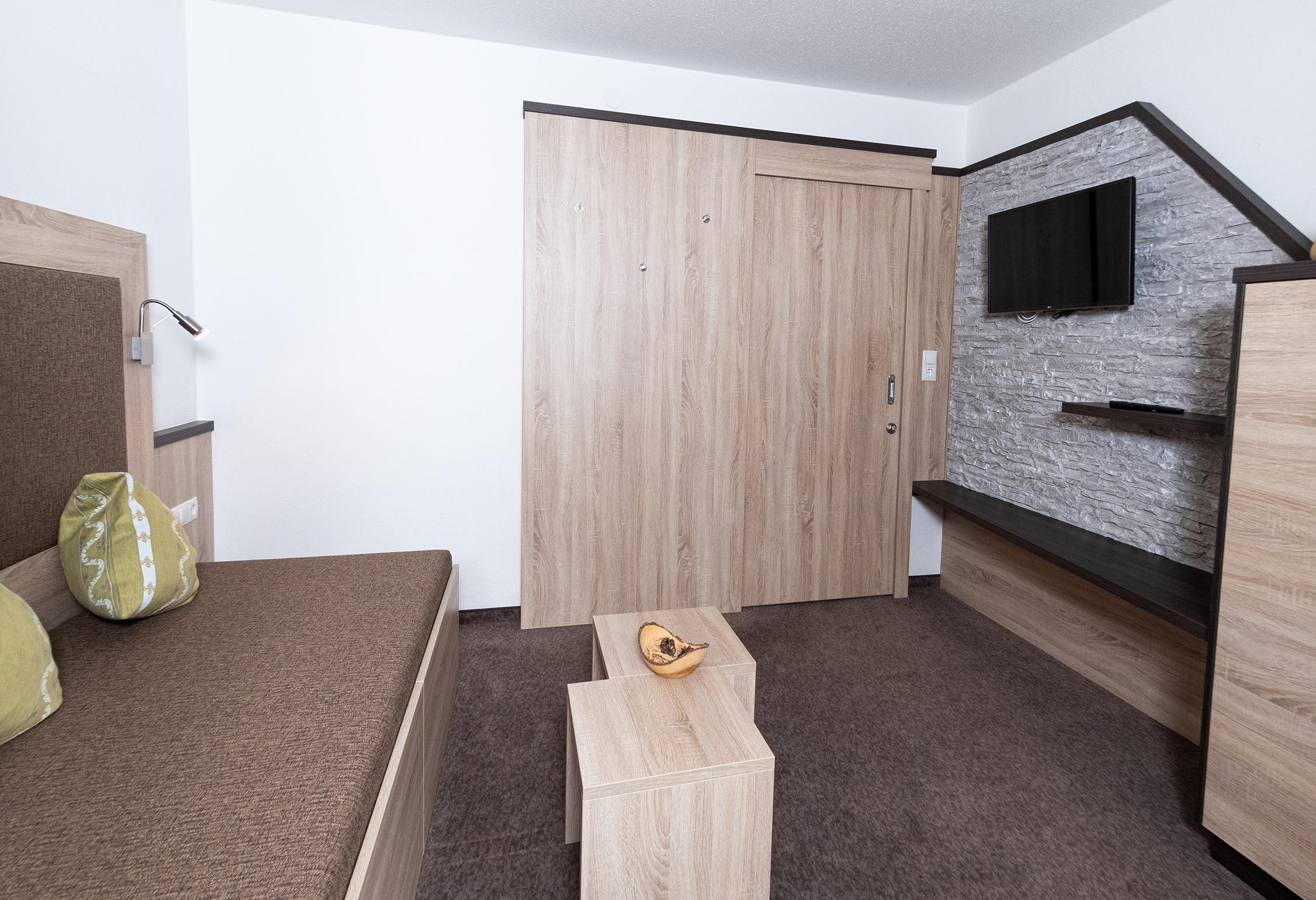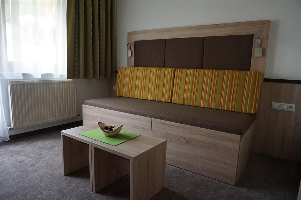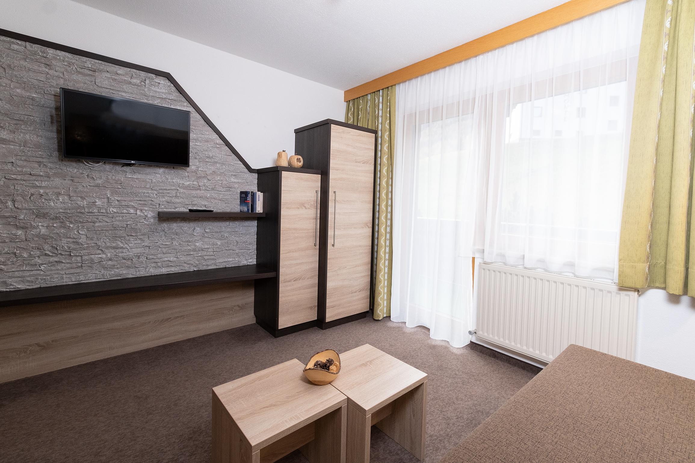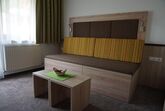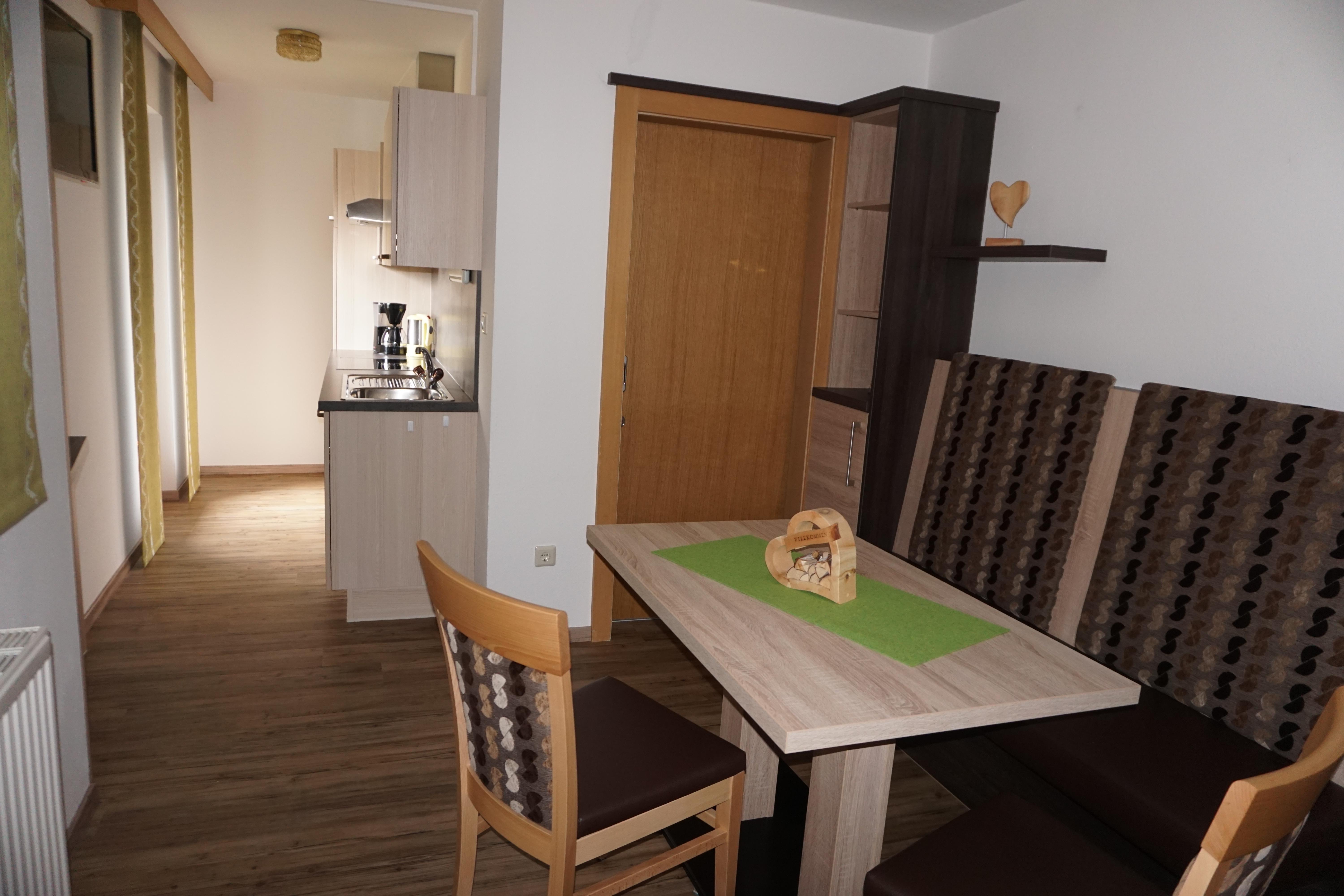 Gut ausgestattetes Appartement im 1. Stock mit 1 Schlafzimmer, getr. Wohn-Schlafraum - der als Einzel- oder Doppelzimmer (vollwertige Betten) genutzt werden kann. Eine separate Wohnküche, ein Badezimmer mit Dusche, Haarföhn, separates WC. Balkon, Radio, Kabel-Flat-TV in der Wohnküche und im Wohnraum, Größe: ca. 45 m².