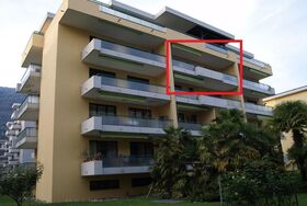 Ferienwohnung in Locarno zentral gelegen. Zweieinhalb Zimmerwohnung für maximal zwei Personen, sie befindet sich im vierten Stock und verfügt über ein helles Wohnzimmer, ein Schlafzimmer, eine Küche, zwei Badezimmer und einen grossen Balkon. Zur Wohnung gehört ein Parkplatz in der Tiefgarage.
