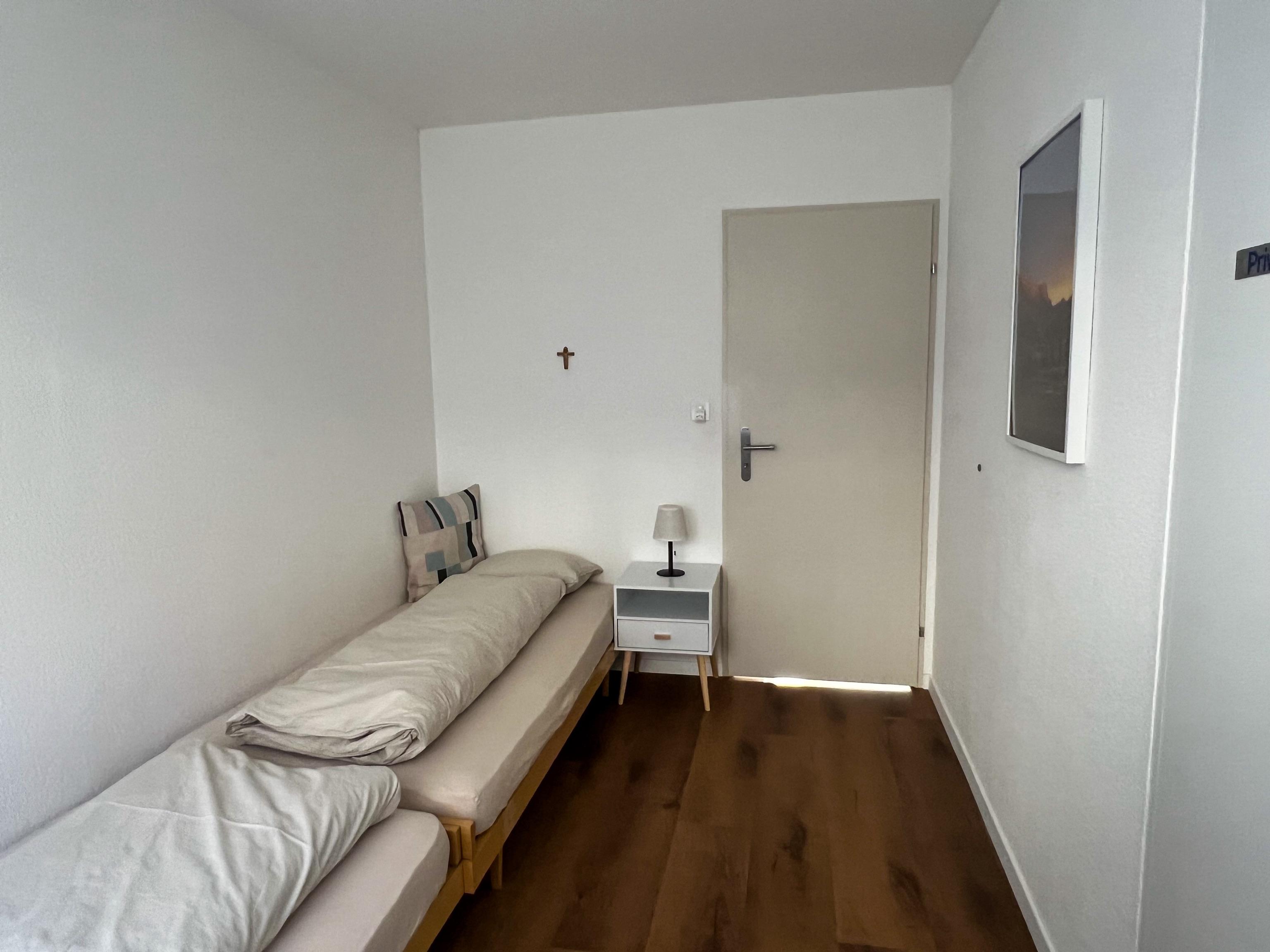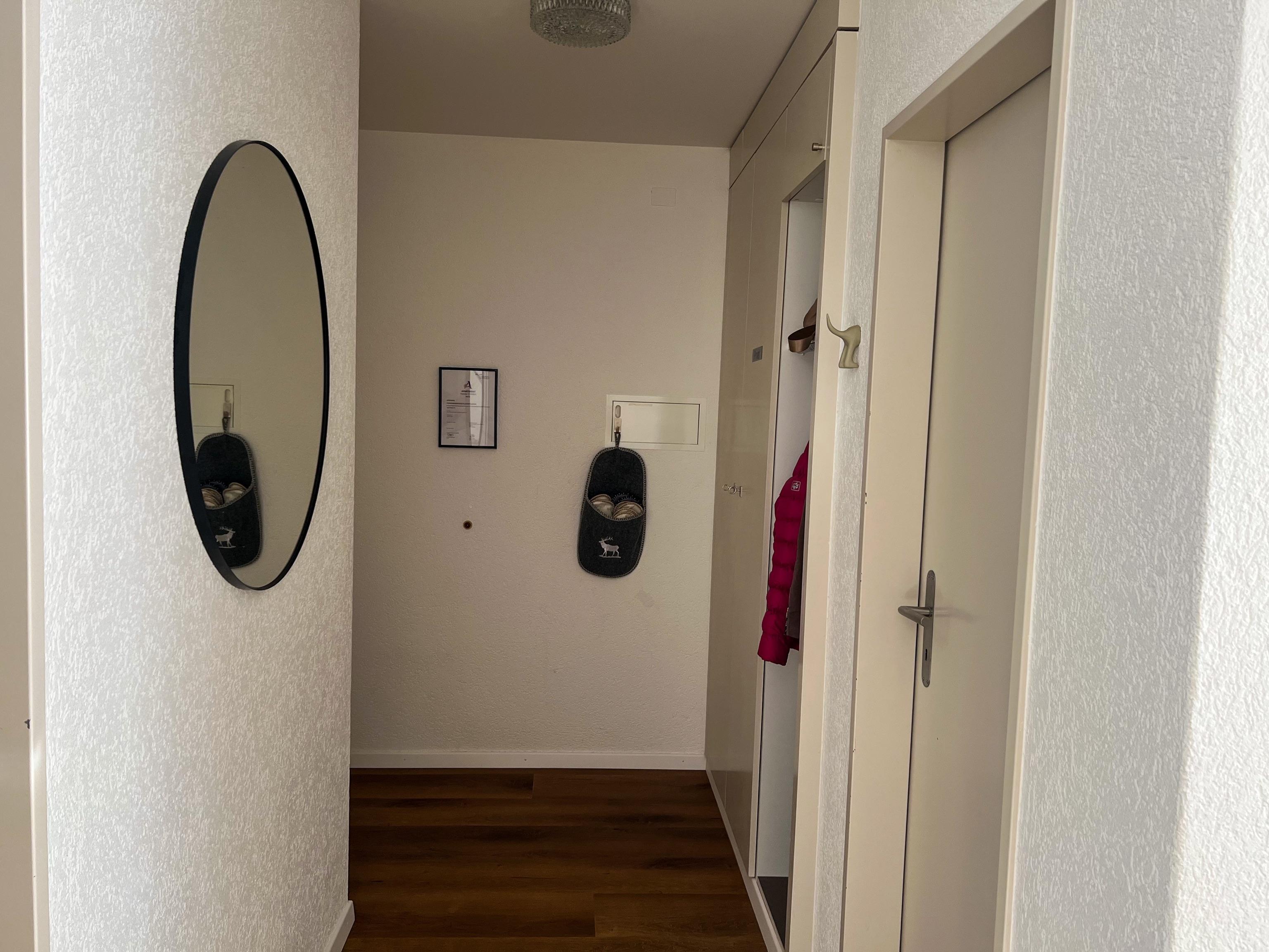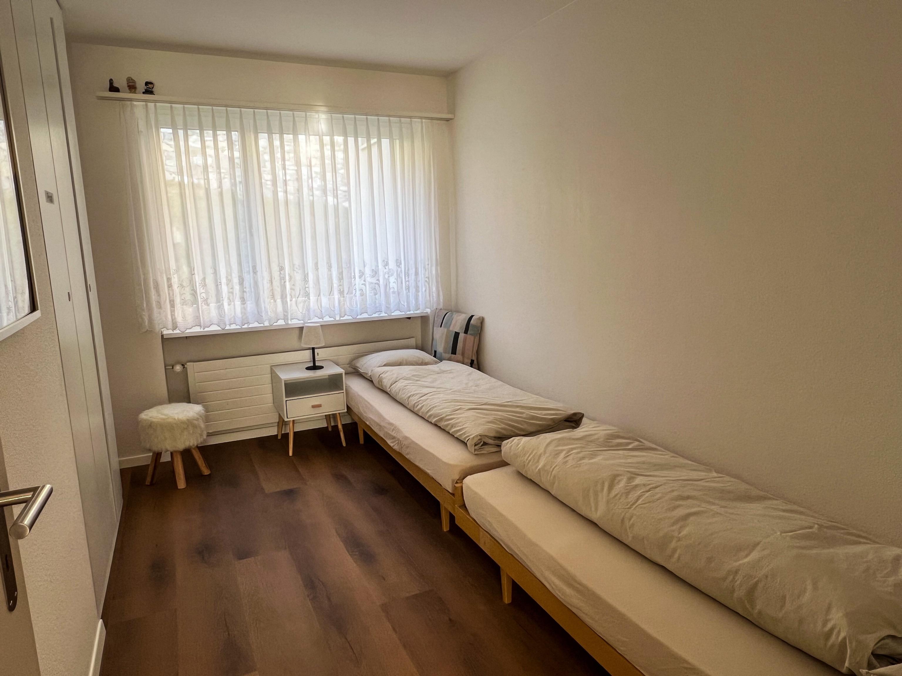 3 1/2-Zimmer-Wohnung im 1. Stock eines Mehrfamilienhauses, ca. 65 m2. 1 Schlafzimmer mit einem Doppelbett (180cm). 1 Schlafzimmer mit 3 Einzelbetten. Insgesamt 5 Schlafplätze. Bettwäsche, Frottéewäsche und Küchentücher vorhanden. Separate Küche mit Backofen/Steamer, Kühlschrank, Geschirrspülmaschine, Kaffeemaschine, Wasserkocher und Toaster. Racletteofen und Fondue-Caquelon. Dusche/WC. Haarföhn. Wohnzimmer. Cheminée. TV und Radio. WLAN. Netflix. Balkon. Garage. Skiraum. Garten zur Mitbenützung. Waschmaschine und Wäschetrockner im Haus. Haustiere nicht erlaubt. Nichtraucherwohnung. Kinderreisebett und Kinderhochstuhl Trip Trap auf Anfrage.
