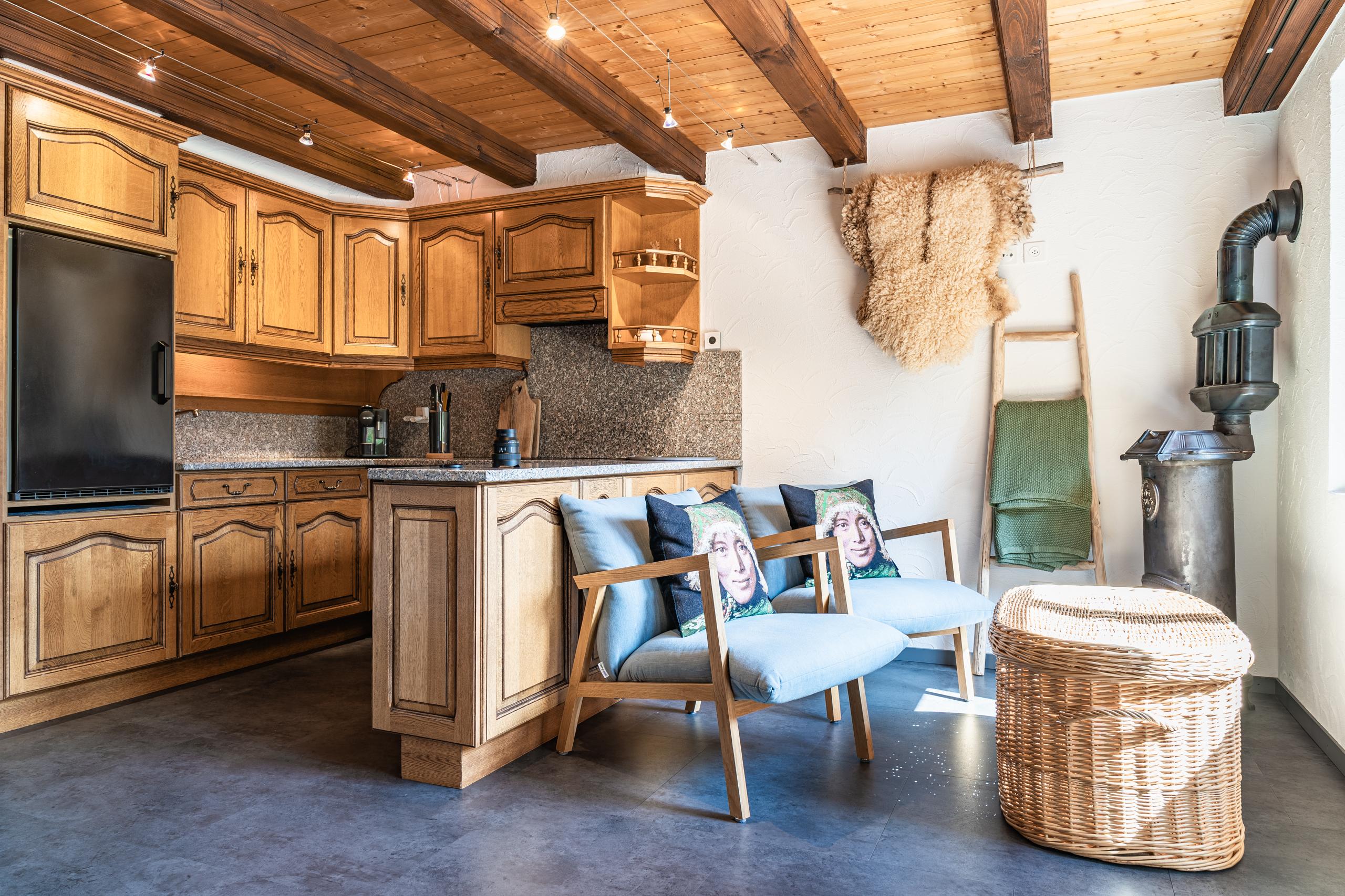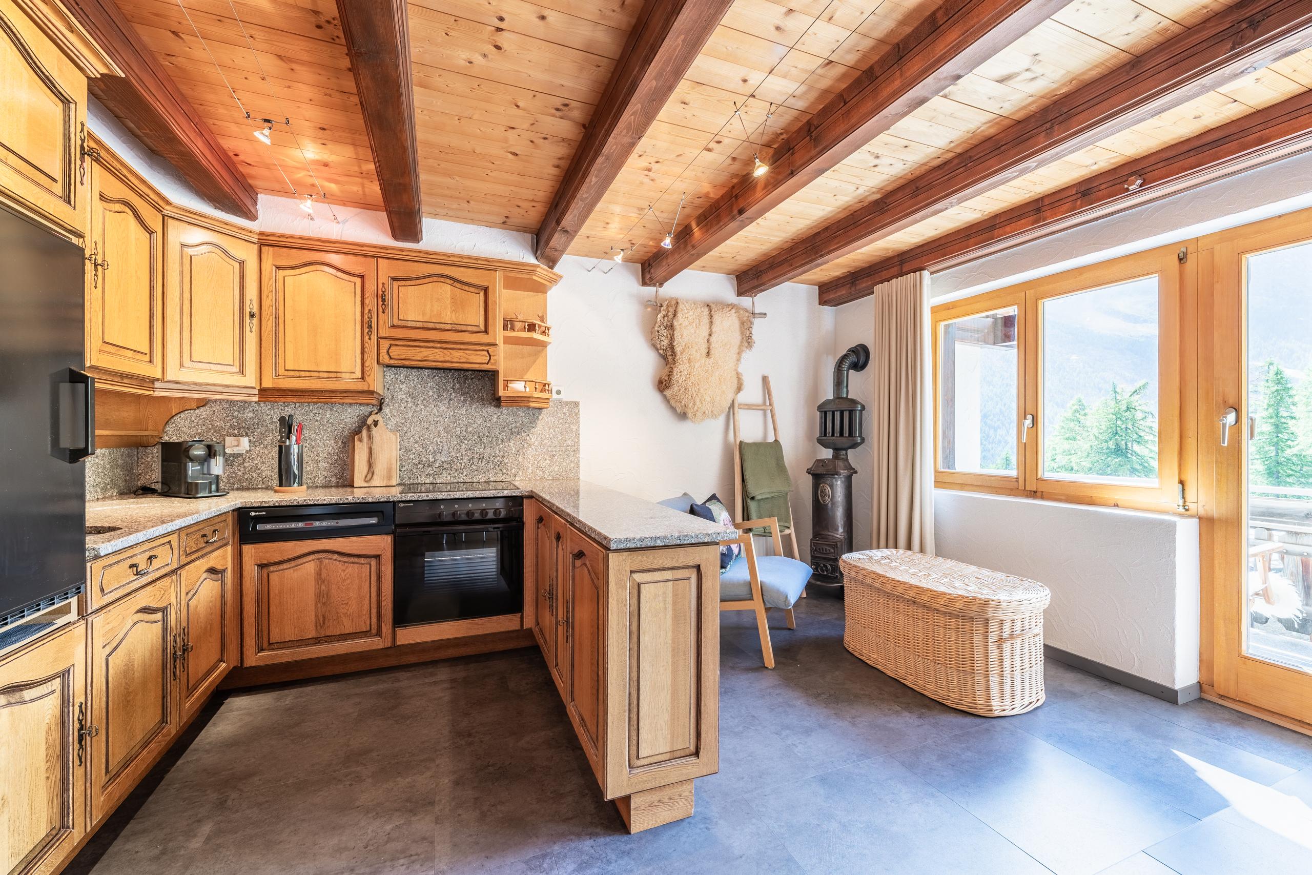 Die kürzlich renovierte Wohnung hat ein getrenntes Schlafzimmer mit zwei Betten und zwei Betten auf der offenen Galerie. Stilvoll eingerichtet, bietet die Wohnung gehobenen Komfort. Schlafen in Leinenbettwäsche und die herrliche weiche Frottierwäsche, beides aus Schweizer Produktion, lassen Sie träumen. Die bequemen Sessel lassen sich im Raum ganz nach Ihren Bedürfnissen platzieren. Der südwärts gerichtete Balkon mit grandioser Aussicht lädt zum Verweilen ein.
