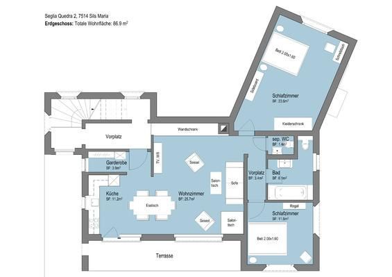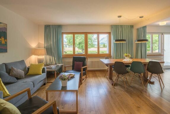 Die Chesa Flur Sulagl befindet sich an bester Lage im Dorfteil Sils Seglias. Die wunderbar unverbaute Aussicht auf die Silser Ebene und die umliegenden Berge sprechen für sich. Im Sommer wie im Winter haben Sie hier einen Platz an der Sonne! Der Umschwung ist grosszügig und der Gartensitzplatz geht ins freie Feld über. Die Wohnung ist mit Parkettboden ausgestattet und wurde im Herbst 2013 umfassend renoviert. Die Möblierung ist sehr modern und die Küche und das Bad genügt höchsten Ansprüchen. Es gibt 2 Doppelschlafzimmer und ein grosszügiges Badezimmer. Separates WC mit Lavabo vorhanden. Die Küche ist sehr gut ausgestattet mit allen nützlichen Geräten und mit einem grossen Kühlschrank. Für den Komfort sind ein grosser Flachbildschirm TV und WLAN Internetanschluss vorhanden.