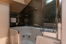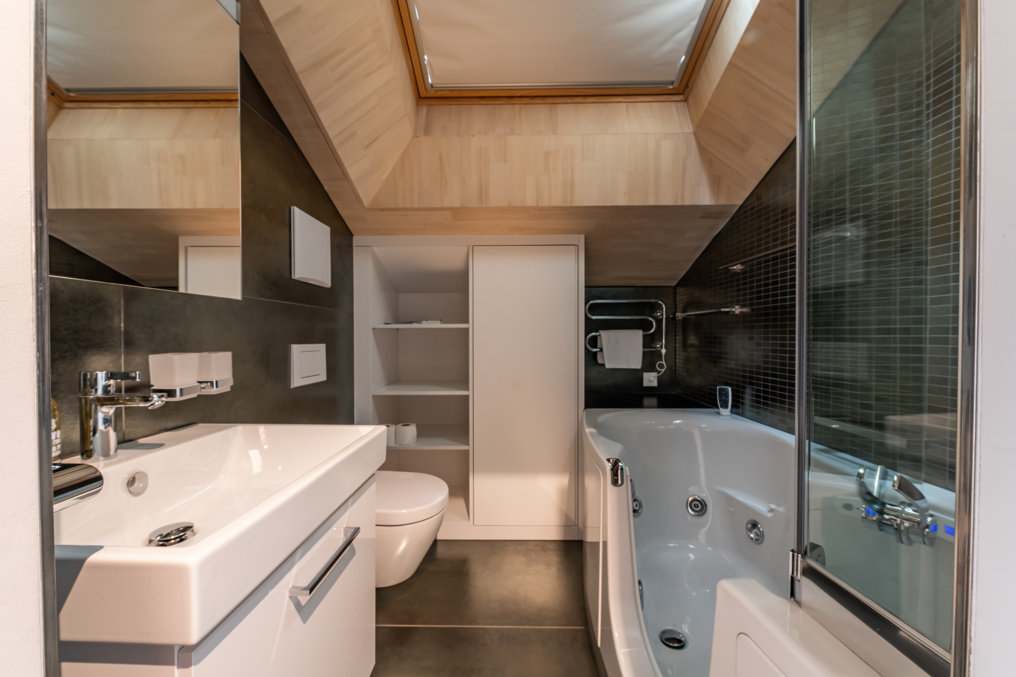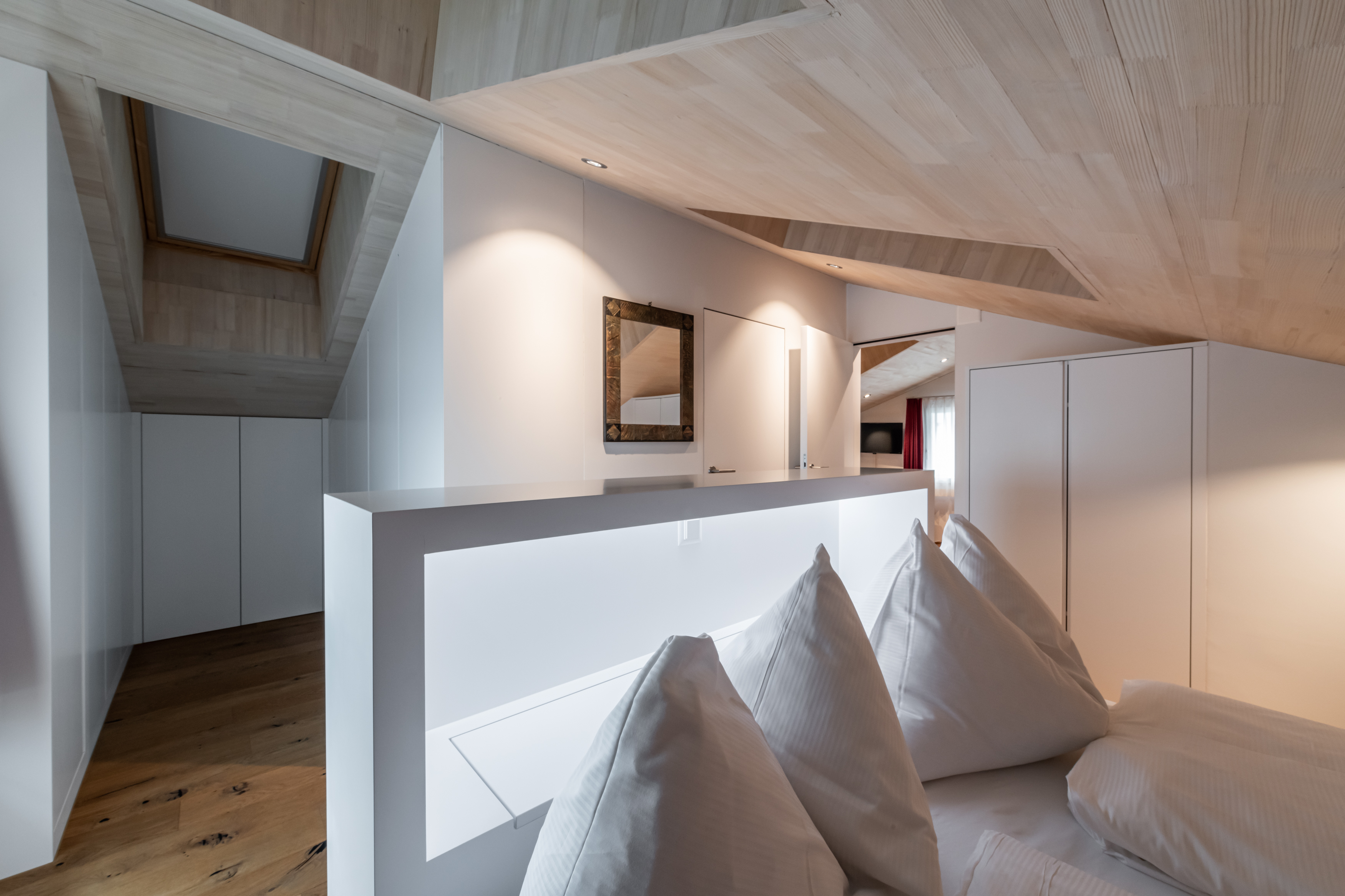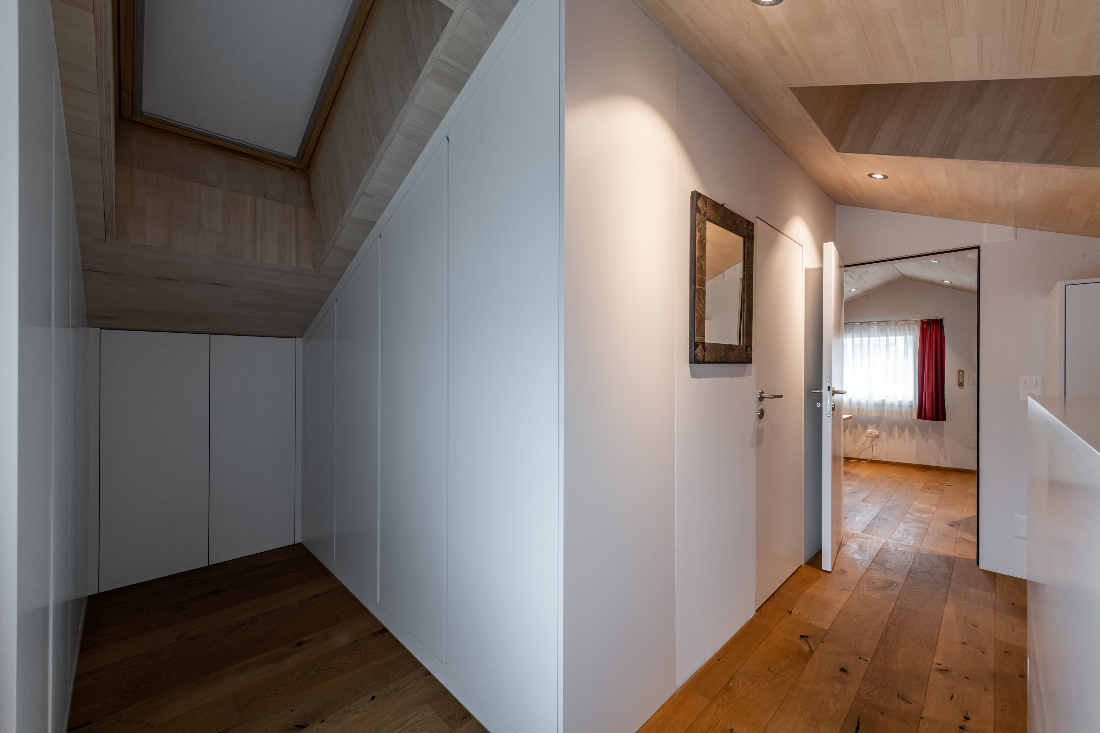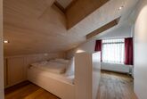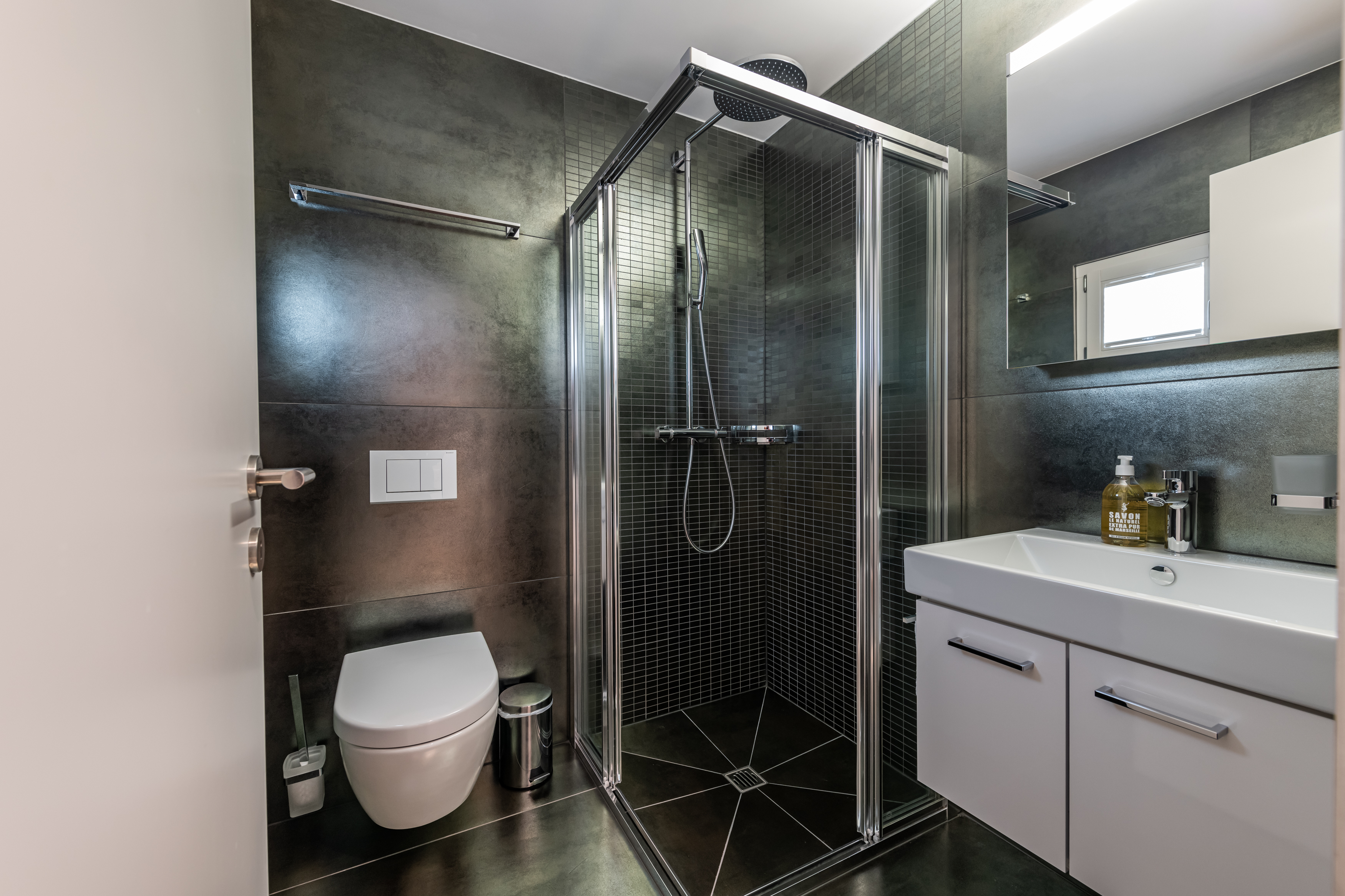 Die modern eingerichtete Wohnung bietet Platz für 6 Personen. Die geräumige Küche mit Wohnzimmer und Balkon, lädt für gesellige Abende drinnen, wie draussen ein. Nebst dem grossen Esstisch und dem gemütlichen Sofa, bringt das heimelige Cheminée eine entspannte Atmosphäre in den Raum. Im Erdgeschoss gibt es ein Kinderzimmer mit einem Kajüten- bzw. Wandbett und einem Sofabett. Im Zimmer daneben befindet sich ein Extrabett für eine Einzelperson, wobei sich im selben Raum auch die Waschmaschine und der Trockner befindet. Ebenfalls können dort Skis und Snowboards gelagert werden. Wichtig: Bei diesem Bett handelt es sich um ein Extrabett und die Person, die dort schläft, ist sich bewusst, dass dieses Zimmer nicht den gleichen Standard wie die weiteren Schlafräume aufweisen kann, da dort womöglich Skis und Snowboards aufbewahrt werden und sich die Waschmaschine und der Trockner darin befinden. Alternativ können die Wintersportgeräte oder Bikes in der Garage aufbewahrt werden. Im Erdgeschoss gibt es eine Nasszelle mit Toilette und Dusche. Oberhalb der Küche und des Wohnraumes im ersten Stock, befindet sich eine Galerie mit Schreibtisch und TV. Dahinter folgt ein separates Zimmer mit weiterem Doppelbett und einem Badezimmer mit begehbarer Badewanne/Dusche und Toilette.