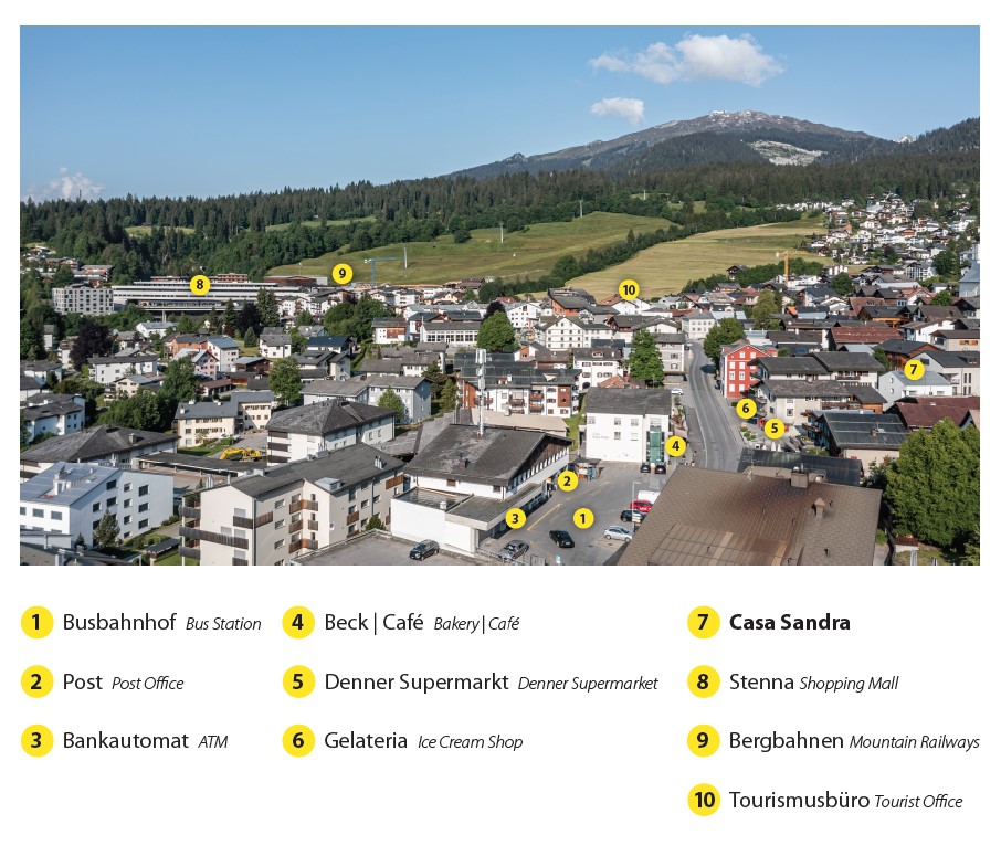 Das Casa Sandra befindet sich mitten in Flims, direkt neben der Post mit Bushaltestelle und einem kleinen Supermarkt namens Denner. Die Unterkunft verfügt über einen Garagenparkplatz.