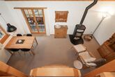 Helles Wohnzimmer mit integriertem Essbereich, gemütlichem Sofa und Fernseher, Cheminee (Nutzung nicht erlaubt), kein WLAN