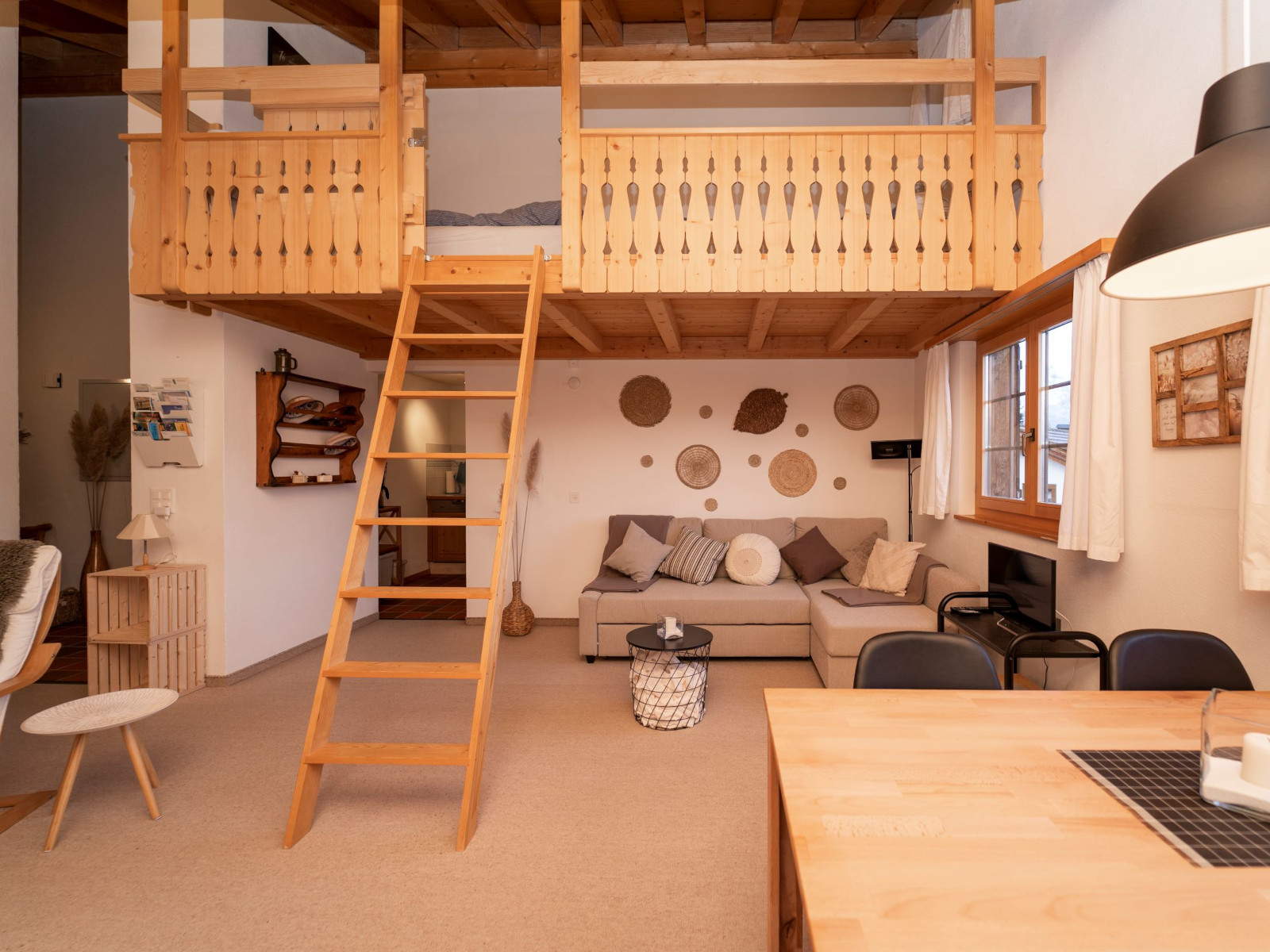 Die gemütliche Wohnung mit grossem Balkon liegt oberhalb von Affeier in der schönen Walsersiedlung Misanenga. 200 Meter von der 4er Sesselbahn nach Untermatt sowie dem Rufali Sport- und Freizeitpark entfernet. Abends können Sie mit den Skiern über die Heimabfahrtpiste direkt zur Siedlung fahren.