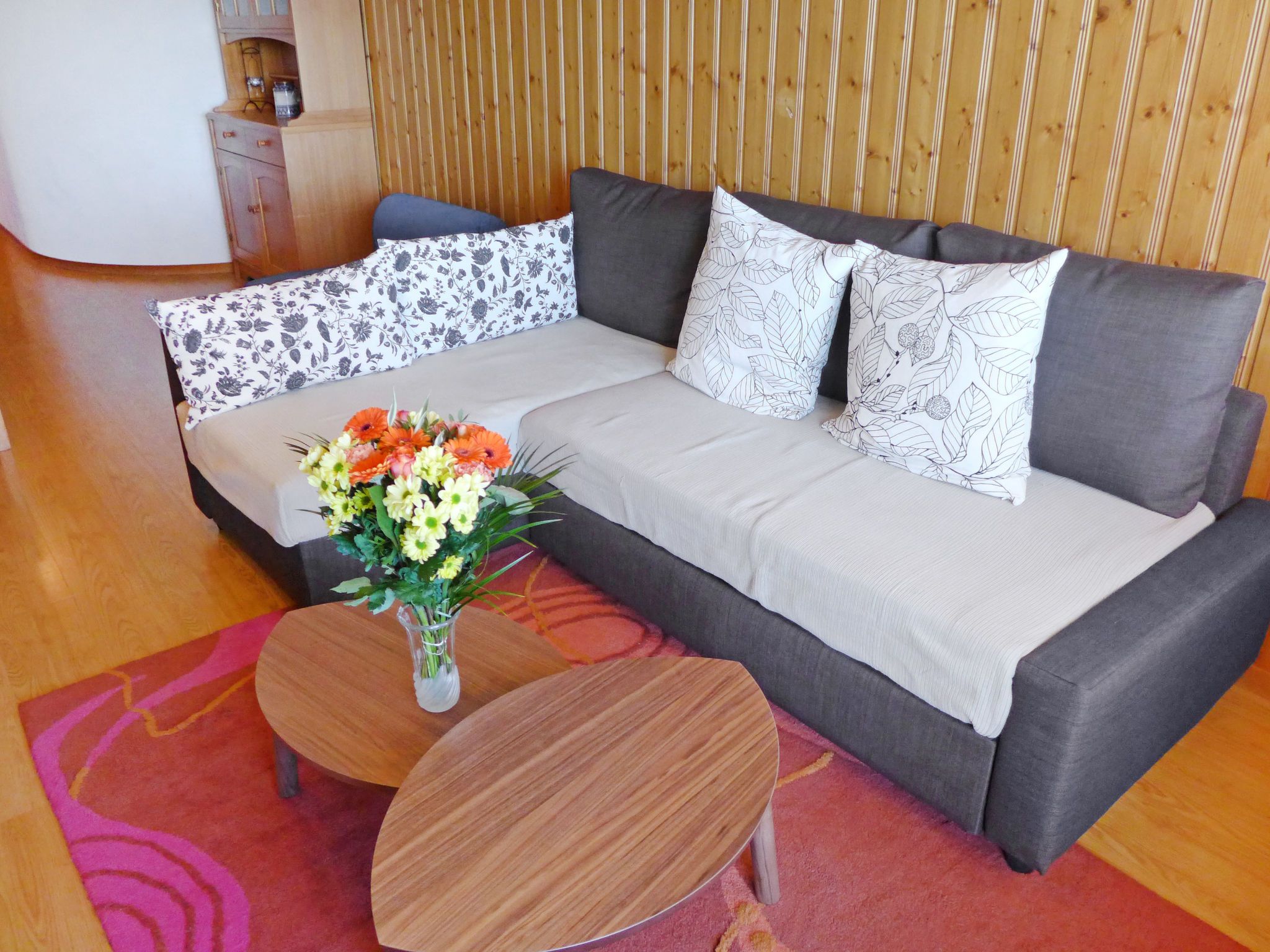 2-Zimmer-Wohnung 38 m2 im 1. Stock, Südlage. Schön und gemütlich eingerichtet: Wohn-/Esszimmer mit 1 Diwanbett und offenem Kamin (nur Deko), Digital-TV, Internationale TV-Sender, Radio, CD und DVD. Ausgang zum Balkon. 1 Zimmer mit 1 franz. Bett. Offene Küche (4 Kochplatten, Backofen, Wasserkocher, Mikrowelle, elektrische Kaffeemaschine, Fondue Set (Chinoise, Käse)). Bad, sep. WC. Südlage. Terrassenmöbel. Herrliche Sicht auf die Berge und das Tal. Zur Verfügung: Internet (WLAN, gratis). Parkplatz. Bitte beachten: Nichtraucher-Unterkunft. Maximal 1 kleines Haustier/Hund erlaubt.