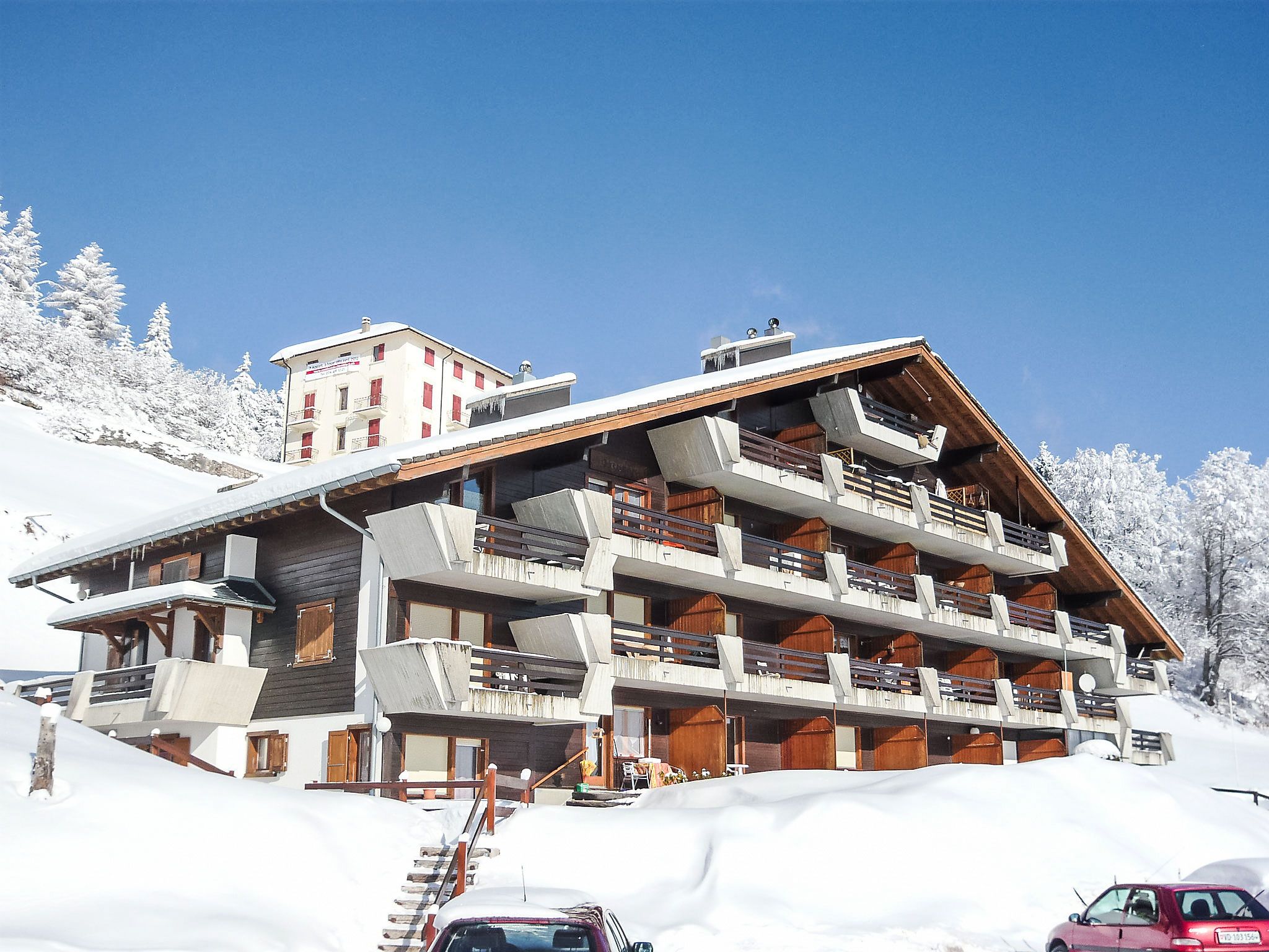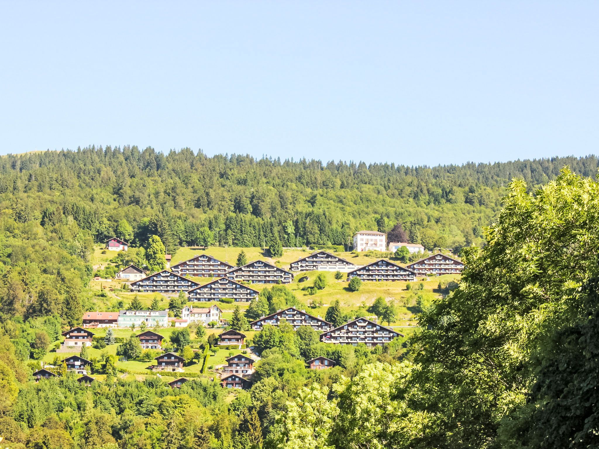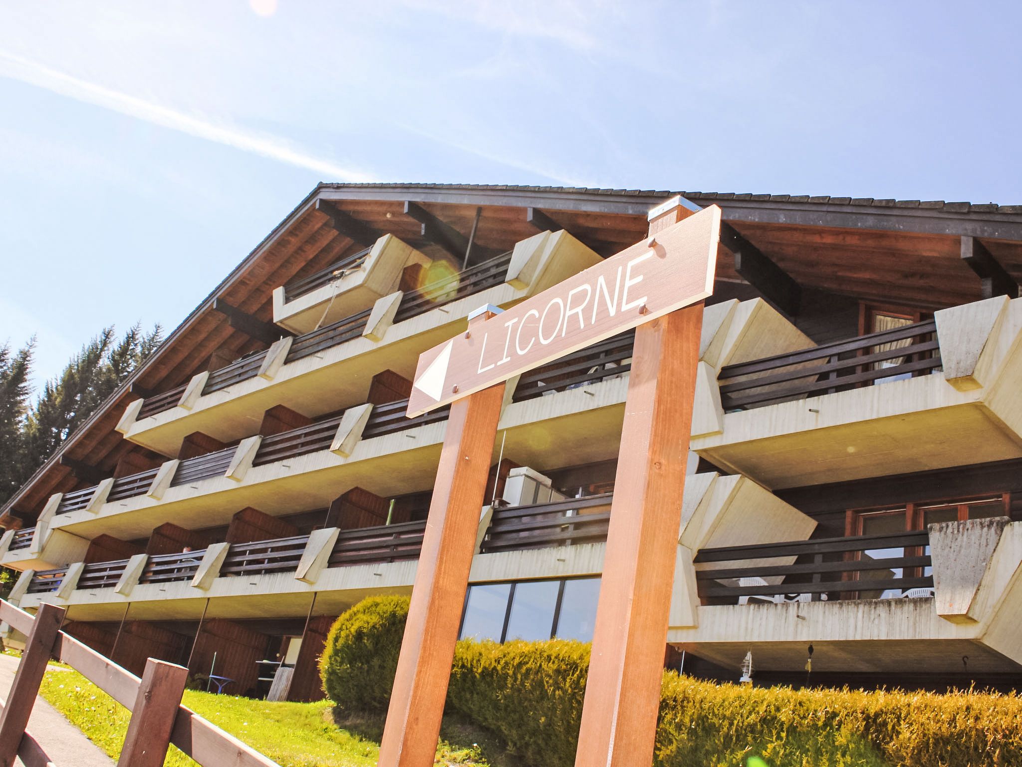 Les Petites Roches: Chalet Licorne. Am Ortsrand, 3 km vom Zentrum, sonnige Lage, Richtung Süden. Im Hause: Skiraum, Zentralheizung, Waschmaschine (extra) (zur Mitbenutzung). Öffentliche Parkplätze 20 m. Einkaufsgeschäft 3 km, Restaurant 100 m, Bushaltestelle 500 m, Bahnstation 3 km, Freibad 500 m, Hallenbad 2 km, Thermalbad 20 km. Tennis 3 km, Sportzentrum 3 km, Skisportanlagen 2 km, Skischule 2 km, Kinderskischule 2 km, Langlaufloipe 2 km, Eisfeld 8 km. Bitte beachten: Fahrzeug empfohlen. Das Chalet liegt im oberen Teil der Residenz.