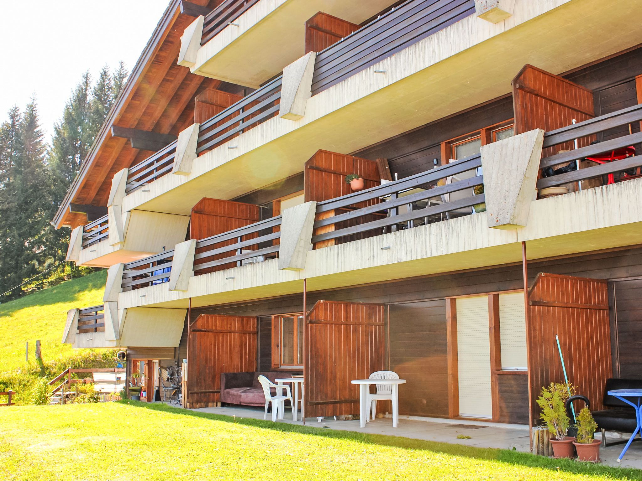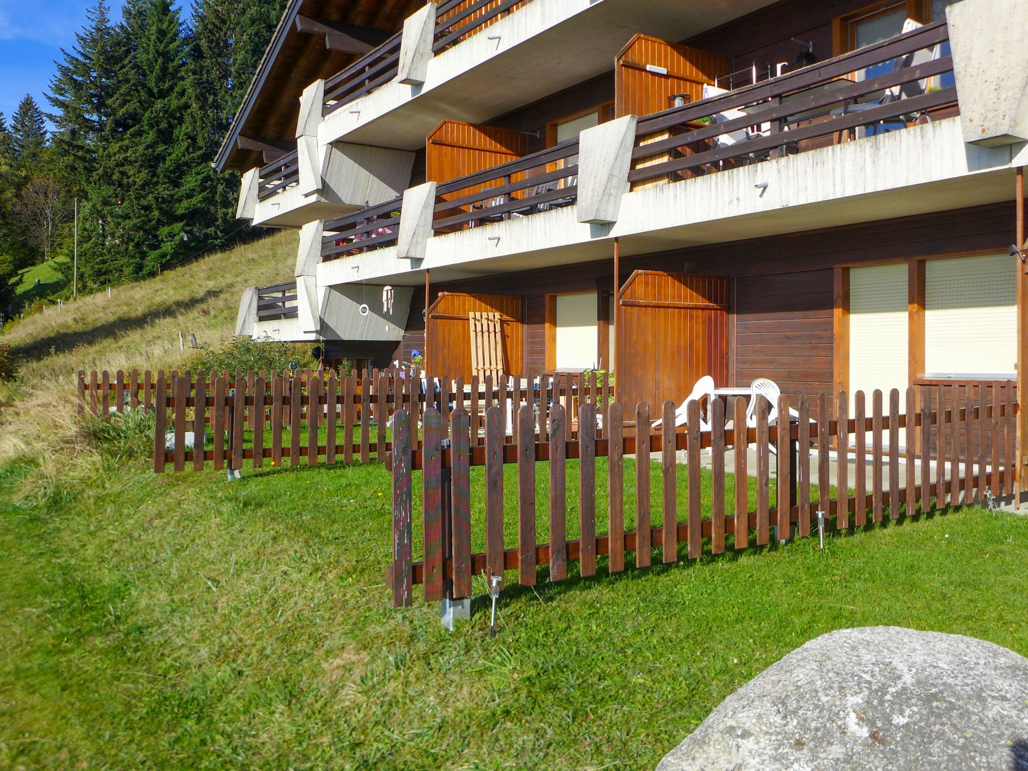 1-Zimmer-Wohnung 25 m2, im Erdgeschoss, Südlage. Zweckmässig eingerichtet: Wohn-/Schlafzimmer mit 1 Diwanbett (150 cm, Länge 190 cm), offenem Kamin (nur Deko), Esstisch. Ausgang zum Gartensitzplatz. Kochnische (4 Kochplatten, Backofen, Wasserkocher, Mikrowelle, Fondue Set (Käse)). Bad/WC. Heizung. Südlage, kleiner Gartensitzplatz. Terrassenmöbel. Schöne Sicht auf die Berge und das Tal. Zur Verfügung: Babybett bis 2 Jahre (extra). Parkplatz.