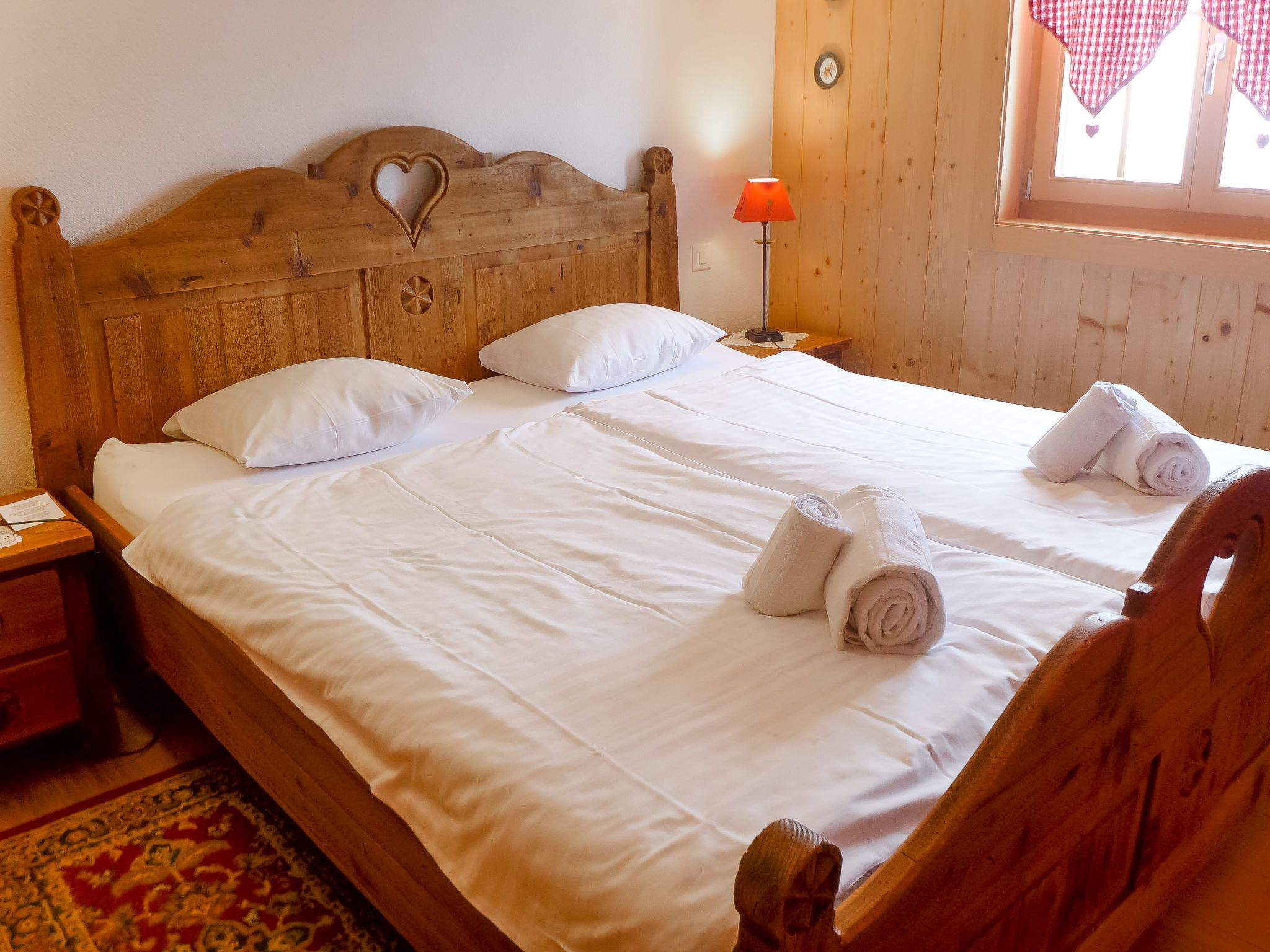 Chalet La Poya, 4-Zimmer-Chalet 110 m2. Komfortabel und geschmackvoll eingerichtet: Wohn-/Esszimmer mit offenem Kamin, Esstisch, TV, Flachbildschirm, Stereoanlage und DVD. Ausgang zur Terrasse. Offene Küche (Backofen, Geschirrspüler, 4 Glaskeramikplatten, Wasserkocher, Mikrowelle, Tiefkühler, elektrische Kaffeemaschine, Kapseln für die Kaffeemaschine (Nespresso) extra, Racletteofen, Fondue Set (Käse)). Sep. WC. Unteres Geschoss: 1 Zimmer mit 1 Doppelbett und Sat-TV. Ausgang zur Terrasse. Offene kleine Schlafnische mit Vorhang mit 1 x 2 Etagenbetten. Ausgang zur Terrasse. 1 Zimmer mit 1 franz. Bett. Bad/Dusche/WC. Terrassenmöbel, Elektrogrill. Herrliche Panoramasicht auf die Berge und die Landschaft. Zur Verfügung: Waschmaschine, Wäschetrockner, Haartrockner. Internet (Wireless LAN, gratis). Bitte beachten: Nichtraucher-Unterkunft. Maximal 2 Haustiere/Hunde erlaubt. Anstelle eines abgeschlossenen Schlafzimmers befinden sich manche Schlafplätze in einem offenen Bereich (Galerie, Nische etc.).