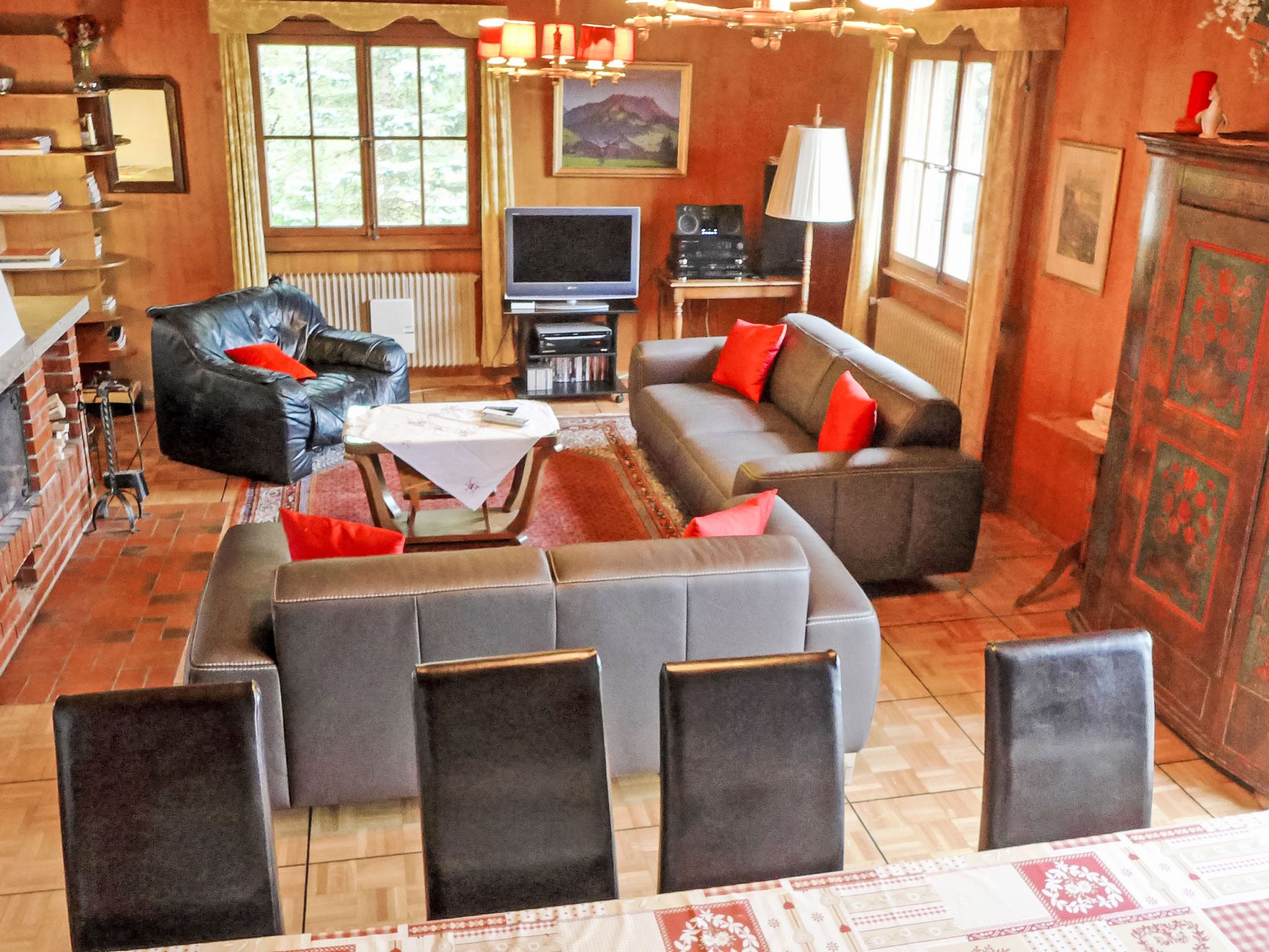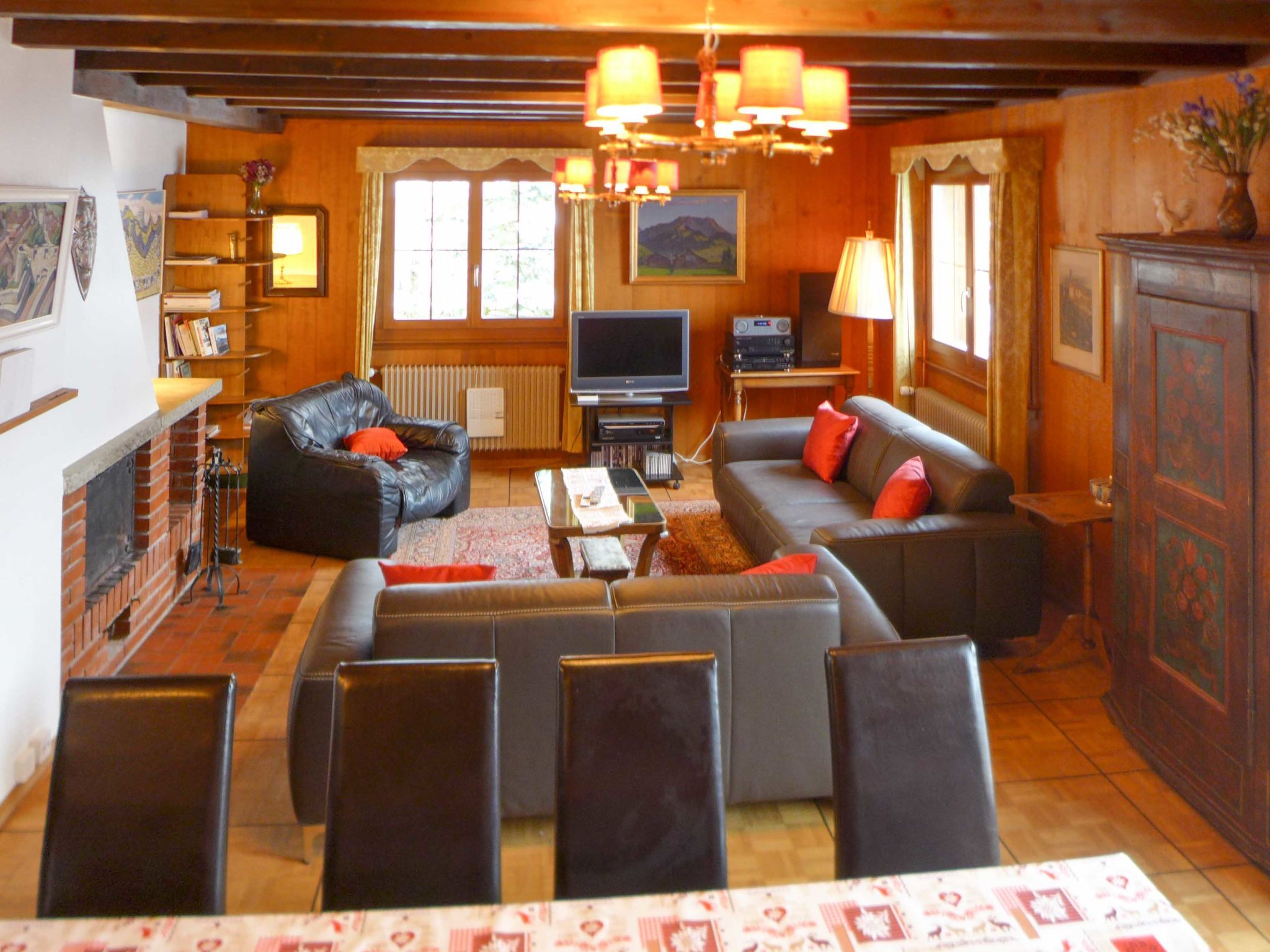 Chalet Clairval, 7-Zimmer-Chalet 250 m2 auf 3 Stockwerken. Komfortabel und rustikal eingerichtet: Wohn-/Esszimmer mit offenem Kamin, Esstisch, Kabel-TV, Internationale TV-Sender, Stereoanlage, DVD und DVD Sammlung vorhanden. Ausgang zum Balkon. 1 Zimmer mit 2 Betten (90 cm, Länge 200 cm). Ausgang zum Balkon. 1 Zimmer mit 2 Betten (90 cm, Länge 200 cm). Küche (3 Kochplatten, Backofen, Geschirrspüler, Toaster, Wasserkocher, Mikrowelle, elektrische Kaffeemaschine, Kapseln für die Kaffeemaschine (Nespresso) extra, Racletteofen, Fondue Set (Chinoise, Käse)) mit kleinem Esstisch. Bad/WC. Unteres Geschoss: Wohnzimmer mit Essecke, Bar und Radio. 1 Doppelzimmer mit 1 Doppelbett (160 cm, Länge 200 cm). Dusche/WC. Ölheizung. Obergeschoss: 1 Zimmer mit 2 Betten (90 cm, Länge 200 cm). 1 Zimmer mit 1 Doppelbett (160 cm, Länge 200 cm), Waschbecken. Sep. WC. Grosser Balkon, grosser Garten. Terrassenmöbel, Balkonmöbel, Liegestühle (9). Sehr schöne Sicht auf die Berge, die Landschaft und die Ortschaft. Zur Verfügung: Waschmaschine, Wäschetrockner, Kinderhochstuhl, Babybett bis 3 Jahre, Haartrockner. Internet (Wireless LAN, gratis). Bitte beachten: geeignet für Familien. Nichtraucher-Unterkunft. Maximal 2 Haustiere/Hunde erlaubt.