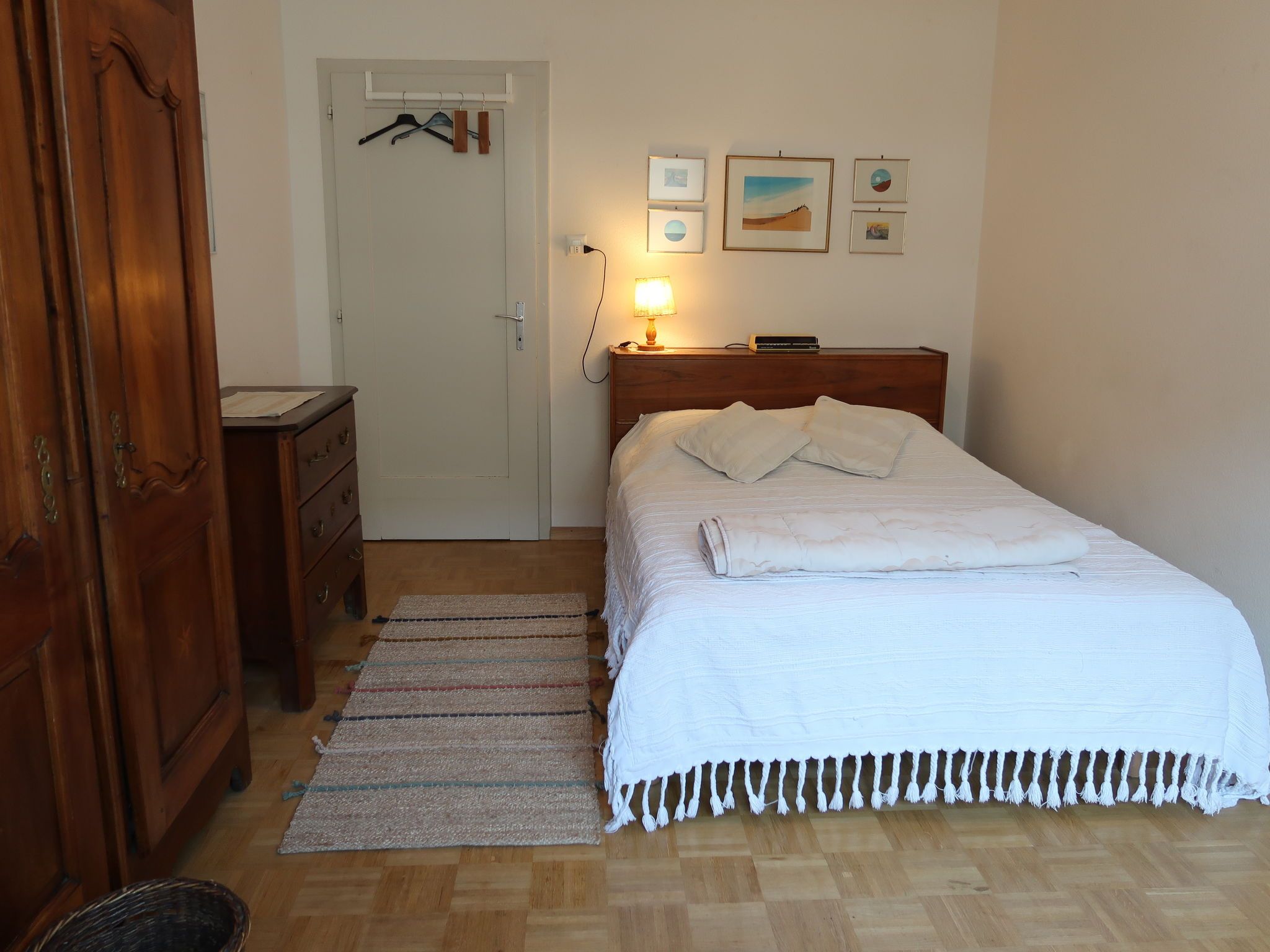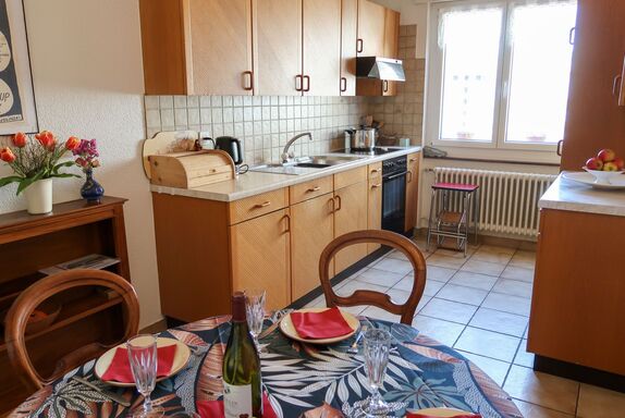 Pérolles, 2-Zimmer-Wohnung im 5. Stock. Objekt geeignet für 2 Erwachsene + 2 Kinder. Zweckmässig und komfortabel eingerichtet: Wohnzimmer mit 1 Doppeldiwanbett (140 cm, Länge 200 cm), TV und DVD. Ausgang zur Loggia. 1 Zimmer mit 1 Doppelbett (140 cm, Länge 190 cm). Küche (Backofen, 4 Glaskeramikplatten, Toaster, Wasserkocher, elektrische Kaffeemaschine, Kapseln für die Kaffeemaschine (Italienne)) mit Esstisch. Bad/WC. Ölheizung. Kleine. Wintergarten. Sicht auf die Ortschaft. Zur Verfügung: Bügeleisen. Internet (Wireless LAN, gratis). Bitte beachten: Nichtraucher-Unterkunft.