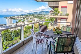Residenz Montreux - Panorama. Im Ort, 800 m vom Zentrum von Montreux, zentrale, erhöhte Lage, 750 m vom See, in einer Sackgasse. Im Hause: Fahrstuhl, Zentralheizung. Einkaufsgeschäft 800 m, Lebensmittelgeschäft, Supermarkt, Einkaufszentrum 1 km, Bushaltestelle Montreux-Collège 68 m, Bahnstation Montreux 800 m, See Lac Léman 750 m. Nahe gelegene Sehenswürdigkeiten: Château-de-Chillon 3 km, Vevey 7.5 km, Musée Olympique Lausanne 27 km, Aquaparc / Swiss Vapeur Parc 17 km, Genf/Geneva 93 km. Bekannte Skigebiete sind gut erreichbar: Rocher-de-Naye, Portes du Soleil 38 km, Gstaad 71 km. Wandergebiete: Rocher-de Naye. Bitte beachten: Eisenbahnlinie in der Nähe.