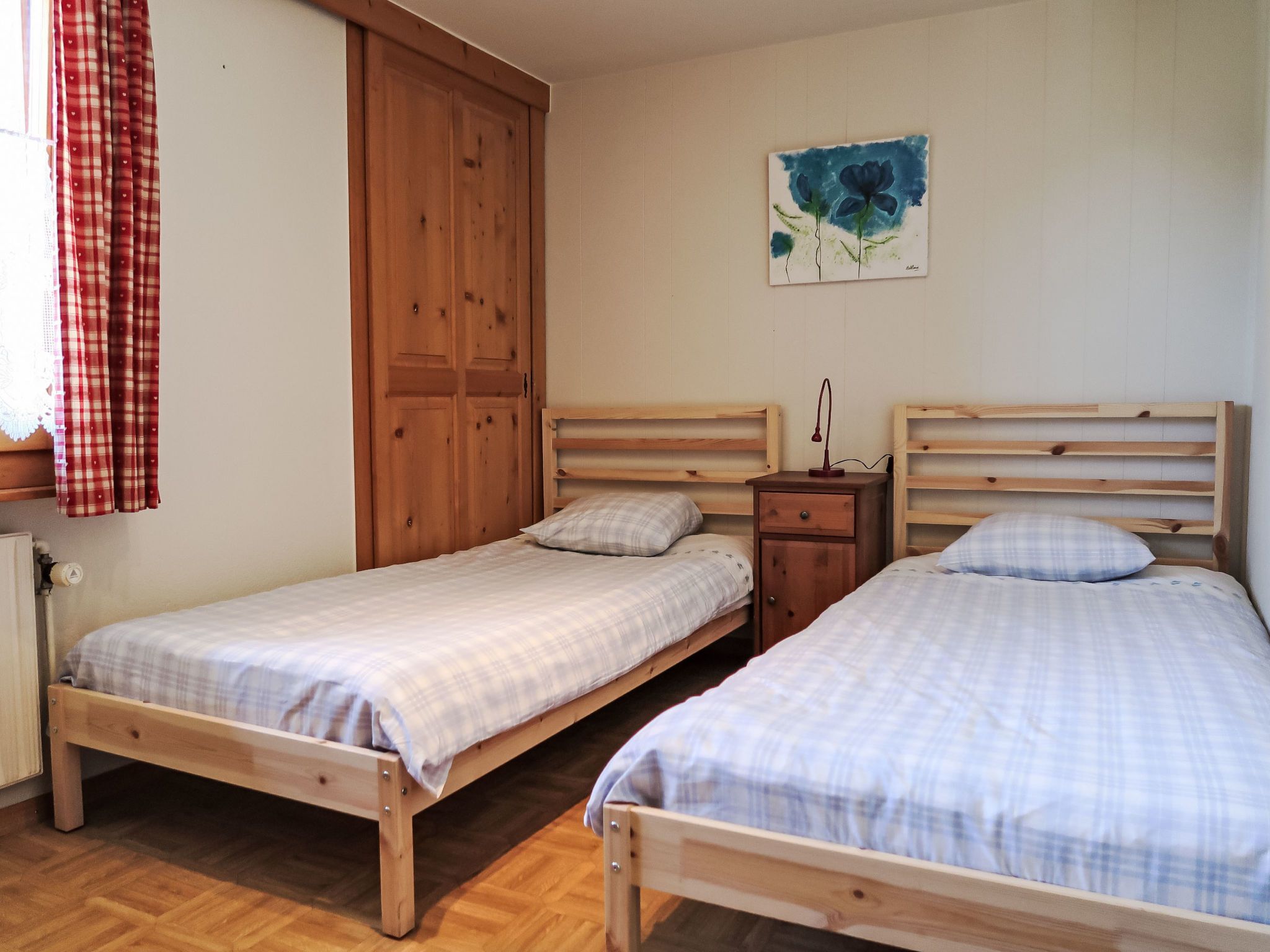 Val Neige Apt. 12, 3-Zimmer-Wohnung 49 m2 im 2. Stock. Komfortabel und gemütlich eingerichtet: Wohn-/Esszimmer mit Schwedenofen, TV und Stereoanlage. Ausgang zum Balkon. 1 Zimmer mit 1 franz. Bett (1 x 140 cm, Länge 200 cm). 1 Zimmer mit 2 Betten (90 cm, Länge 200 cm). Offene Küche (Backofen, 4 Glaskeramikplatten, Toaster, Wasserkocher, Mikrowelle, Tiefkühler, Racletteofen, Fondue Set (Käse)) mit Esstisch. Bad/WC. Parkettboden. Balkon 10 m2. Balkonmöbel. Sicht auf die Berge, die Landschaft und die Ortschaft. Zur Verfügung: Babybett bis 2 Jahre, Haartrockner. Internet (Wireless LAN, gratis). Bitte beachten: geeignet für Familien. Nichtraucher-Unterkunft.
