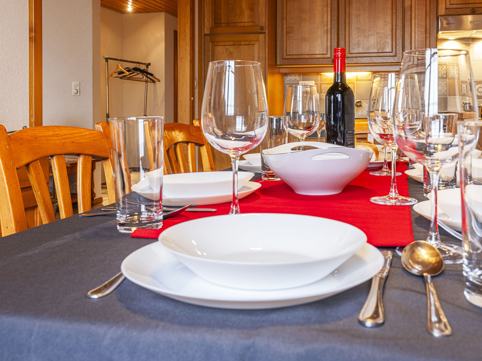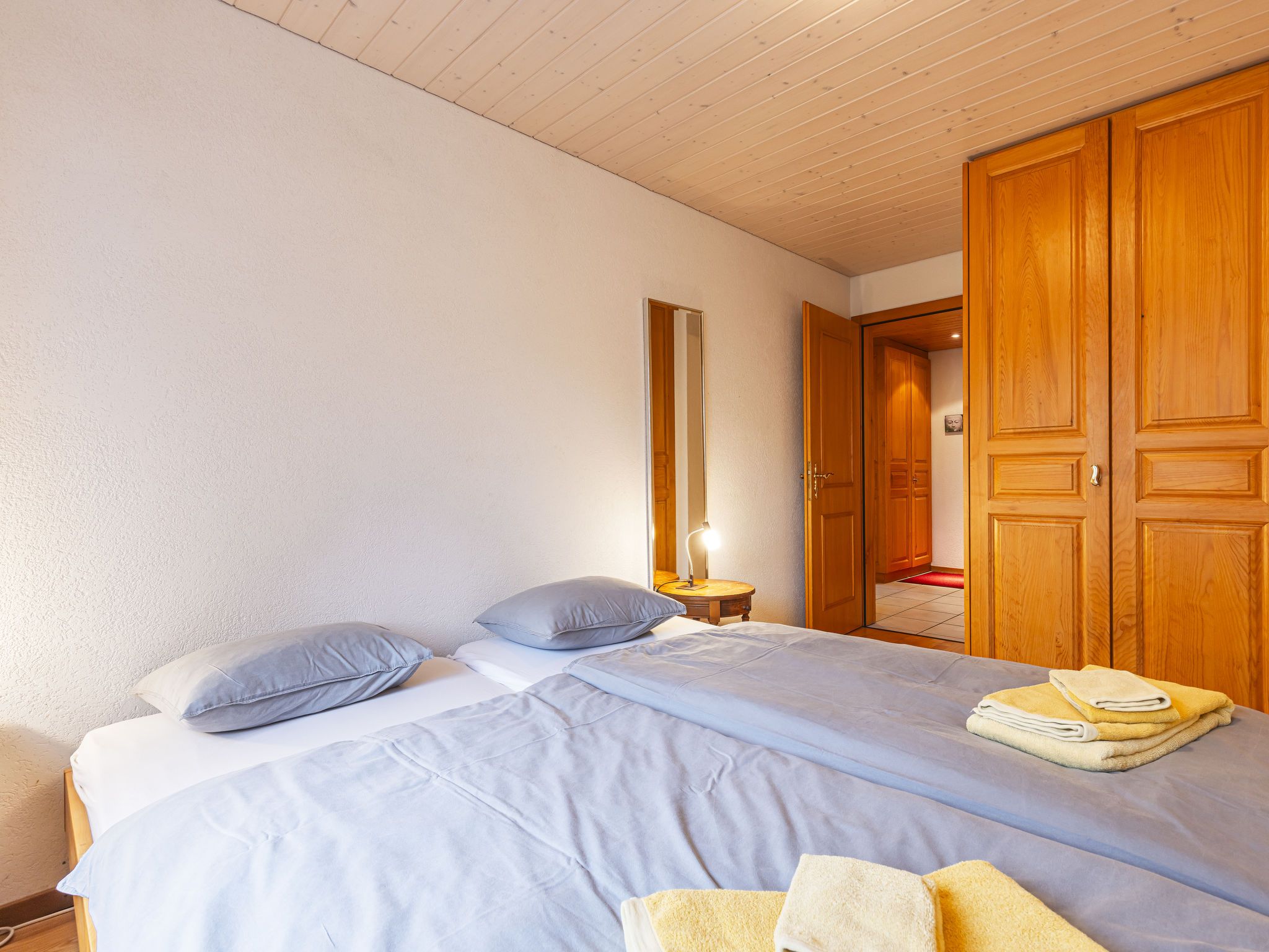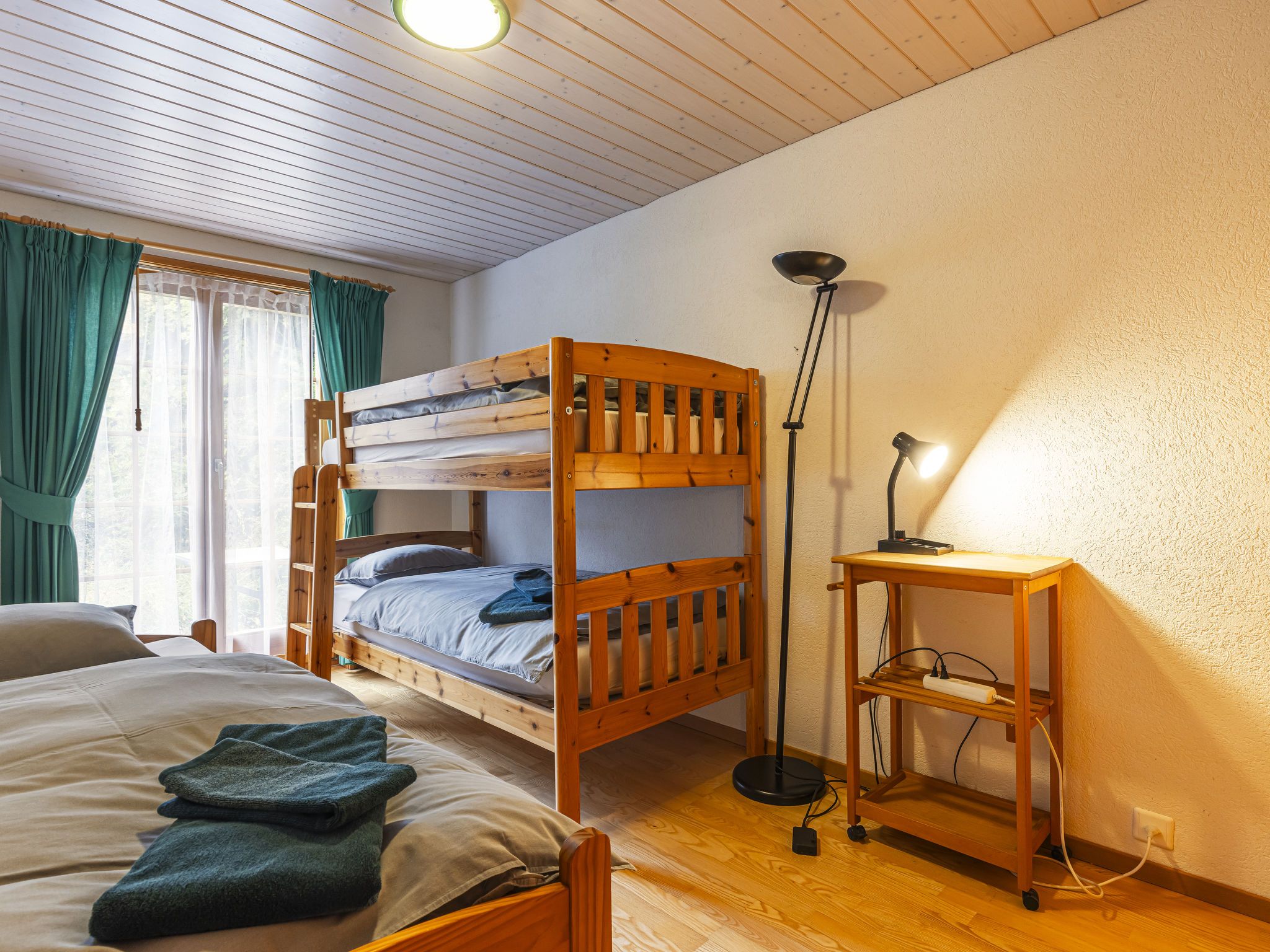 La Tour d'Antheme, 3-Zimmer-Wohnung 90 m2 im 2. Stock. Objekt geeignet für 5 Erwachsene + 2 Kinder. Geräumig und hell, komfortabel und geschmackvoll eingerichtet: Wohn-/Esszimmer mit 1 Diwanbett (140 cm, Länge 200 cm), offenem Kamin (nur Deko), TV, DVD und DVD Sammlung vorhanden. Ausgang zum Balkon. 1 Doppelzimmer mit 1 Doppelbett (2 x 90 cm, Länge 190 cm). 1 Zimmer mit 1 Bett (80 cm, Länge 190 cm), 1 x 2 Etagenbetten (80 cm, Länge 190 cm). Ausgang zum Gartensitzplatz. Grosse, offene Küche (4 Kochplatten, Backofen, Geschirrspüler, Mikrowelle, elektrische Kaffeemaschine, Racletteofen, Fondue Set (Chinoise, Käse)) mit Esstisch. Bad/WC, Dusche/WC. E-Heizung. Balkon, Südostlage, kleiner Gartensitzplatz, Südwestlage. Balkonmöbel, Gartengrill (mobil). Sehr schöne Sicht auf die Berge, die Landschaft und die Ortschaft. Zur Verfügung: Internet (Wireless LAN, gratis). Bitte beachten: Nichtraucher-Unterkunft.