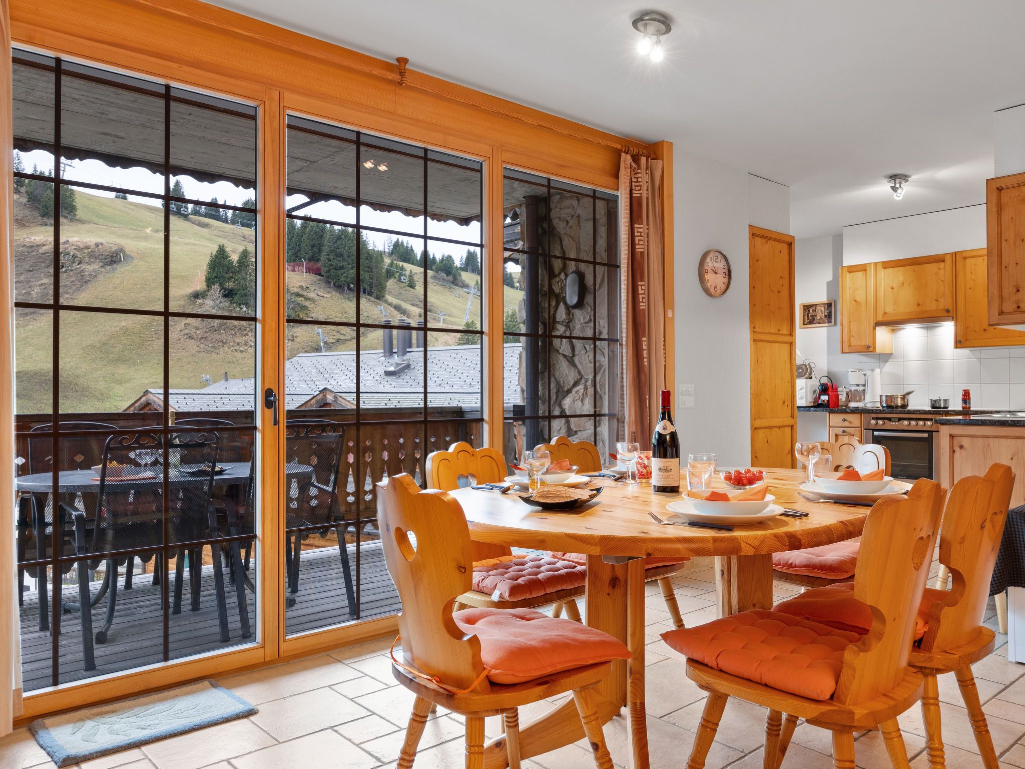 Le Hameau, 2-Zimmer-Wohnung 55 m2 im 1. Stock. Geräumig und hell, komfortabel und gemütlich eingerichtet: Wohn-/Esszimmer mit 1 Doppeldiwanbett und TV. Ausgang zum Balkon. 1 Zimmer mit 2 Betten (90 cm, Länge 200 cm). Ausgang zum Balkon. Offene Küche (Backofen, Geschirrspüler, 4 Glaskeramikplatten, Toaster, Mikrowelle, elektrische Kaffeemaschine, Kapseln für die Kaffeemaschine (Nespresso) extra). Ausgang zum Balkon. Bad/WC. Fussbodenheizung. Grosser Balkon 40 m2, kleiner Balkon. Balkonmöbel, Elektrogrill. Sehr schöne Sicht auf die Berge und die Skipiste. Zur Verfügung: Internet (WLAN). Garage Nr. O. Bitte beachten: Nichtraucher-Unterkunft. Maximal 1 kleines Haustier/Hund erlaubt. Multipass inkludiert im Sommer.
