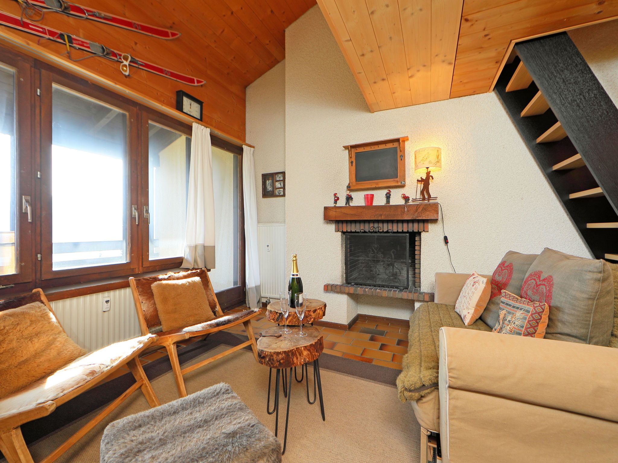 Les Petites Maraîches 132/389, 3-Zimmer-Maisonette-Wohnung 50 m2, Südlage. Abgeschrägt, teilweise renoviert im Jahre 2016, komfortabel eingerichtet: Wohn-/Esszimmer mit offenem Kamin, Esstisch und TV (Flachbildschirm), DVD. Ausgang zum Balkon, Richtung Süden. Kleine, offene Küche im Eingang (Backofen, Geschirrspüler, 4 Glaskeramikplatten, Toaster, Wasserkocher, elektrische Kaffeemaschine, Racletteofen, Fondue Set (Chinoise, Käse)). Bad/WC. Obergeschoss: (steile Treppe) 1 abgeschrägtes Kinderzimmer, Deckenhöhe 120 - 210 cm, ohne Fenster, ohne Schrank mit 1 x 2 Etagenbetten (90 cm, Länge 200 cm). 1 abgeschrägtes Zimmer, Deckenhöhe 70 - 210 cm, ohne Schrank mit 2 Betten (90 cm, Länge 200 cm). Balkon 20 m2, Südlage und Ostlage. Balkonmöbel. Sehr schöne Panoramasicht auf die Berge. Zur Verfügung: Haartrockner. Internet (Wireless LAN, gratis). Parkplatz Nr. 132/389. Maximal 1 Haustier/Hund erlaubt.