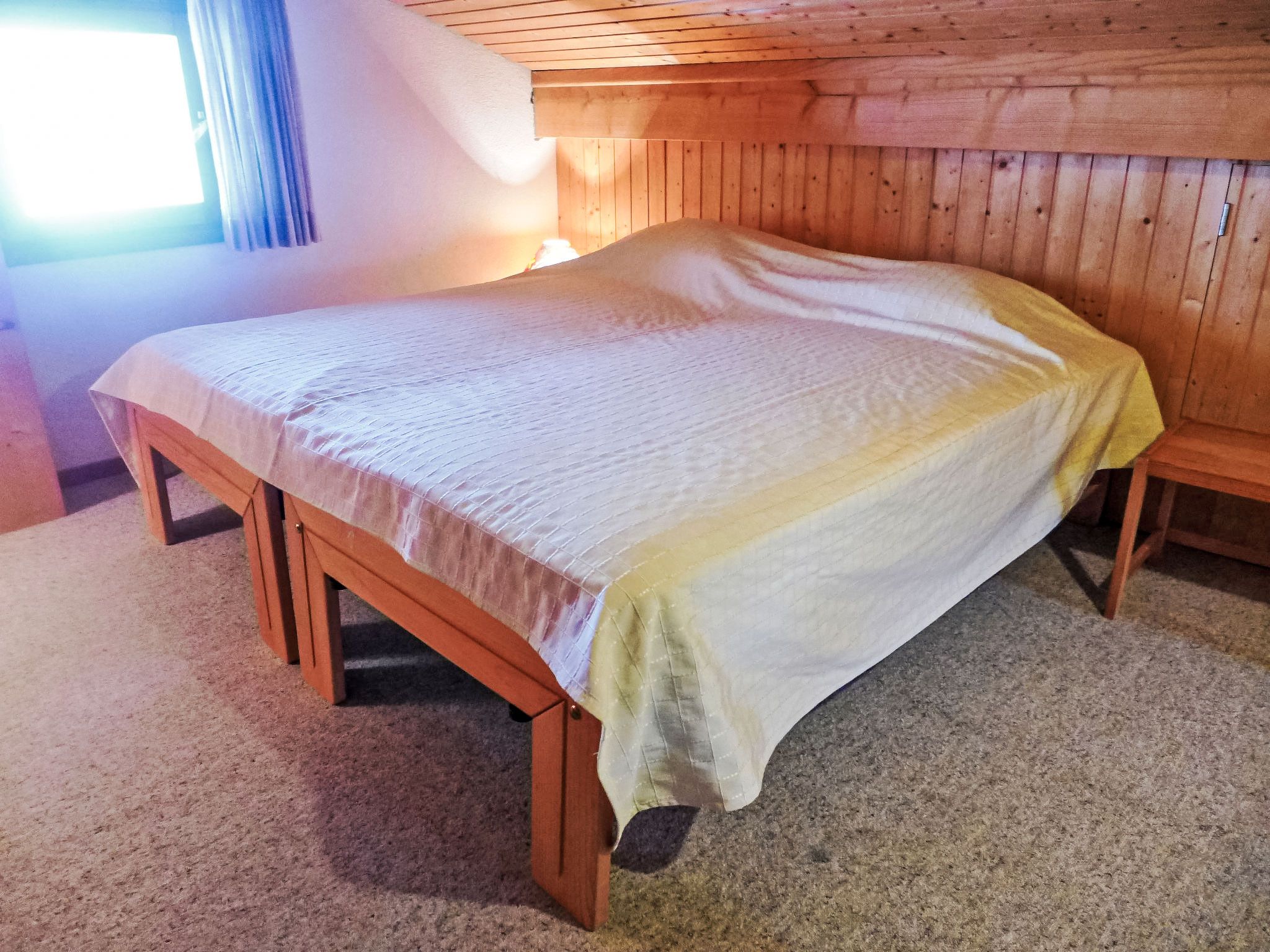 Arsets 203/12, 4-Zimmer-Wohnung 120 m2 auf 2 Stockwerken im 1. Stock, Südlage. Wohn-/Esszimmer mit offenem Kamin und TV. 1 Zimmer mit 2 Betten. 1 Doppelzimmer mit 1 franz. Bett (140 cm). Wohnzimmer. Kochnische (3 Kochplatten, Backofen, Geschirrspüler, Toaster, Wasserkocher, Mikrowelle, elektrische Kaffeemaschine, Racletteofen, Fondue Set (Käse)). Bad/WC, Dusche/WC. Obergeschoss: (steile Treppe) Schlafnische mit 2 Betten. Balkon, Südlage. Eingeschränkte Sicht auf die Berge. Zur Verfügung: Waschmaschine, Wäschetrockner, Haartrockner. Internet (Wireless LAN, gratis). Parkplatz Nr. 67 (überdacht). Anstelle eines abgeschlossenen Schlafzimmers befinden sich manche Schlafplätze in einem offenen Bereich (Galerie, Nische etc.).