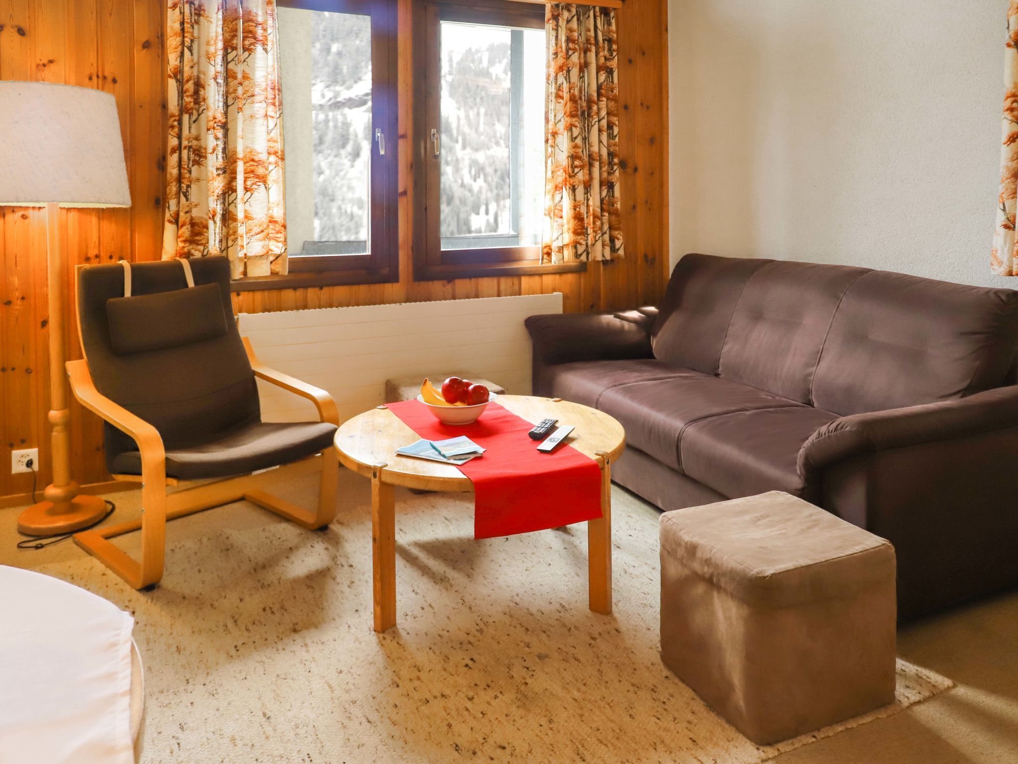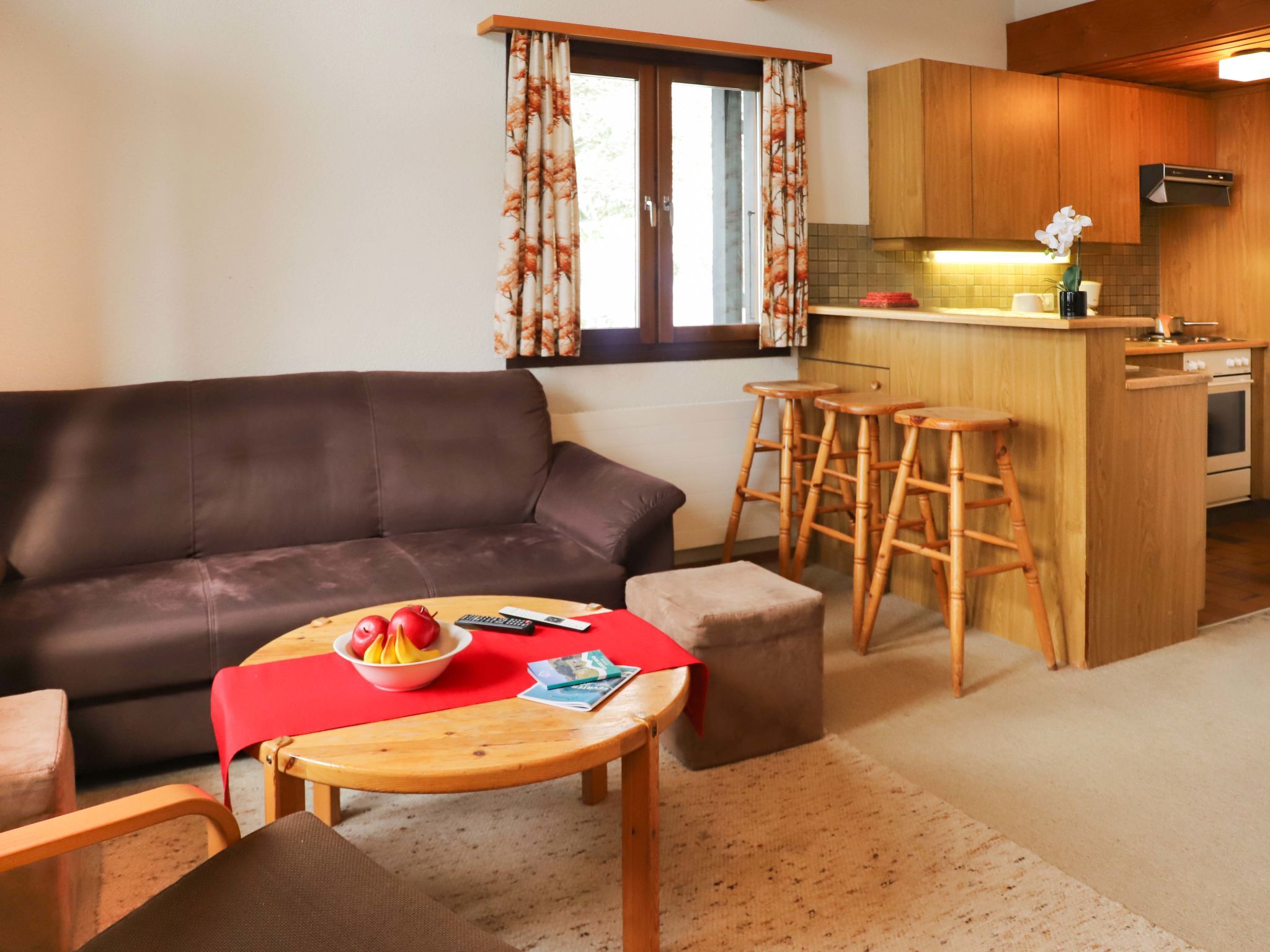 Les Arsets 301/11, 3-Zimmer-Wohnung 65 m2 auf 2 Stockwerken im 1. Stock, Südlage. Zweckmässig eingerichtet: Wohn-/Esszimmer mit offenem Kamin und TV (Flachbildschirm). Ausgang zum Balkon. 1 Zimmer mit 2 Betten. Kleine, offene Küche (3 Kochplatten, Backofen, Geschirrspüler, Toaster, Wasserkocher, elektrische Kaffeemaschine, Racletteofen). Bad/WC. Obergeschoss: offene Galerie mit 1 Diwanbett (80 cm, Länge 190 cm). 1 Zimmer mit 1 franz. Bett und Waschbecken. Balkon, Südlage. Terrassenmöbel. Sicht auf die Landschaft. Zur Verfügung: Haartrockner. Internet (Wireless LAN, gratis). Parkplatz Nr. 10 (überdacht). Bitte beachten: Kühlschrank ohne Gefrierfach. Anstelle eines abgeschlossenen Schlafzimmers befinden sich manche Schlafplätze in einem offenen Bereich (Galerie, Nische etc.).