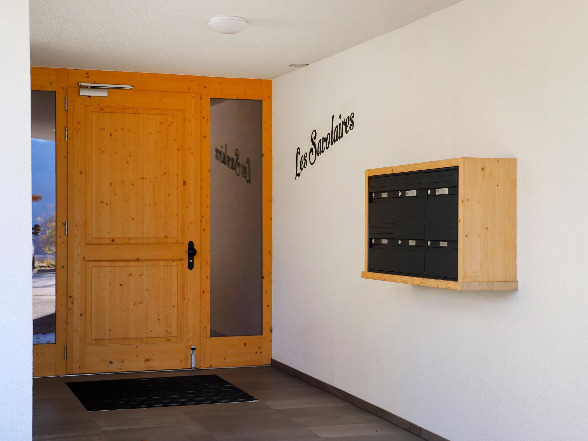 Barboleuse: Appartementhaus Les Savolaires. Im Ortszentrum von Barboleuse, zentrale, sonnige Lage, 30 m vom Skigebiet, Richtung Süden. Im Hause: Fahrstuhl, Skiraum, Zentralheizung, Waschmaschine (extra), Wäschetrockner (zur Mitbenutzung, extra). Öffentliche Parkplätze 50 m. Einkaufsgeschäft 10 m, Lebensmittelgeschäft, Restaurant 30 m, Bäckerei 300 m, Bushaltestelle Barboleuse 300 m, Bahnstation Barboleuse 300 m, Hallenbad 5 km. Golfplatz (18 Loch) 10 km, Tennis 600 m, Tennishalle 5 km, Gondelbahn 270 m, Skibushaltestelle 150 m, Ski-Kindergarten 5 km, Eisfeld 5 km, Kinderspielplatz 200 m. Der gratis Skibus fährt zum Skigebiet Les chaux.
