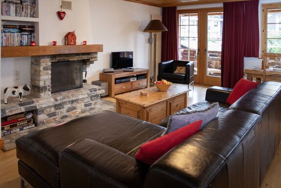 Daphné A 32, 3-Zimmer-Wohnung 89 m2 im 3. Stock. Schön eingerichtet: Wohn-/Esszimmer 32 m2 mit offenem Kamin, Essecke, Kabel-TV, CD, DVD und Heimkino. Ausgang zum Balkon. 1 Zimmer mit 2 Betten (90 cm), Dusche/WC. 1 Zimmer mit 1 Doppelbett (160 cm, Länge 200 cm), Bad/WC. Offene Küche (4 Kochplatten, Backofen, Geschirrspüler, Toaster, Wasserkocher, Mikrowelle, elektrische Kaffeemaschine, Kapseln für die Kaffeemaschine (Nespresso) extra, Racletteofen, Fondue Set (Chinoise, Käse)). Ausgang zum Balkon. Sep. WC. Balkon 18 m2, Ostlage und Südlage. Terrassenmöbel, Gartengrill. Schöne Sicht auf die Berge. Zur Verfügung: Bügeleisen, Haartrockner. Internet (Wireless LAN, gratis). Garage Nr. 28. Bitte beachten: Nichtraucher-Unterkunft.