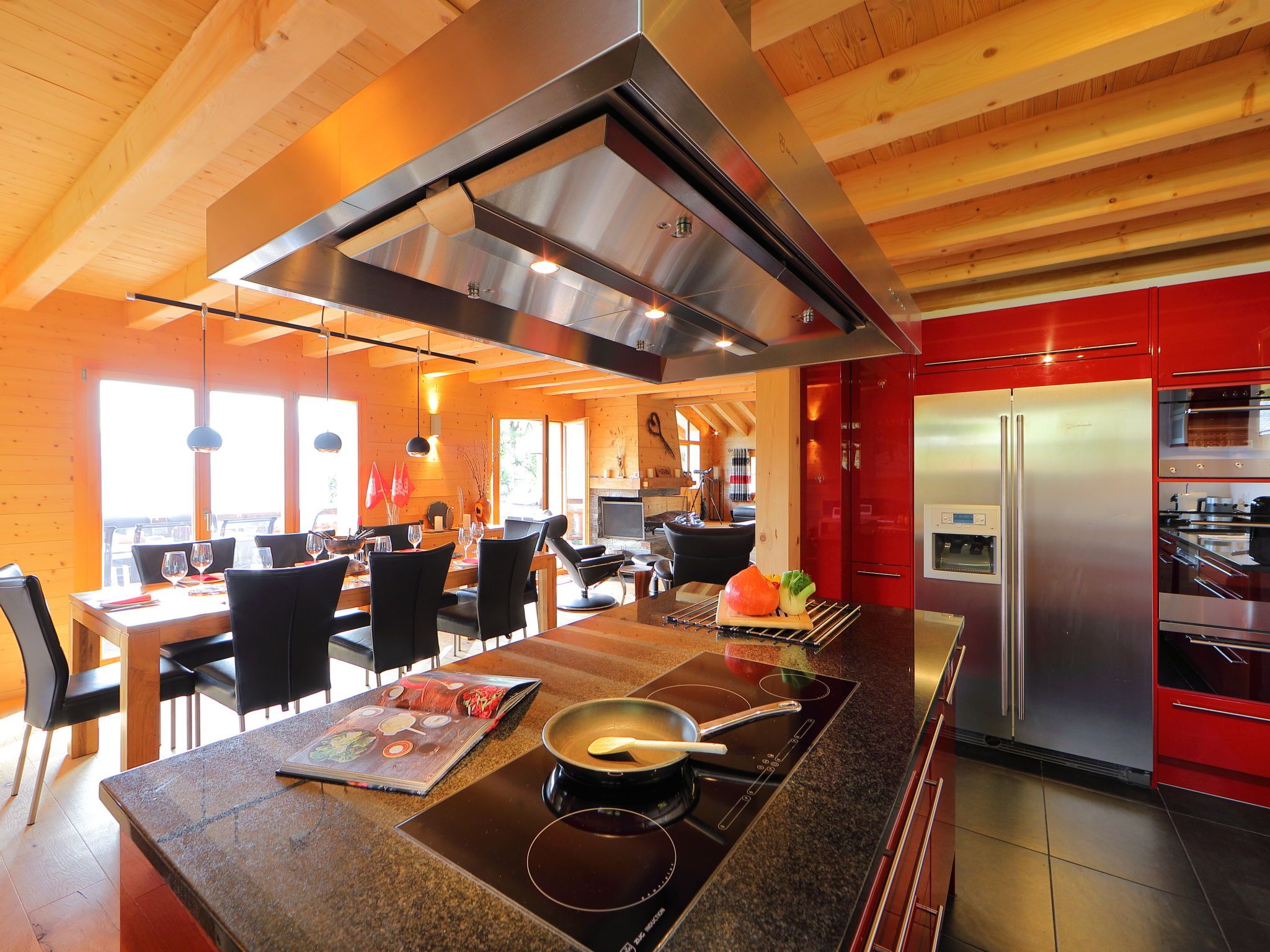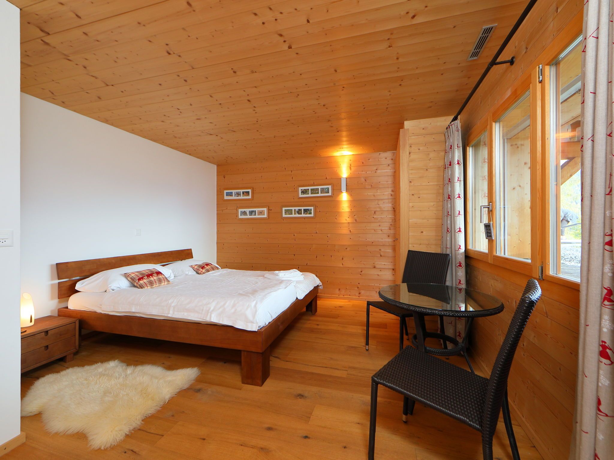 Chalet Maurice, 6-Zimmer-Chalet 250 m2 auf 3 Stockwerken, Südlage. Sehr komfortabel und geschmackvoll eingerichtet: abgeschrägtes grosses Wohn-/Esszimmer 90 m2 mit offenem Kamin, Esstisch, sep. WC und TV (Flachbildschirm), Stereoanlage und DVD. Ausgang zum Balkon, Richtung Süden. 1 Zimmer mit 1 franz. Bett (160 cm, Länge 200 cm), Dusche/WC. Ausgang zur Terrasse. Offene Küche (Backofen, Geschirrspüler, 4 Induktionskochplatten, Toaster, Wasserkocher, Mikrowelle, Tiefkühler, elektrische Kaffeemaschine, Kapseln für die Kaffeemaschine (Nespresso) extra, Dampfgarer, Racletteofen, Kochinsel, Fondue Set (Käse)). Unteres Geschoss: 1 Zimmer mit 2 Betten (90 cm, Länge 200 cm). Ausgang zum Garten. 1 Zimmer mit 1 Doppelbett (2 x 90 cm, Länge 200 cm). Bad/WC, Dusche, Sauna. Obergeschoss: Durchgangszimmer. 1 abgeschrägtes Doppelzimmer mit 1 franz. Bett (2 x 90 cm, Länge 200 cm), Bad/Dusche/WC, TV und Flachbildschirm. Ausgang zum Balkon, Richtung Süden. Balkon, Südlage, grosse Terrasse, Südlage, Garten, Rasen. Terrassenmöbel, Gartengrill, Liegestühle (2). Sehr schöne Panoramasicht auf die Berge und das Tal. Zur Verfügung: Waschmaschine, Wäschetrockner, Sauna, Kinderhochstuhl, Babybett, Holz (extra). Internet (WLAN, gratis). Parkplatz (2 Autos). Bitte beachten: Nichtraucher-Haus. Maximal 1 Haustier/Hund erlaubt.