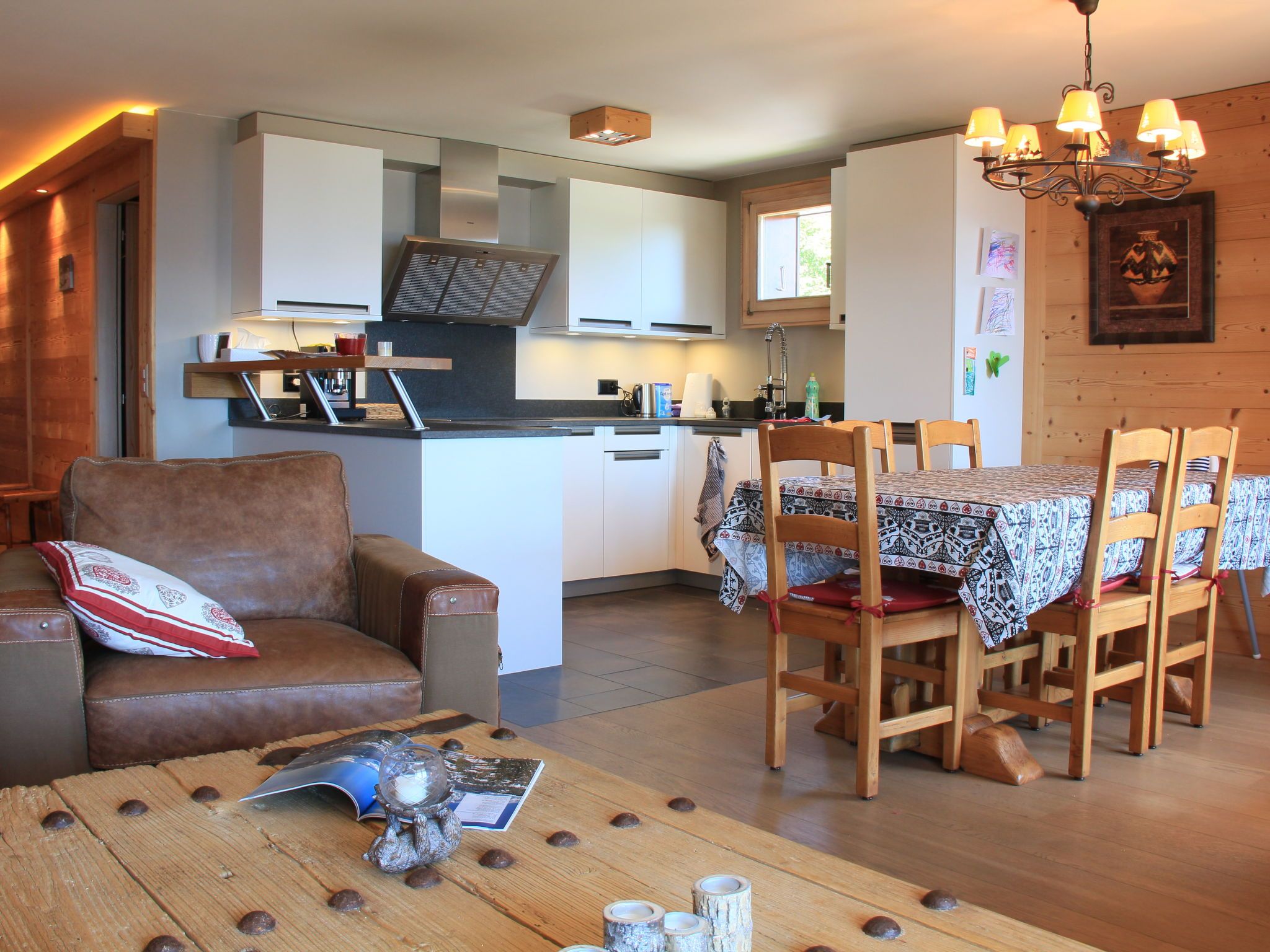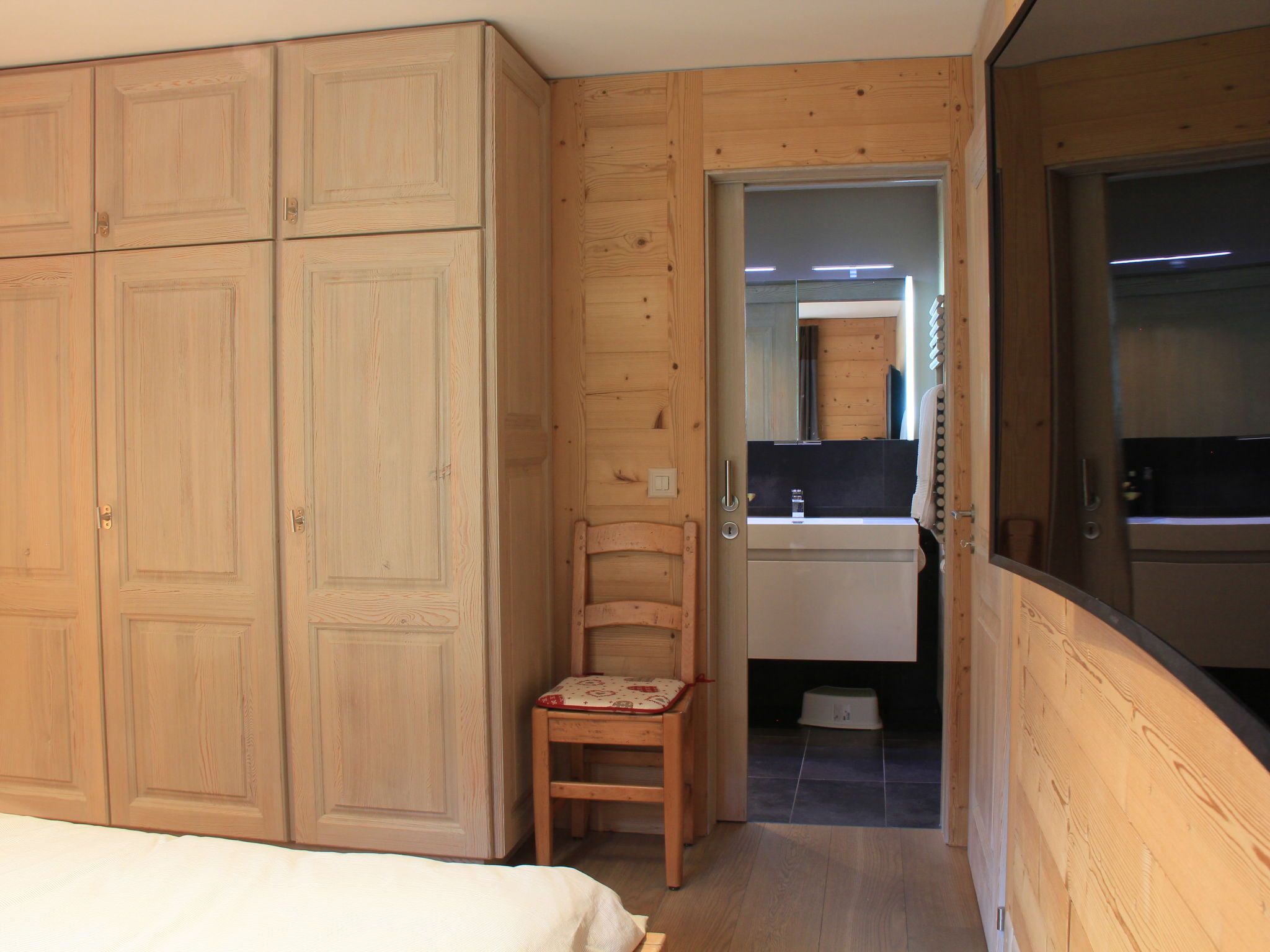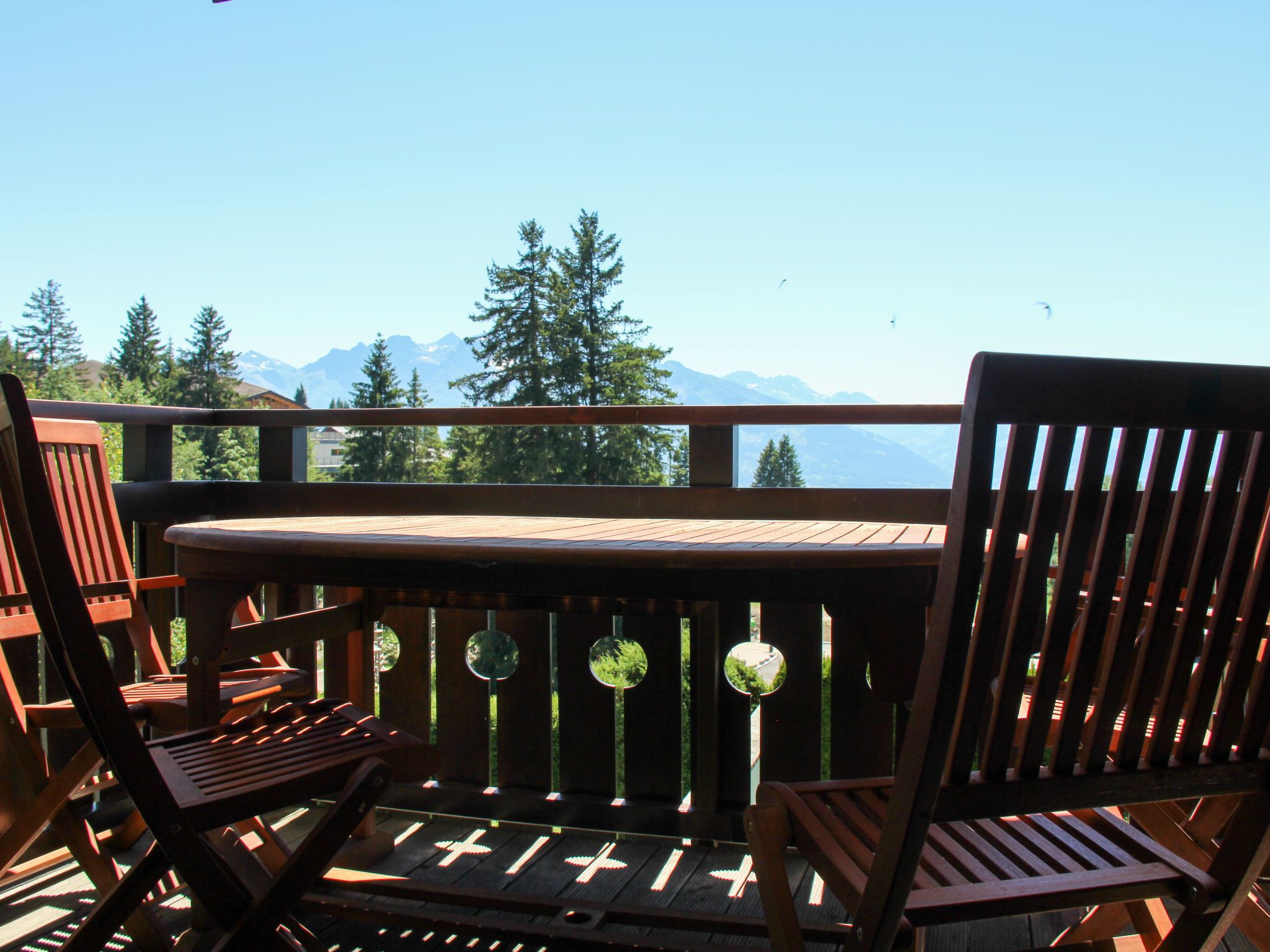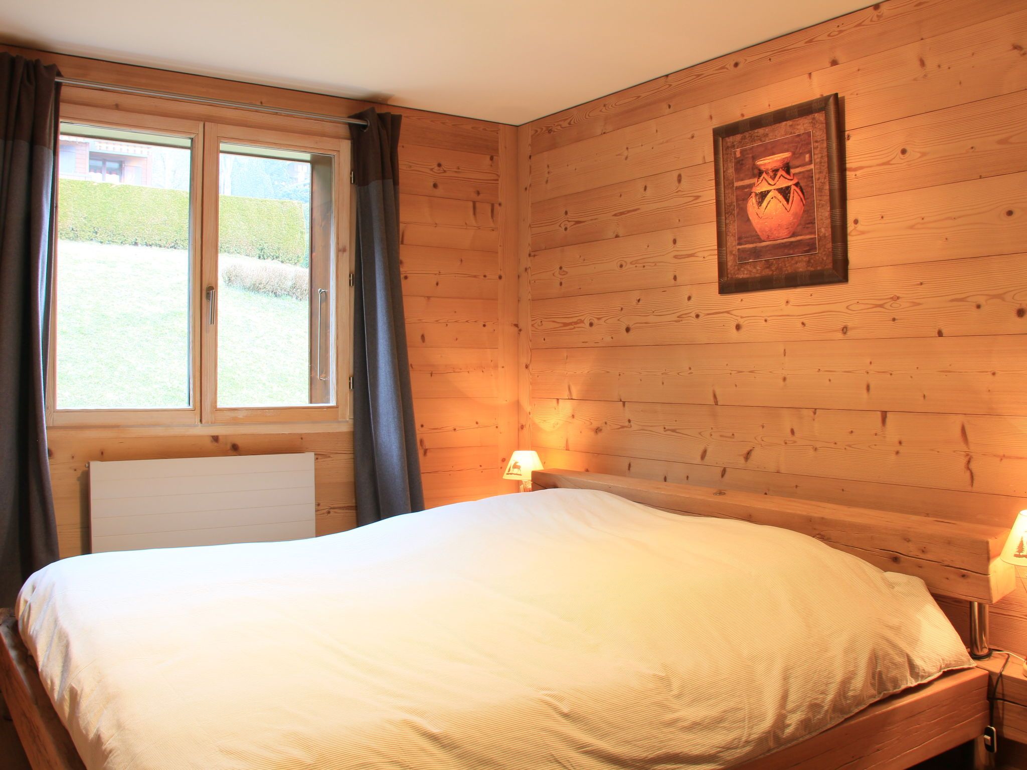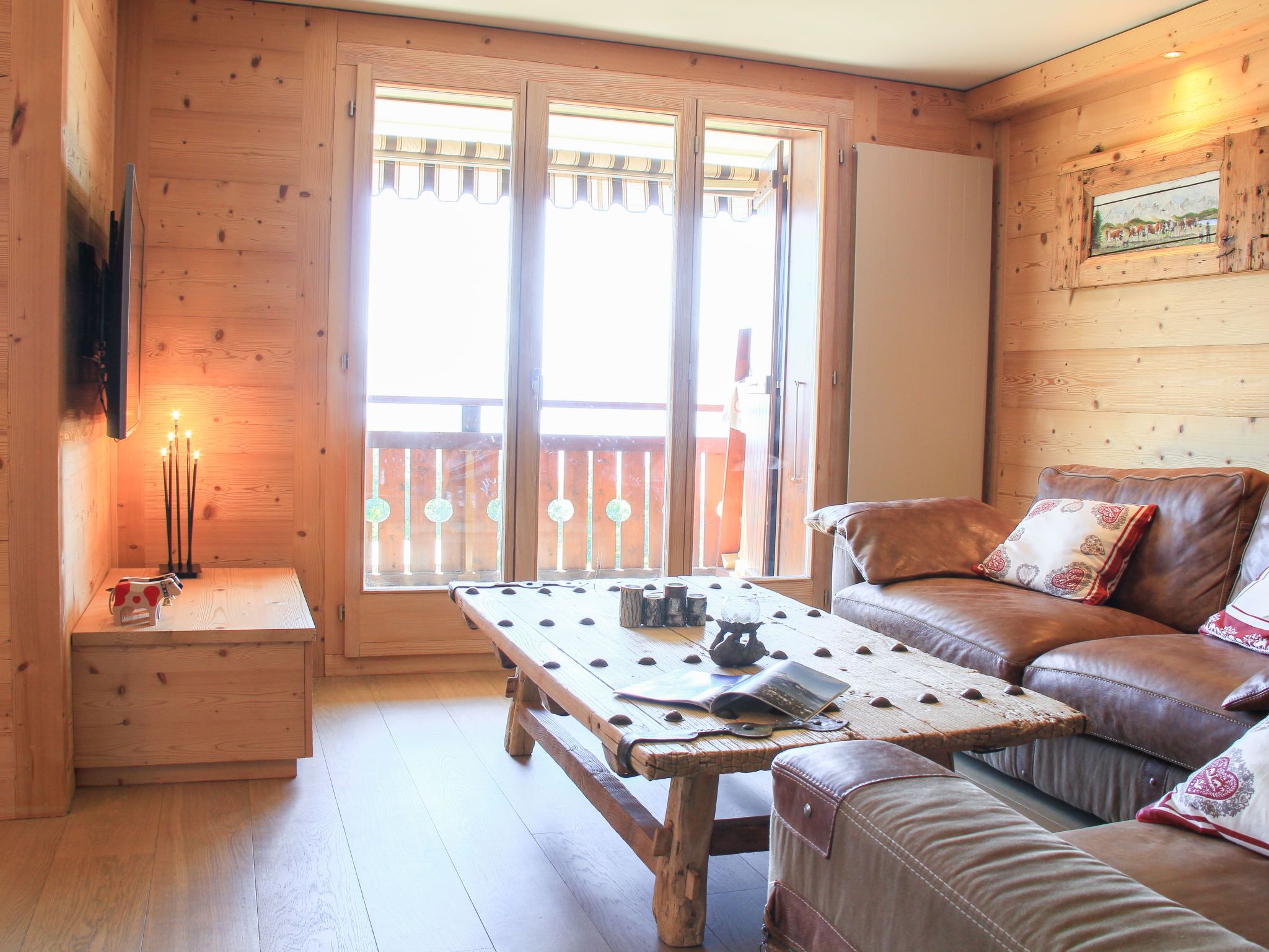 Sunset A 4, 3-Zimmer-Wohnung 76 m2 im 1. Stock, Südwestlage. Renoviert, komfortabel und geschmackvoll eingerichtet: Wohn-/Esszimmer mit offenem Kamin, Esstisch und TV (Flachbildschirm). Ausgang zum Balkon, Richtung Südwesten. 1 Zimmer mit 1 Doppelbett (2 x 90 cm), Bad/WC und TV (Flachbildschirm). 1 Zimmer mit 1 x 2 Etagenbetten (90 cm), TV (Flachbildschirm). Offene Küche (Backofen, Geschirrspüler, 4 Induktionskochplatten, elektrische Kaffeemaschine, Kapseln für die Kaffeemaschine (La Semeuse) extra, Racletteofen, Fondue Set (Käse)). Dusche/WC. Balkon 11 m2, Südwestlage. Balkonmöbel. Sehr schöne Sicht auf die Berge. Garage Nr. 15 (1 Auto). Bitte beachten: Nichtraucher-Unterkunft.