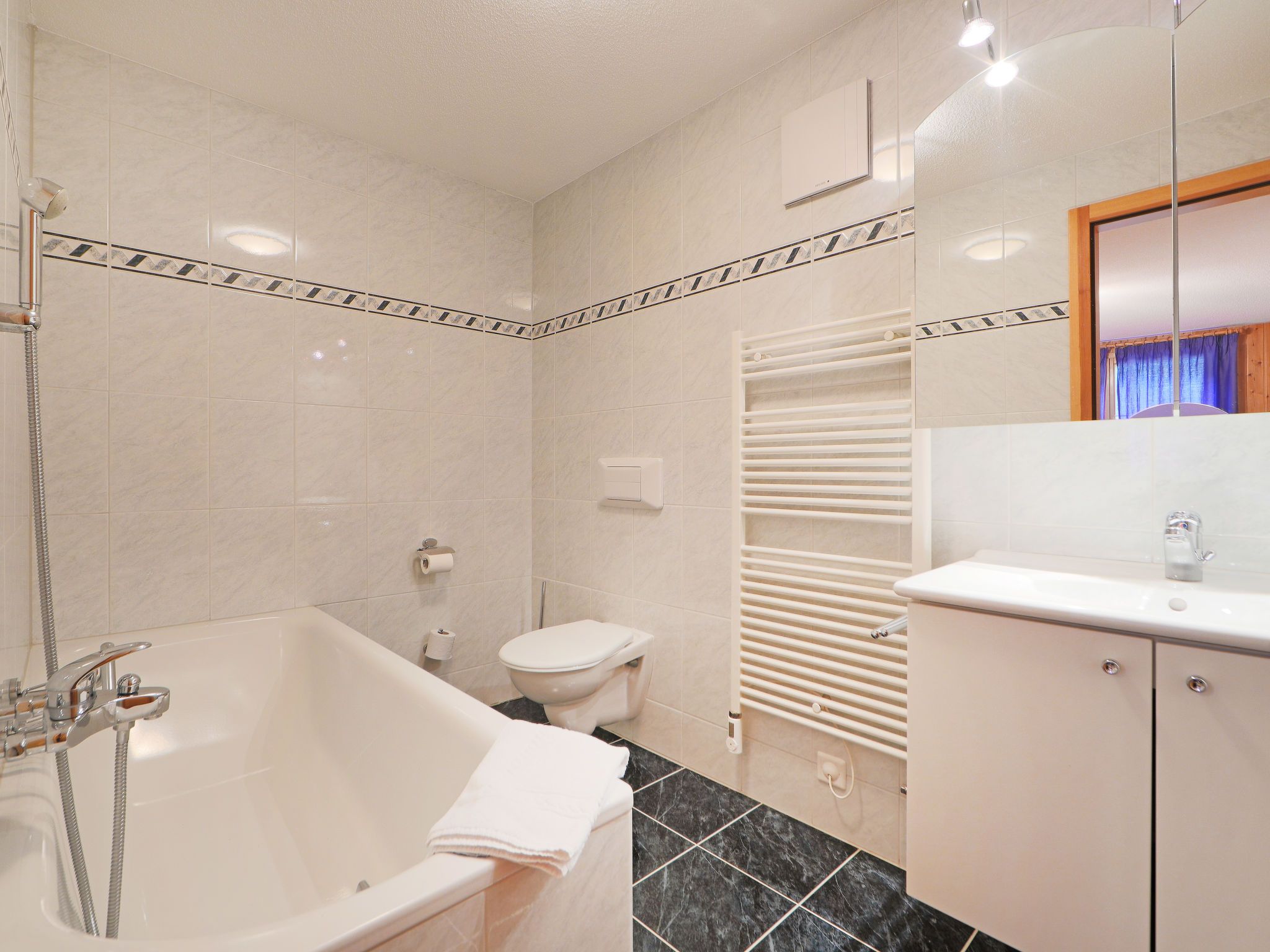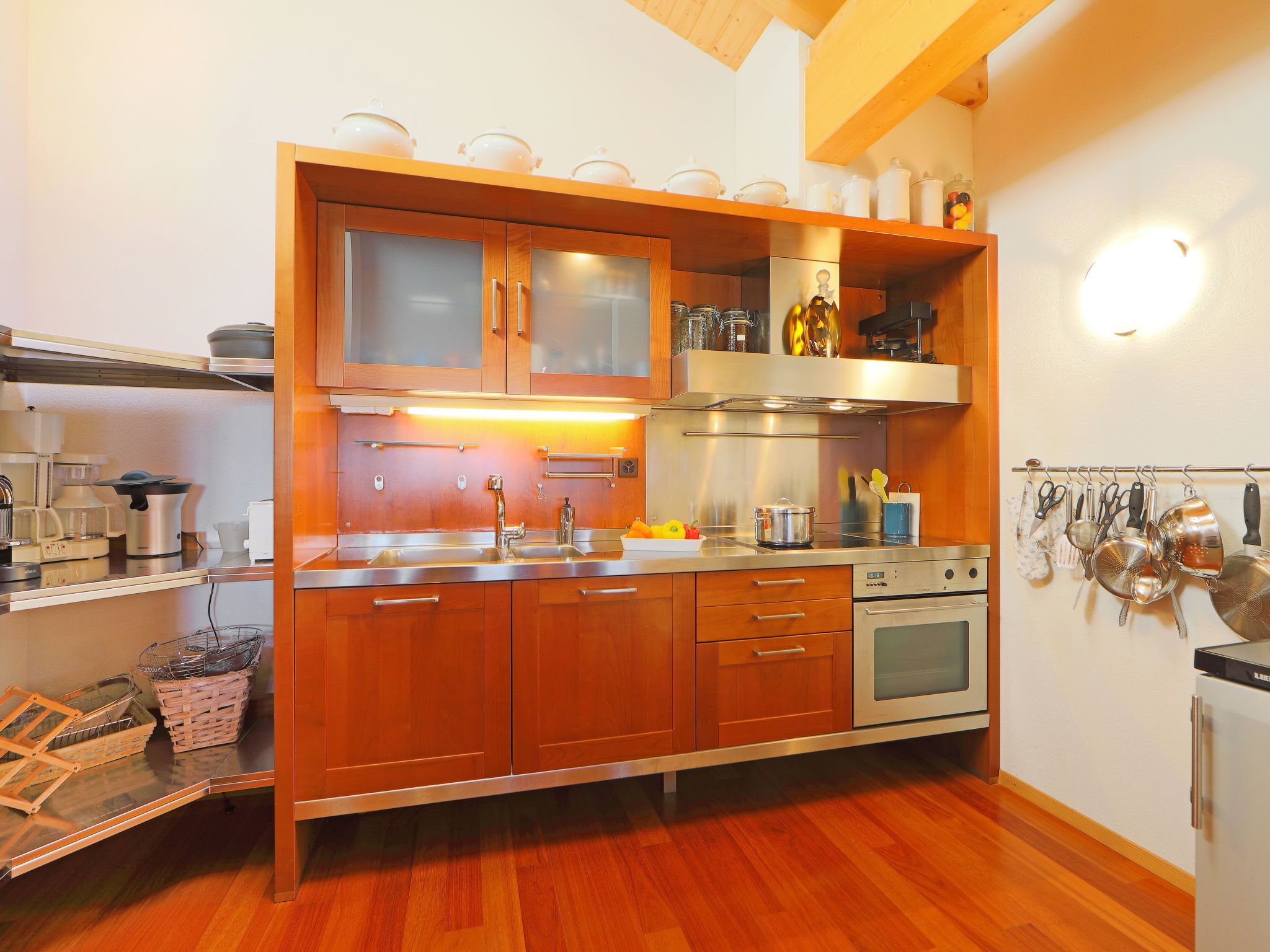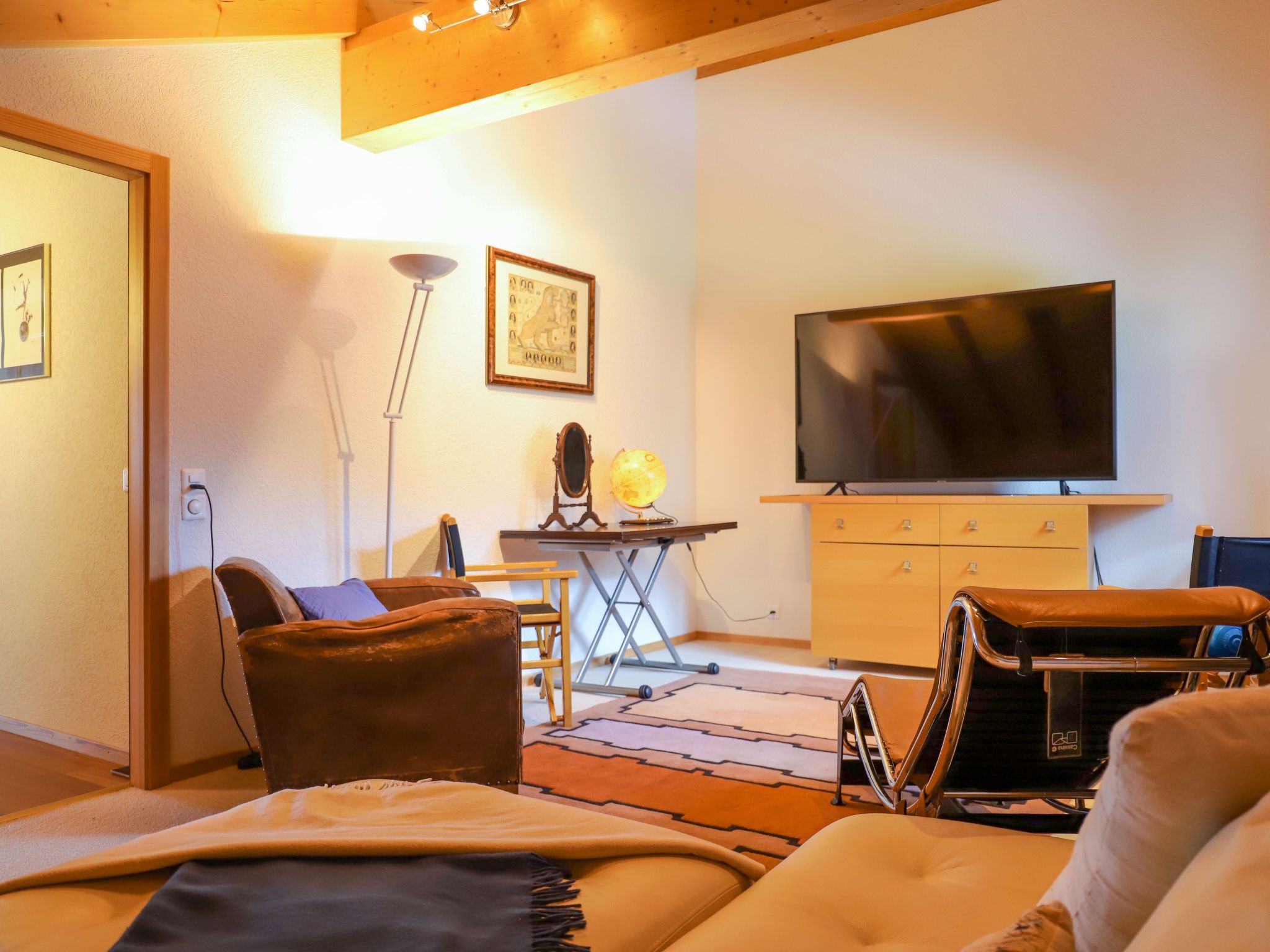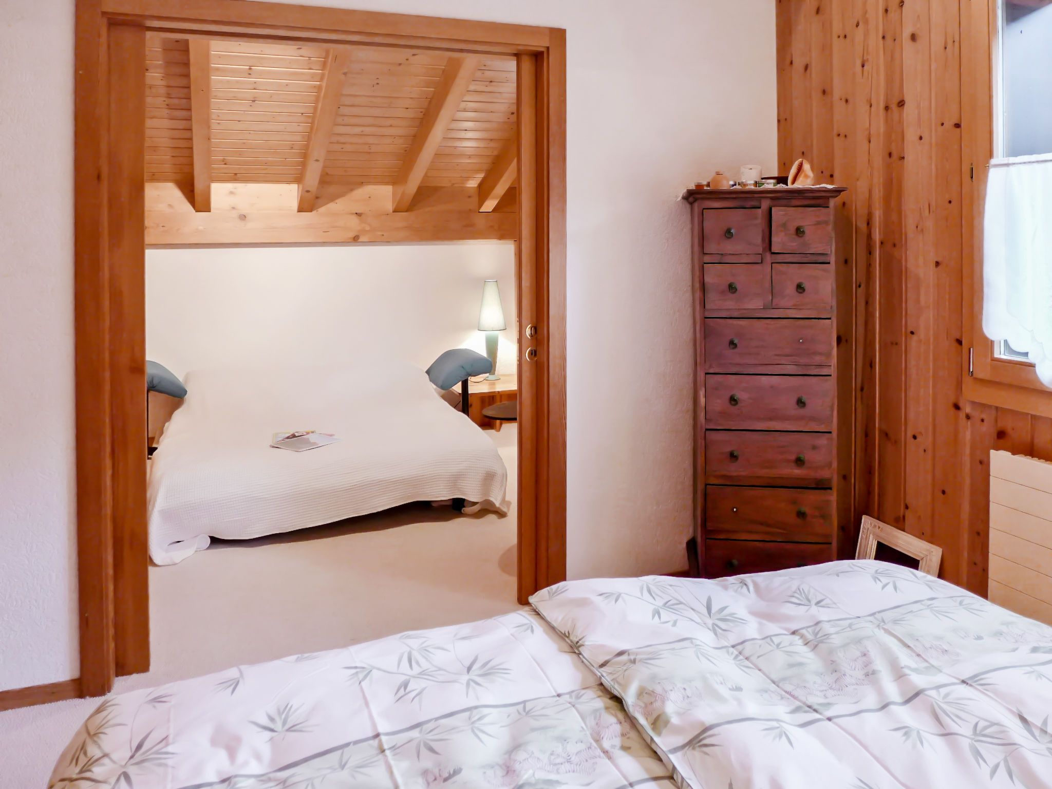Sunset B 11, 8-Zimmer-Attikawohnung 240 m2 auf 2 Stockwerken im 5. Stock, Südlage. Geräumig, abgeschrägt, sehr komfortabel und geschmackvoll eingerichtet: abgeschrägtes grosses Wohn-/Esszimmer, Deckenhöhe 210 - 500 cm mit Panoramafenster mit offenem Kamin, Esstisch und TV (Flachbildschirm). Ausgang zum Balkon, Richtung Süden. 1 Zimmer mit 2 Betten (90 cm, Länge 200 cm), Bad/WC. 1 Zimmer mit 1 Diwanbett (150 cm). Salon mit TV (Flachbildschirm), DVD. Grosse, offene Küche (Backofen, Geschirrspüler, 4 Glaskeramikplatten, Toaster, Mikrowelle, Tiefkühler, elektrische Kaffeemaschine, Kapseln für die Kaffeemaschine (Nespresso) extra, Racletteofen, Fondue Set (Käse)). Sep. WC. Unteres Geschoss: 1 Zimmer mit 2 Betten (90 cm, Länge 200 cm), Bad/Dusche/WC. Ausgang zum Balkon, Richtung Süden. 1 Zimmer mit 1 franz. Bett (1 x 160 cm, Länge 200 cm). 1 Zimmer mit 2 Betten (90 cm, Länge 200 cm). Bad/WC, Dusche/WC. 2 grosse Balkone, Südlage. Balkonmöbel, Gartengrill. Sehr schöne Panoramasicht auf die Berge. Zur Verfügung: Waschmaschine. Internet (Wireless LAN, gratis). Garage Nr. 11 (2 Autos). Bitte beachten: Nichtraucher-Unterkunft. Raclettegerät : halber Laib Käse.