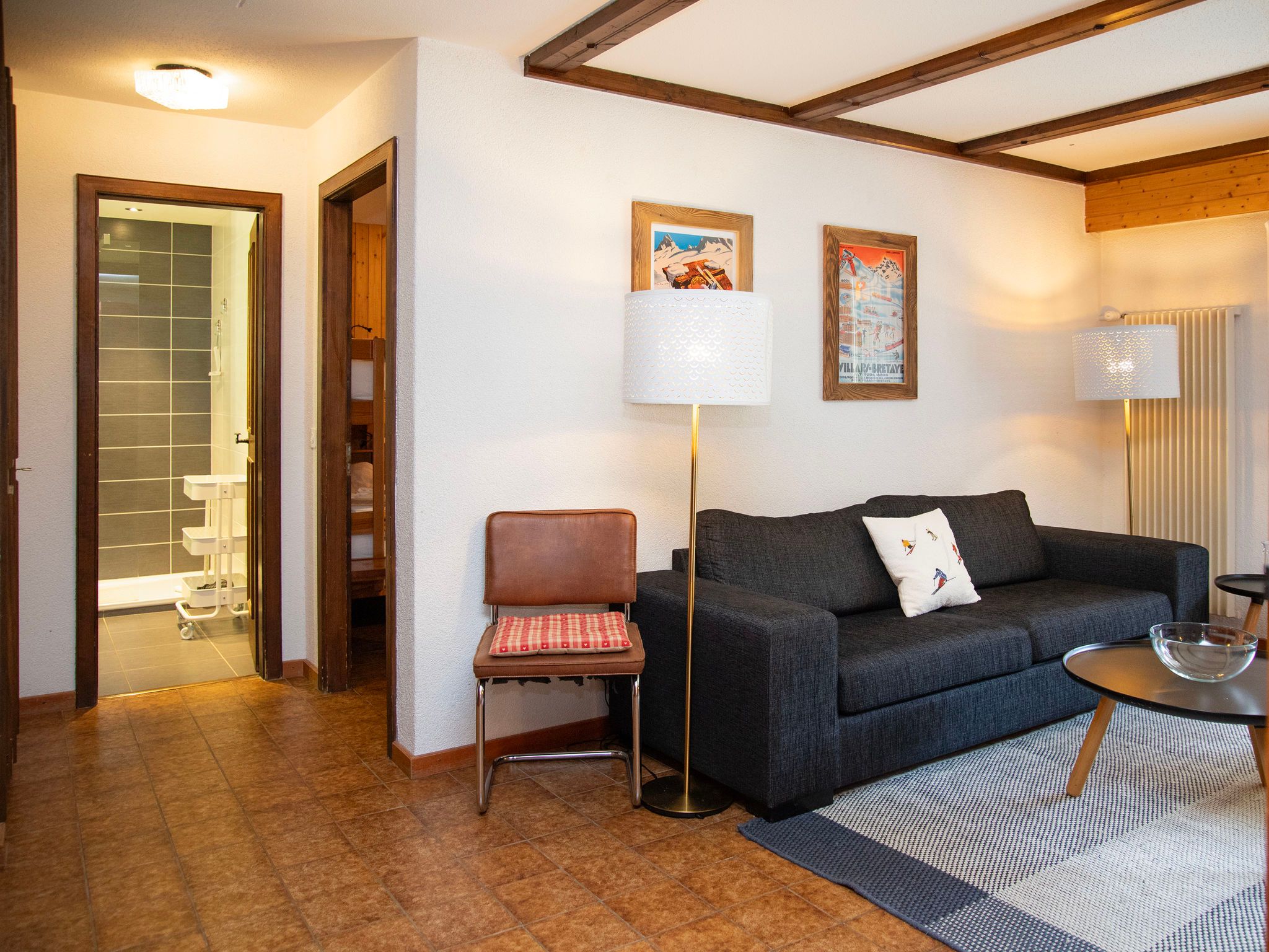 Rochegrise: Residenz Opale. Oberhalb von Villars, sonnige Lage, 200 m vom Skigebiet, Richtung Süden. Zur Mitbenutzung: Grundstück mit Rasen und Pflanzen. Im Hause: Fahrstuhl, Skiraum, Zentralheizung, Waschmaschine (zur Mitbenutzung, extra). Parkplatz (beschränkte Anzahl) auf dem Grundstück, öffentliche Parkplätze 20 m. Einkaufsgeschäft 1 km, Lebensmittelgeschäft 700 m, Restaurant, Bäckerei 900 m, Zentrum zu Fuss in 10 Minuten erreichbar, Bushaltestelle 1.5 km, Bahnstation Roches Grises 120 m, Hallenbad 1.4 km, Thermalbad Lavey-les-Bains 19 km. Sporthafen 25 km, Golfplatz (18 Loch) 7 km, Tennishalle 50 m, Sportzentrum 50 m, Bergeisenbahn 120 m, Skilift 500 m, Gondelbahn 2 km, Skibushaltestelle 1.5 km, Skischule 1.4 km, Kinderskischule 50 m, Eisfeld 1.4 km, Kinderspielplatz 200 m. Der gratis Skibus fährt zum Skigebiet Villars. Bitte beachten: Weitere Unterkünfte sind buchbar.