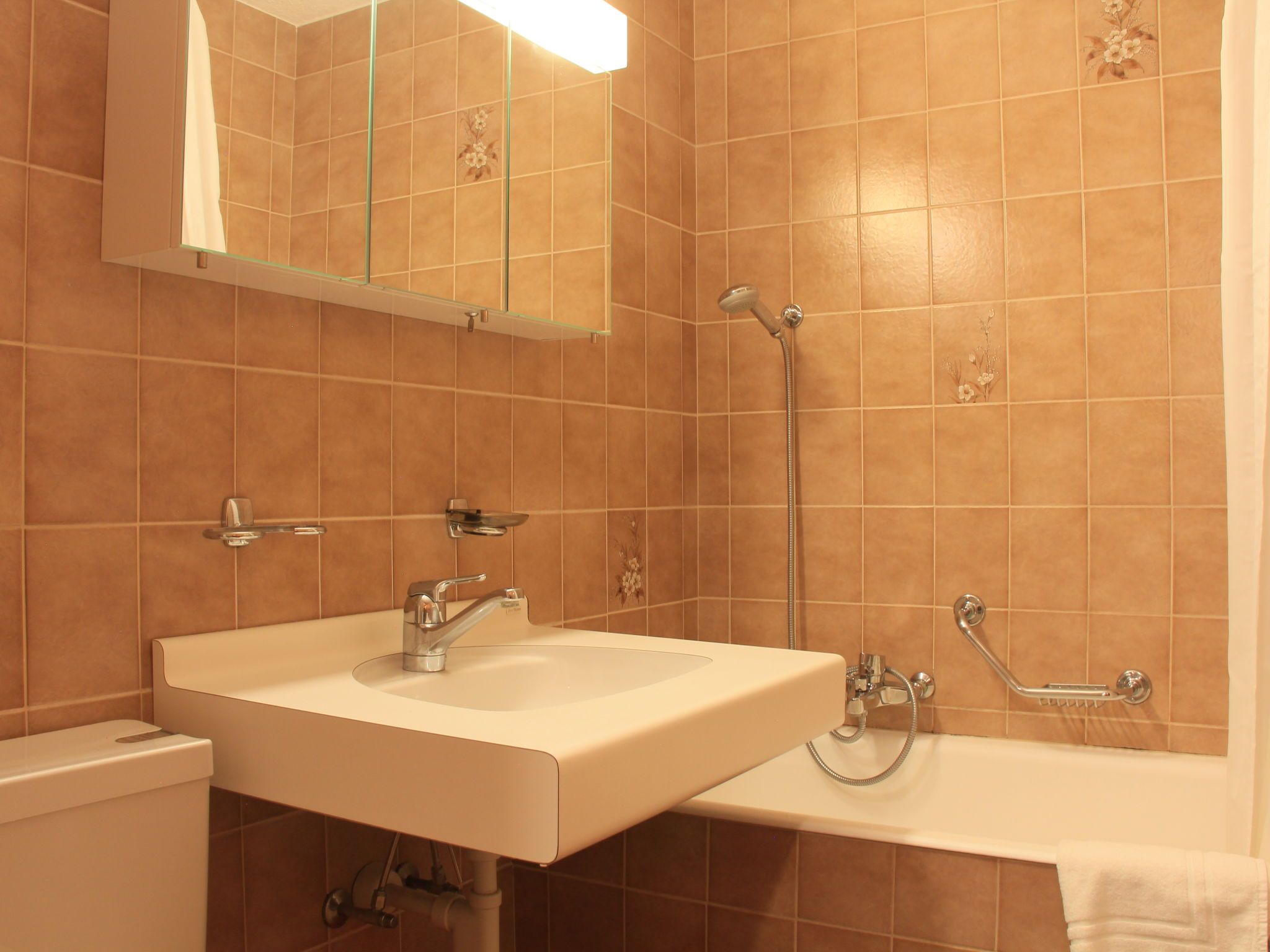Topaze 4, 2-Zimmer-Wohnung 40 m2, im Erdgeschoss, Südlage. Komfortabel und schön eingerichtet: Wohn-/Esszimmer mit Essecke und Kabel-TV. Ausgang zum Balkon. 1 Zimmer mit 2 Betten. Ausgang zum Balkon. Kochnische (4 Kochplatten, Backofen, Geschirrspüler, Toaster, Wasserkocher, Mikrowelle, Tiefkühler, elektrische Kaffeemaschine, Racletteofen, Fondue Set (Käse)) mit Durchreiche. Bad/WC. Balkon, Südlage. Terrassenmöbel. Schöne Sicht. Zur Verfügung: Bügeleisen, Haartrockner. Internet (Wireless LAN, gratis). Garage Nr. 11. Bitte beachten: Nichtraucher-Unterkunft. Maximal 1 Haustier/Hund erlaubt.