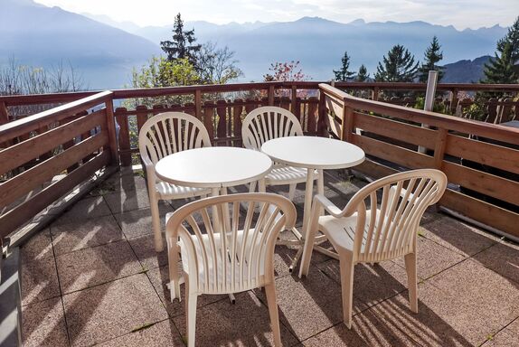 Le Bristol B11, 2-Zimmer-Wohnung 55 m2 im 1. Stock. Hell, komfortabel und schön eingerichtet: grosses Wohn-/Schlafzimmer mit 2 Diwanbetten (90 cm), Esstisch, Dusche/WC und TV (Flachbildschirm), DVD. Ausgang zur Terrasse, Richtung Süden und Richtung Westen. 1 Doppelzimmer mit 2 Betten (90 cm), Bad/WC. Ausgang zum Balkon, Richtung Norden und Richtung Osten. Offene Küche (Backofen, Geschirrspüler, 4 Glaskeramikplatten, Mikrowelle, elektrische Kaffeemaschine, Kapseln für die Kaffeemaschine (Dolce Gusto) extra, Racletteofen, Fondue Set (Käse)). Balkon 5 m2. Balkonmöbel. Schöne Sicht auf die Berge und das Tal. Zur Verfügung: Internet (Wireless LAN, gratis). Parkplatz Nr. 8 (überdacht). Bitte beachten: Nichtraucher-Unterkunft.