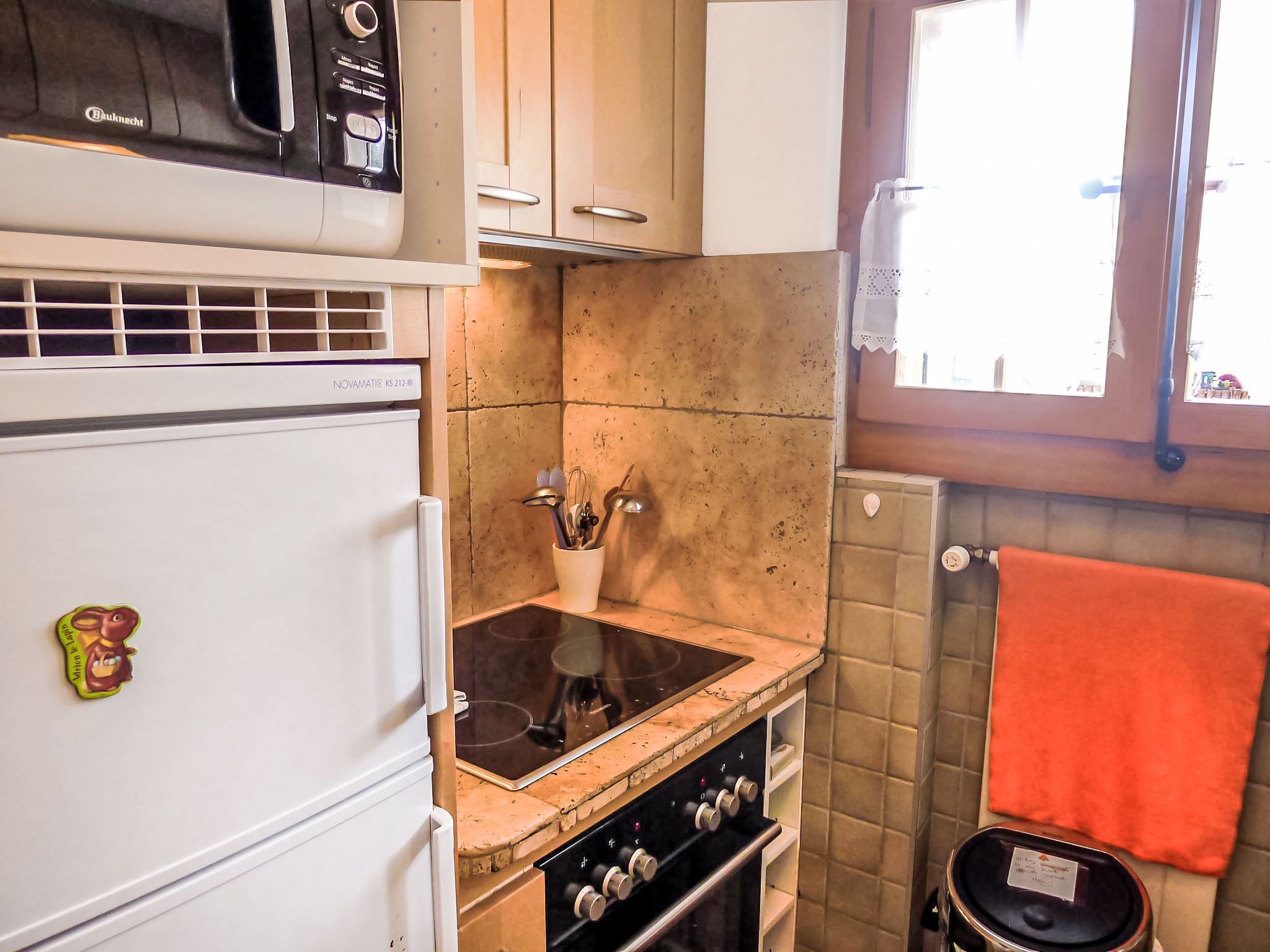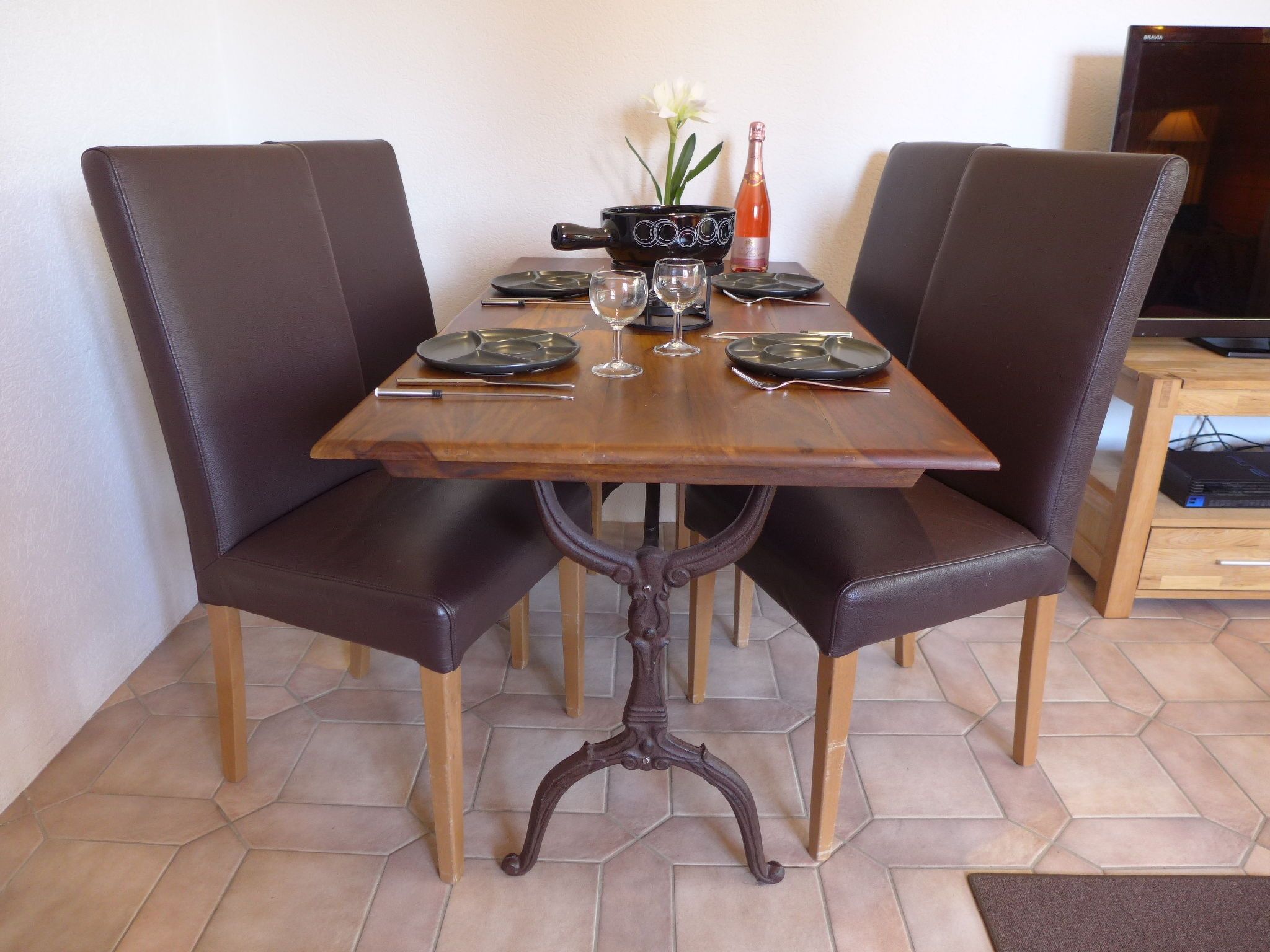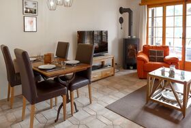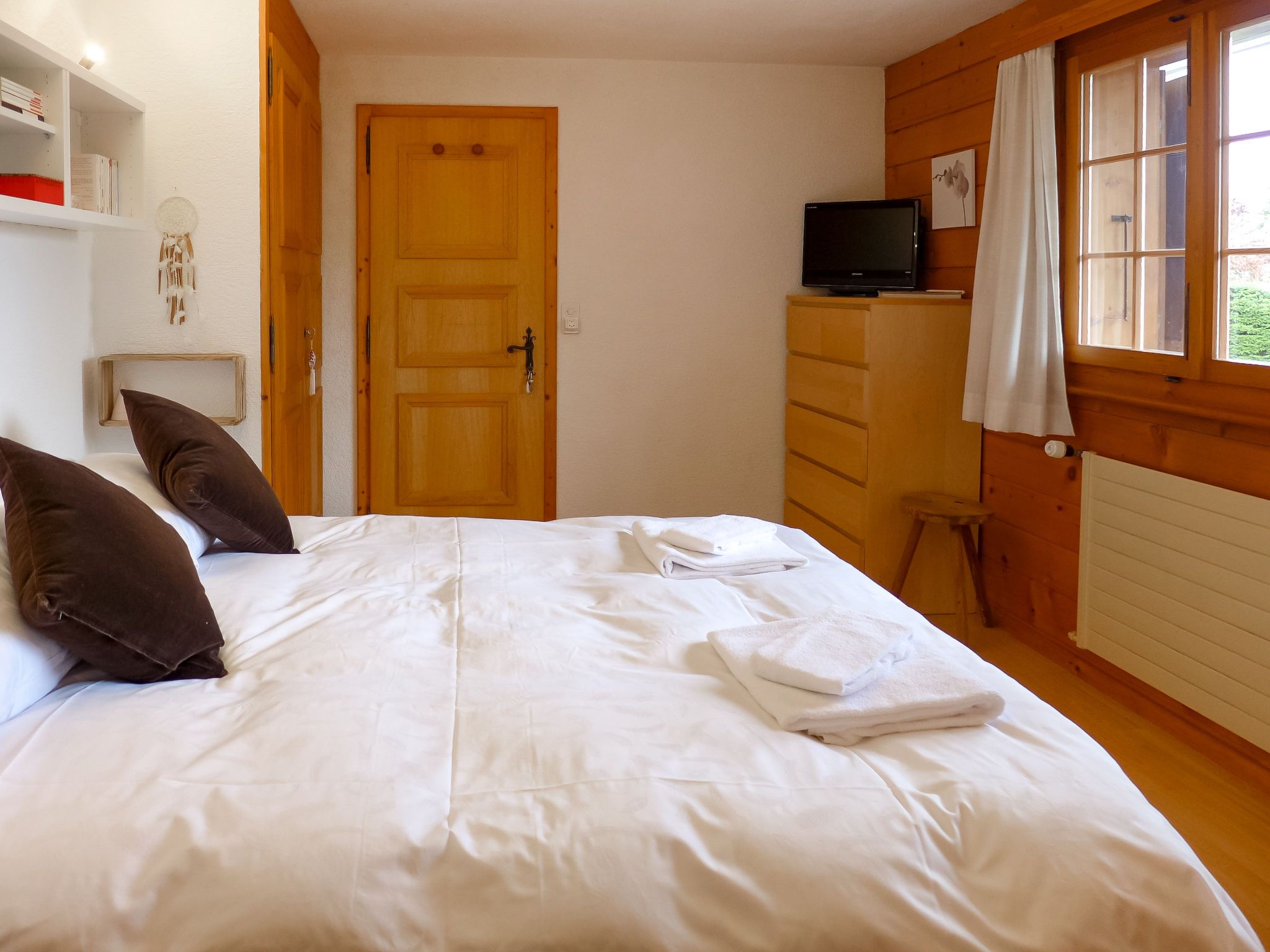Les Seracs 1, 2-Zimmer-Wohnung 45 m2, im erhöhten Erdgeschoss, Südlage. Komfortabel und schön eingerichtet: Wohn-/Esszimmer mit 1 Doppeldiwanbett, Schwedenofen und Sat-TV (Flachbildschirm). Ausgang zur Terrasse. 1 Zimmer mit 1 franz. Bett. Kleine Küche (Backofen, Geschirrspüler, 4 Glaskeramikplatten, Wasserkocher, Mikrowelle, Tiefkühler, Racletteofen). Bad, sep. WC. Terrasse. Terrassenmöbel. Eingeschränkte Sicht auf die Berge. Zur Verfügung: Haartrockner. Internet (Wireless LAN, gratis). Parkplatz Nr. 1. Bitte beachten: Nichtraucher-Haus.