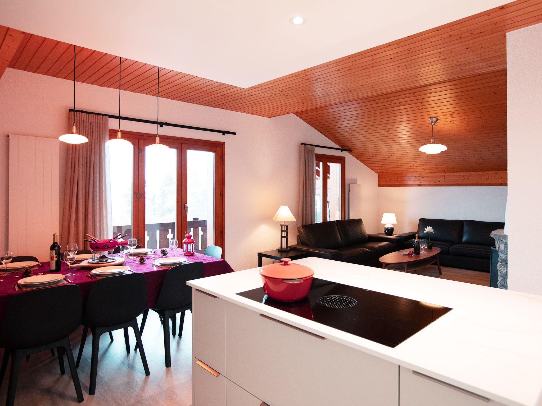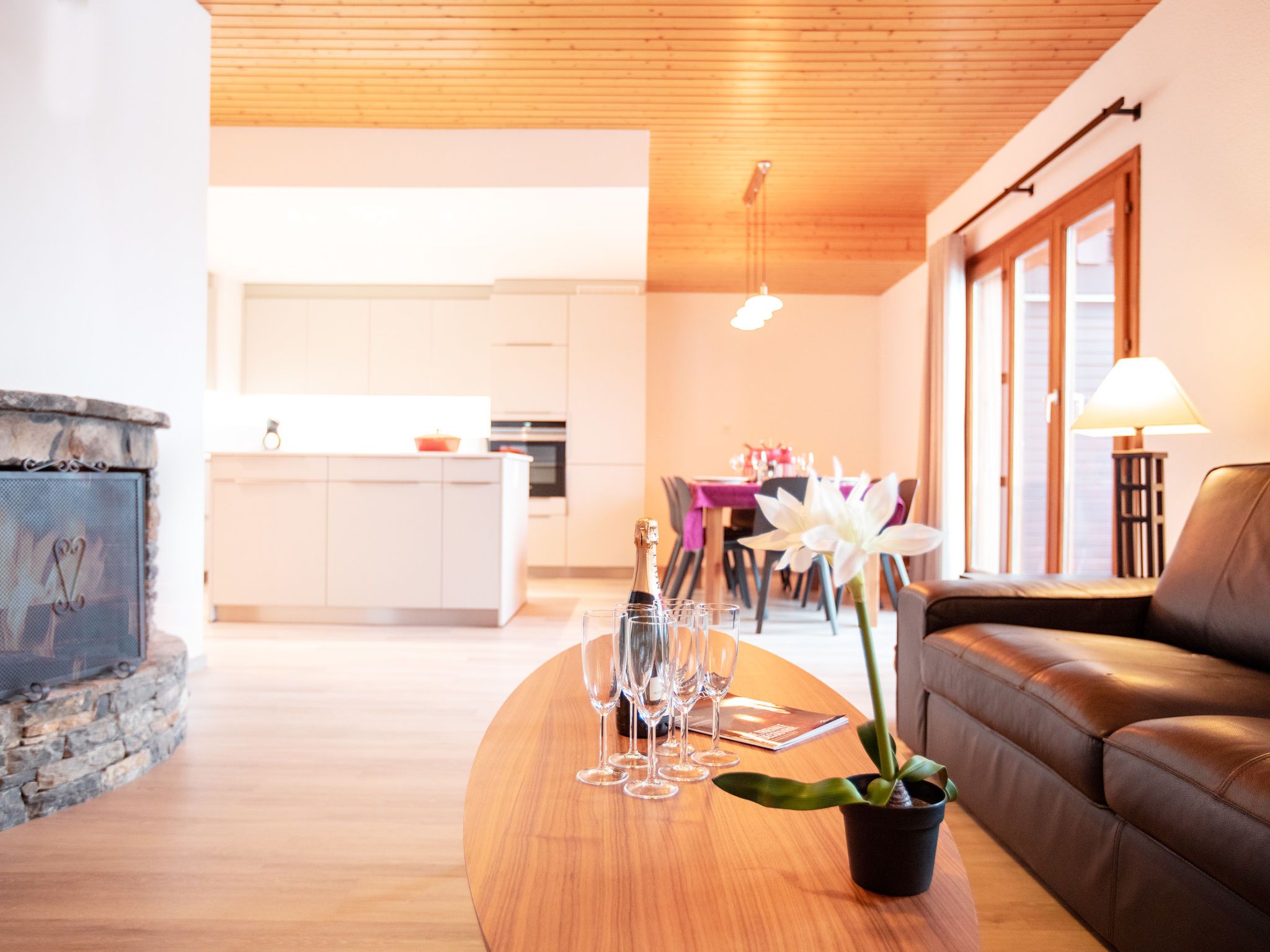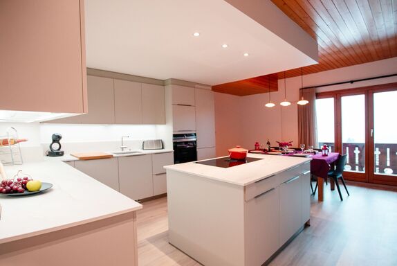 Grand-Pont 15, 4-Zimmer-Wohnung 90 m2 im 2. Stock, Südlage. Teilweise im Jahre 2023, komfortabel und schön eingerichtet: Wohn-/Esszimmer mit offenem Kamin und Sat-TV (Flachbildschirm), CD und DVD. Ausgang zum Balkon. 2 Zimmer, jedes Zimmer mit 2 Betten. 1 Zimmer mit 2 Betten. Offene Küche (Backofen, Geschirrspüler, 4 Induktionskochplatten, Toaster, Wasserkocher, Mikrowelle, Tiefkühler, elektrische Kaffeemaschine, Kapseln für die Kaffeemaschine (Dolce Gusto) extra, Kombinationsmikrowelle, Fondue Set (Käse)) mit Bar. Bad/WC, Dusche/WC. Balkon 15 m2. Terrassenmöbel, Gartengrill. Sehr schöne Panoramasicht auf die Berge und das Tal. Zur Verfügung: Kinderhochstuhl, Haartrockner. Internet (Wireless LAN, gratis). Garage Nr. 15, Höhe 215 cm, Breite 300 cm. Bitte beachten: Nichtraucher-Unterkunft.