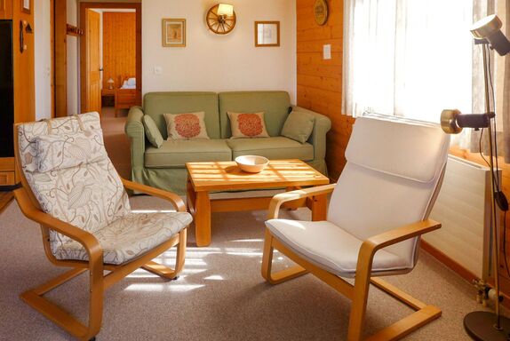 Aiguilles Dorées III/2, 2-Zimmer-Wohnung 45 m2, im Erdgeschoss, Südlage. Komfortabel und schön eingerichtet: Wohn-/Esszimmer mit Panoramafenster mit 1 Doppeldiwanbett (1 x 160 cm), offenem Kamin, Esstisch und TV (Flachbildschirm). Ausgang zur Terrasse, Richtung Süden. 1 Zimmer mit Panoramafenster mit 2 Betten (90 cm). Ausgang zum Garten. Offene Küche (4 Kochplatten, Backofen, Geschirrspüler, Toaster, Wasserkocher, Mikrowelle, elektrische Kaffeemaschine, Racletteofen, Fondue Set (Käse)). Bad/WC. Grosse Terrasse, Südlage, Garten. Terrassenmöbel, Liegestühle. Sehr schöne Sicht auf die Berge. Zur Verfügung: Haartrockner. Internet (Wireless LAN, gratis). Parkplatz (1 Auto). Bitte beachten: Nichtraucher-Unterkunft.