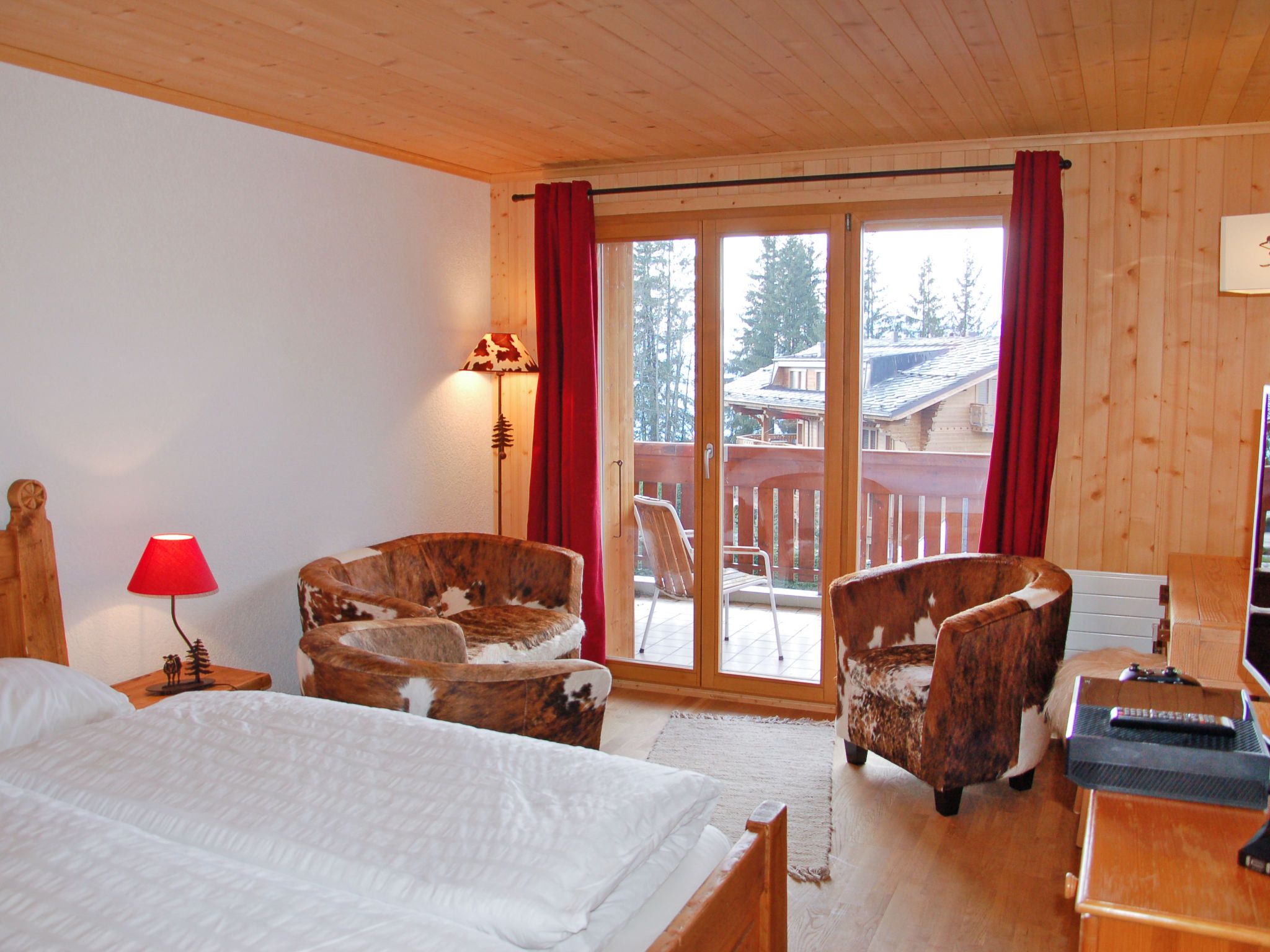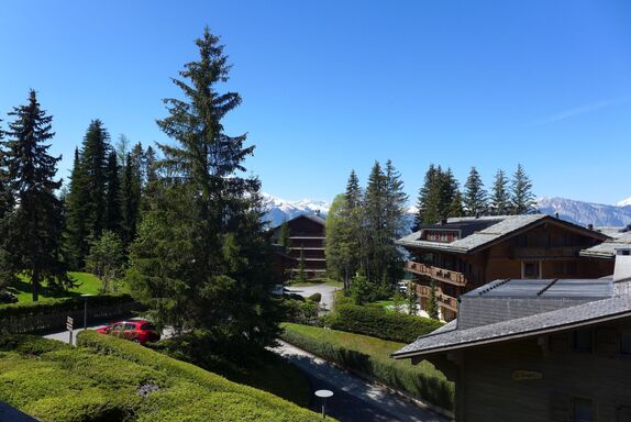 Montagnards 13, 1-Zimmer-Studio 23 m2. Renoviert im Jahre 2017, komfortabel und schön eingerichtet: Wohn-/Schlafzimmer mit 1 franz. Bett (160 cm, Länge 200 cm), Esstisch, Dusche/WC und TV (Flachbildschirm). Ausgang zum Balkon. Offene Küche (4 Kochplatten, Backofen, Geschirrspüler, Toaster, Wasserkocher, elektrische Kaffeemaschine, Kapseln für die Kaffeemaschine (Nespresso) extra, Racletteofen, Fondue Set (Chinoise, Käse)). Balkonmöbel. Schöne Sicht. Zur Verfügung: Waschmaschine, Wäschetrockner, Haartrockner. Internet (WLAN, gratis). Maximal 1 Haustier/Hund erlaubt.