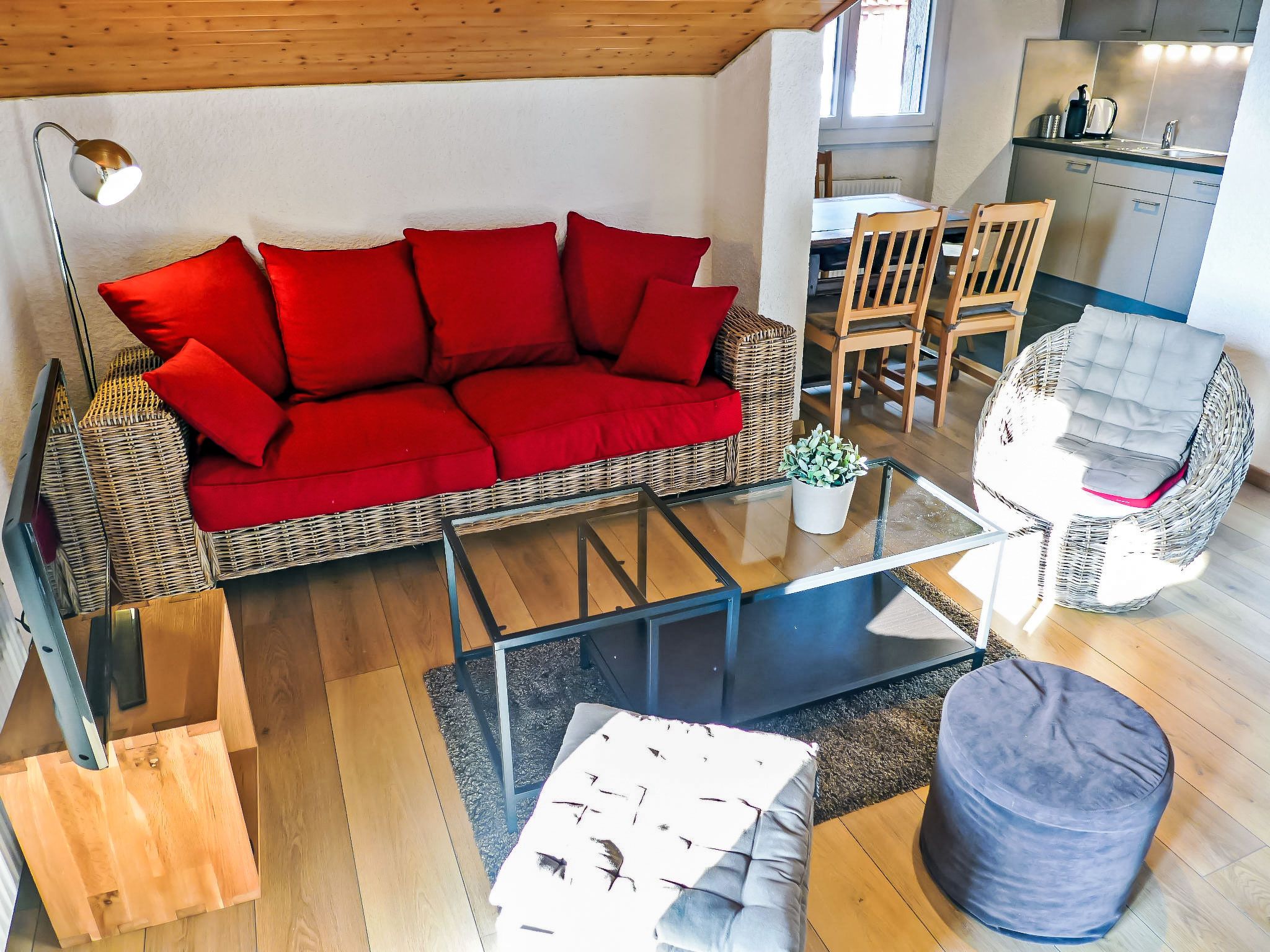Les Bruyères 25, 2-Zimmer-Attikawohnung 42 m2 im 2. Stock. Komfortabel und schön eingerichtet: Wohn-/Esszimmer mit offenem Kamin (nur Deko), TV (Flachbildschirm), DVD. Ausgang zum Balkon, Richtung Süden. 1 Zimmer mit 1 x 2 Etagenbetten, 1 Doppelbett (160 cm). Offene Küche (Backofen, Geschirrspüler, 4 Glaskeramikplatten, Toaster, Wasserkocher, Mikrowelle, elektrische Kaffeemaschine, Kapseln für die Kaffeemaschine (Dolce Gusto) extra, Racletteofen, Kombinationsmikrowelle, Fondue Set (Käse)). Bad/WC. Kleiner Balkon 6 m2. Balkonmöbel. Sehr schöne Sicht auf die Berge. Zur Verfügung: Internet (Wireless LAN, gratis). IPod docking station. Garage Nr. 25.