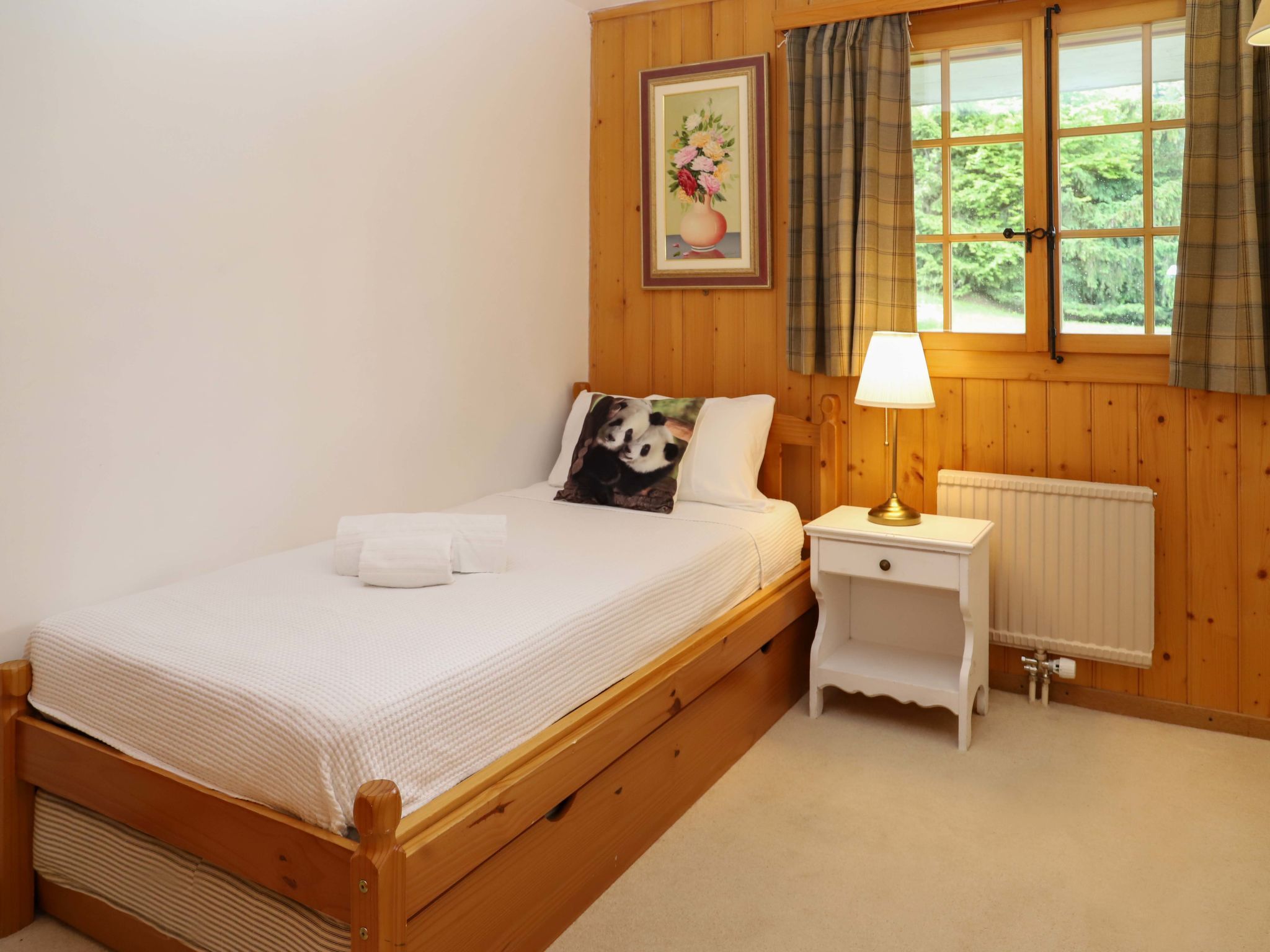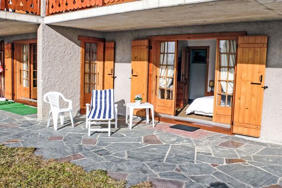 Argentière 3, 4-Zimmer-Wohnung 85 m2, im Erdgeschoss, Südlage. Geräumig, komfortabel und schön eingerichtet: Wohn-/Esszimmer mit offenem Kamin (nur Deko), Esstisch und TV. Ausgang zum Garten, zur Terrasse. 1 Doppelzimmer mit 2 Betten (90 cm, Länge 200 cm). Ausgang zum Garten, zur Terrasse. 1 Zimmer mit 1 Ausziehbett (2 x 90 cm). 1 Zimmer mit 1 franz. Bett (180 cm), Dusche/WC. Ausgang zum Garten, zur Terrasse. Küche (4 Kochplatten, Backofen, Geschirrspüler, Toaster, Wasserkocher, elektrische Kaffeemaschine, Kapseln für die Kaffeemaschine (Nespresso) extra, Racletteofen, Fondue Set (Käse)). Bad/WC, Dusche/WC. Terrasse, Südostlage, grosser Garten, Rasen. Terrassenmöbel. Sehr schöne Sicht auf die Berge und die Skipiste. Zur Verfügung: Telefon, Haartrockner. Internet (Wireless LAN, gratis). Bitte beachten: Nichtraucher-Unterkunft. 1 kleines Haustier/Hund erlaubt. Kein Fahrstuhl.