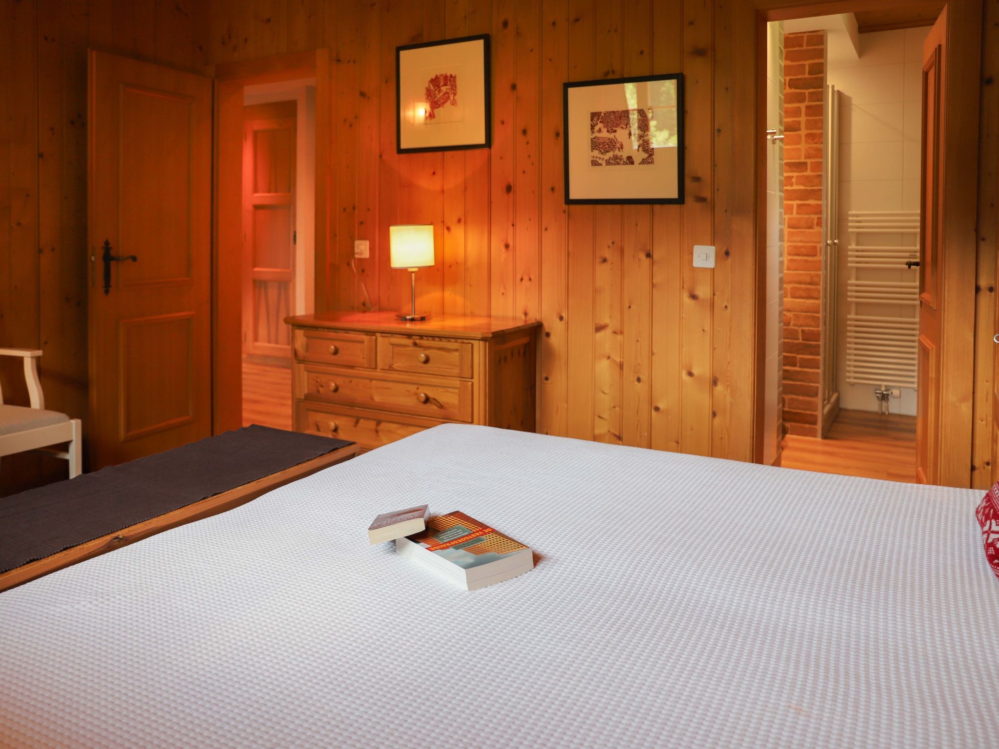 Argentière 8, 4-Zimmer-Attikawohnung 95 m2 auf 2 Stockwerken im 2. Stock, Südlage. Geräumig, vollständig renoviert im Jahre 2016, schön und gemütlich eingerichtet: abgeschrägtes Wohn-/Esszimmer mit offenem Kamin (nur Deko), TV (Flachbildschirm), Stereoanlage und DVD. Ausgang zum Balkon, Richtung Süden. 1 Zimmer mit 1 franz. Bett (2 x 90 cm), Bad/Dusche/WC. 1 Zimmer mit 2 Betten (90 cm). Ausgang zum Balkon. 1 kleines Zimmer mit 2 Betten (90 cm). Offene Küche (Backofen, Geschirrspüler, 4 Glaskeramikplatten, Toaster, Wasserkocher, Mikrowelle, Tiefkühler, elektrische Kaffeemaschine, Racletteofen, Fondue Set (Käse)). Dusche/WC. Obergeschoss: (Leiter) 1 abgeschrägtes, offenes Zimmer, Deckenhöhe 100 - 210 cm mit 2 Betten (90 cm). Balkon, Südlage. Balkonmöbel. Herrliche Panoramasicht auf die Berge und das Tal. Zur Verfügung: Haartrockner. Internet (Wireless LAN, gratis). IPod docking station. Garage Nr. 8. Bitte beachten: kein Fahrstuhl.