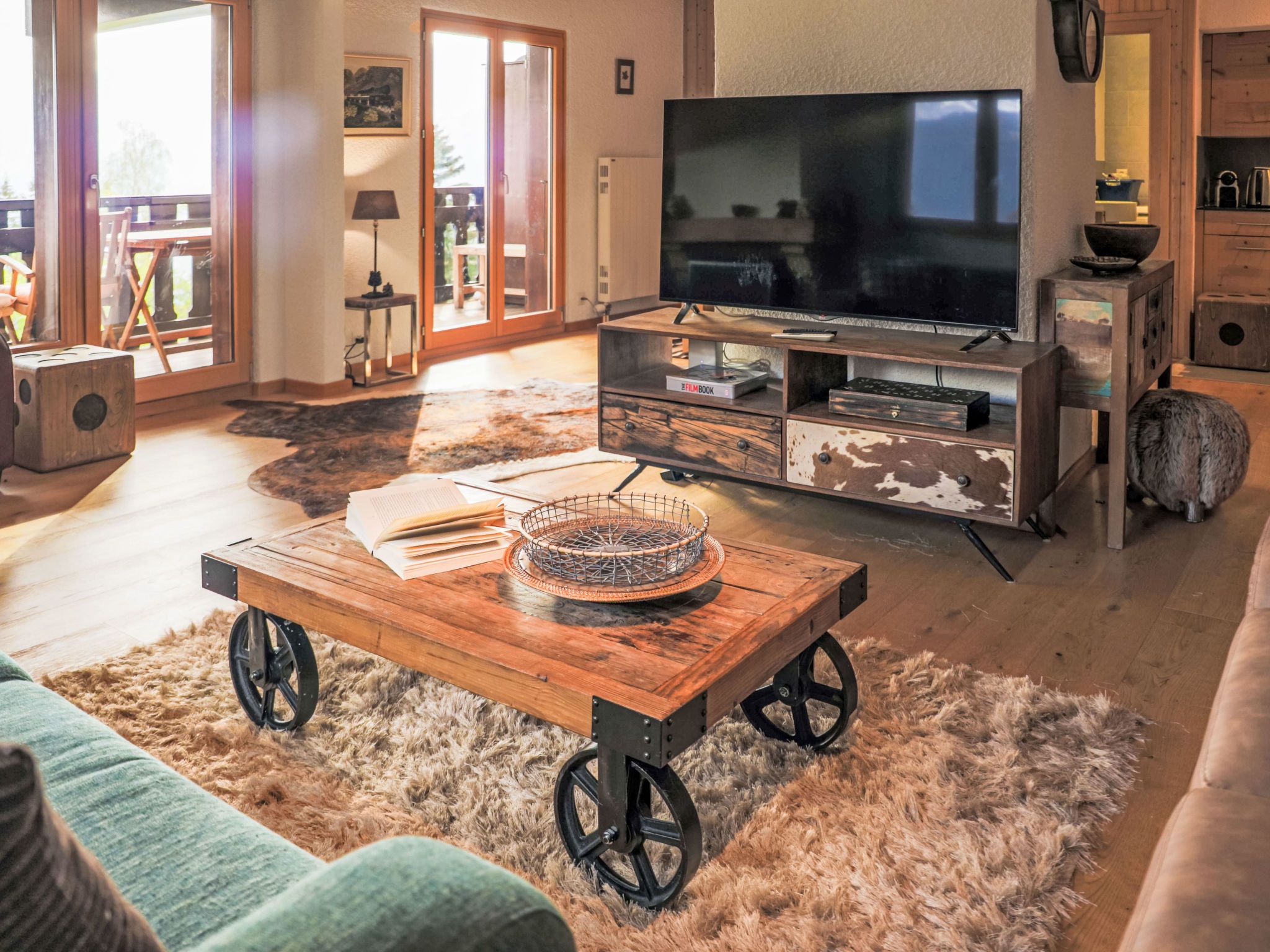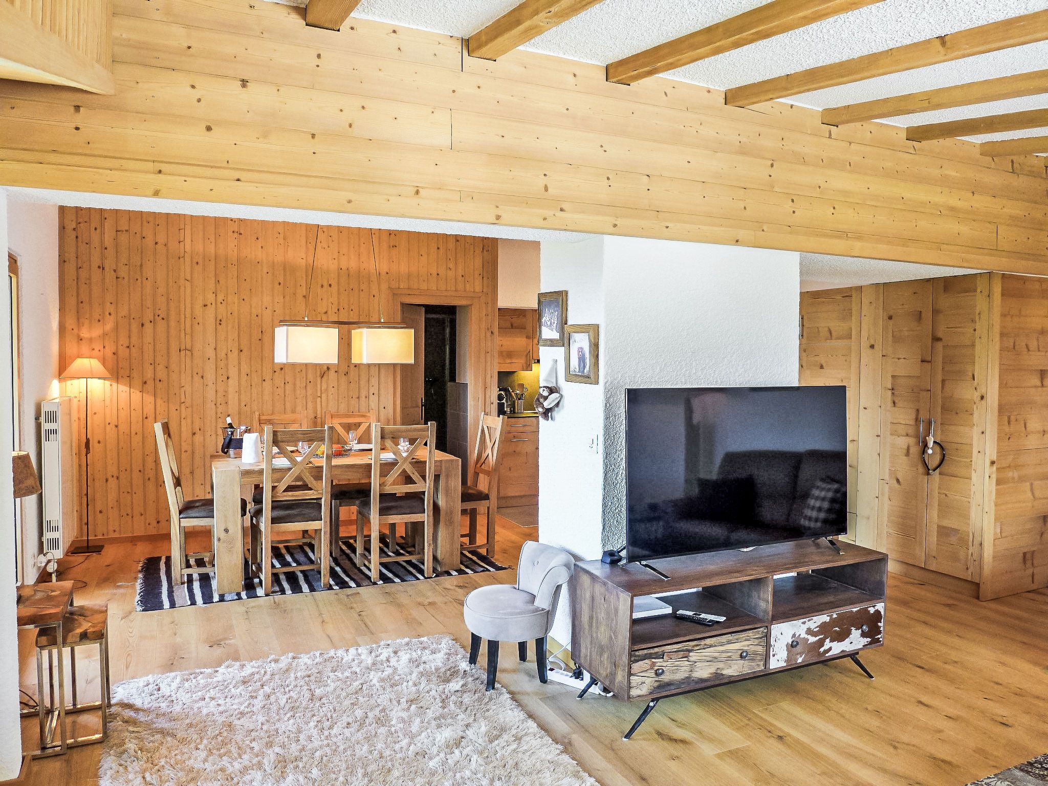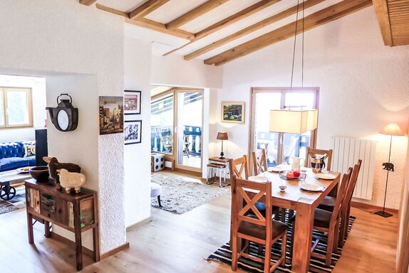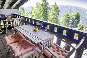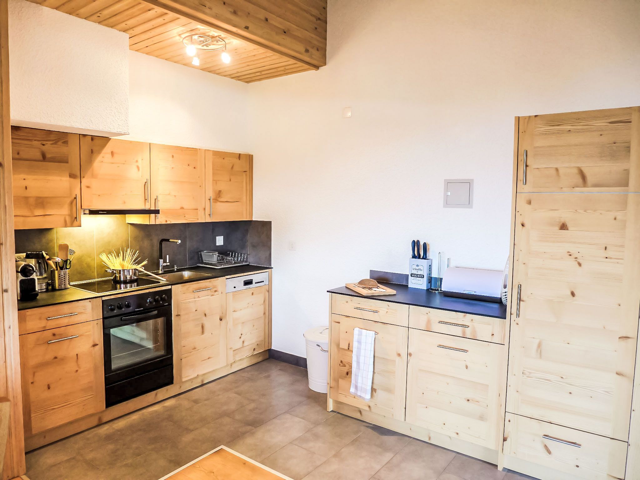 Regina B9, 3-Zimmer-Attikawohnung 80 m2 im 2. Stock, Südlage. Geräumig, abgeschrägt, vollständig renoviert im Jahre 2017, schön und geschmackvoll eingerichtet: abgeschrägtes grosses Wohn-/Esszimmer, Deckenhöhe 200 - 400 cm mit offenem Kamin, Esstisch und TV. Ausgang zum Balkon, Richtung Süden. 1 Doppelzimmer, Deckenhöhe 130 - 200 cm mit 1 franz. Bett (1 x 180 cm, Länge 200 cm). 1 Zimmer mit 1 x 2 Etagenbetten (90 cm, Länge 200 cm). Offene Küche (Backofen, Geschirrspüler, 4 Glaskeramikplatten, Toaster, Wasserkocher, Mikrowelle, elektrische Kaffeemaschine, Kapseln für die Kaffeemaschine (nespresso) extra, Racletteofen, Fondue Set (Käse)). Bad/WC, Dusche/WC. Balkon 10 m2, Südlage. Balkonmöbel. Schöne Panoramasicht auf die Berge und das Tal. Zur Verfügung: Waschmaschine, Wäschetrockner, Haartrockner. Internet (Wireless LAN). Parkplatz, Garage Nr. b9. Bitte beachten: Nichtraucher-Unterkunft.