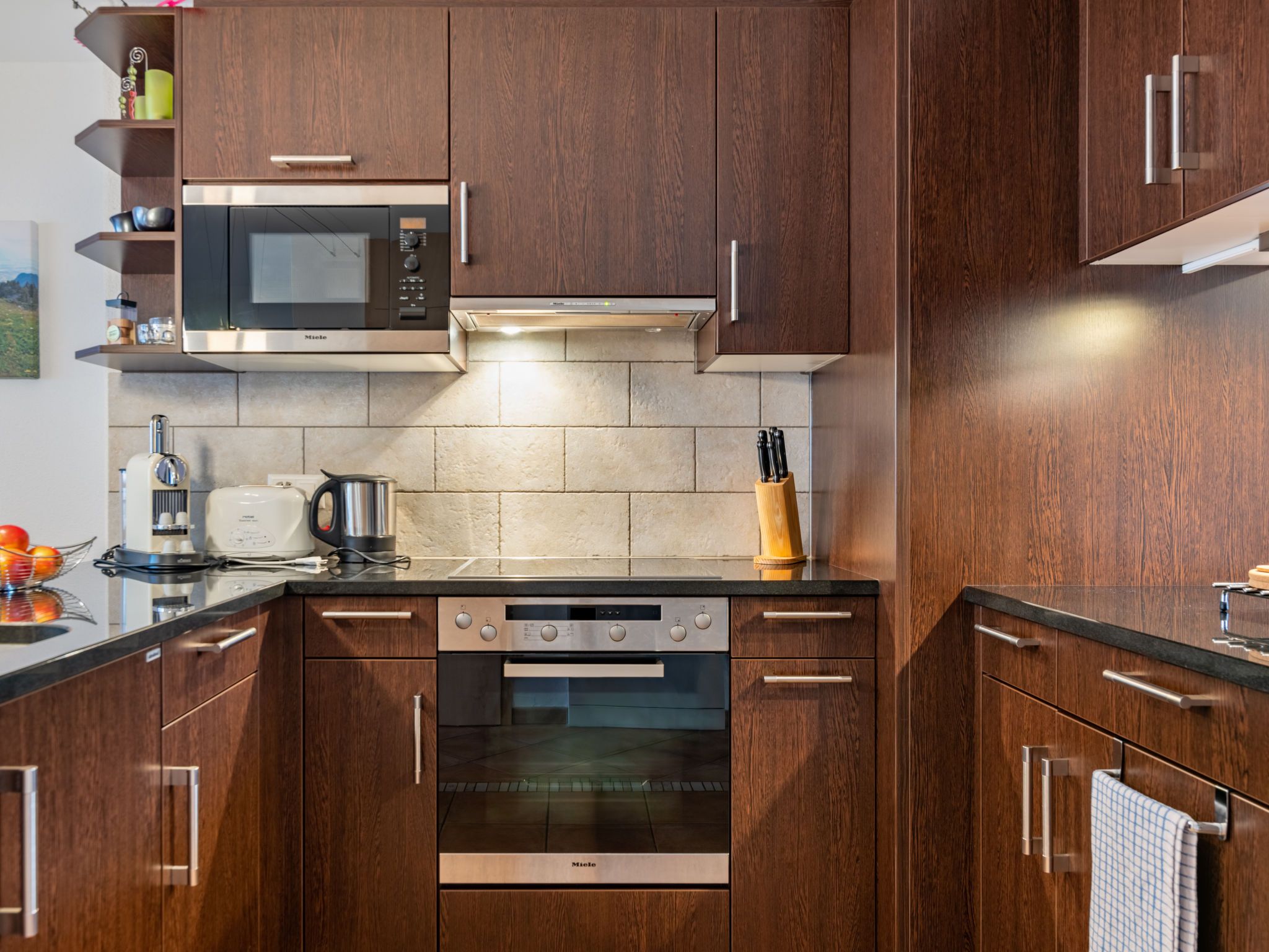 Tasman 15/R, 3-Zimmer-Wohnung 89 m2 auf 2 Stockwerken. Geräumig, komfortabel und geschmackvoll eingerichtet: Wohn-/Esszimmer mit Essecke und TV. Ausgang zur Terrasse. Offene Küche (Geschirrspüler, 4 Glaskeramikplatten, Toaster, Wasserkocher, Mikrowelle, Tiefkühler, elektrische Kaffeemaschine, Kapseln für die Kaffeemaschine (Nespresso) extra). Sep. WC. Obergeschoss: 1 Zimmer mit 1 Doppelbett (150 cm, Länge 200 cm). 1 Zimmer mit 3 Betten (90 cm, Länge 190 cm). Bad/WC. Terrasse. Balkonmöbel. Sehr schöne Sicht auf die Berge, die Landschaft und den Kanal. Zur Verfügung: Waschmaschine, Wäschetrockner. Internet (WLAN, gratis). Parkplatz Nr. 127. Bitte beachten: Nichtraucher-Unterkunft.