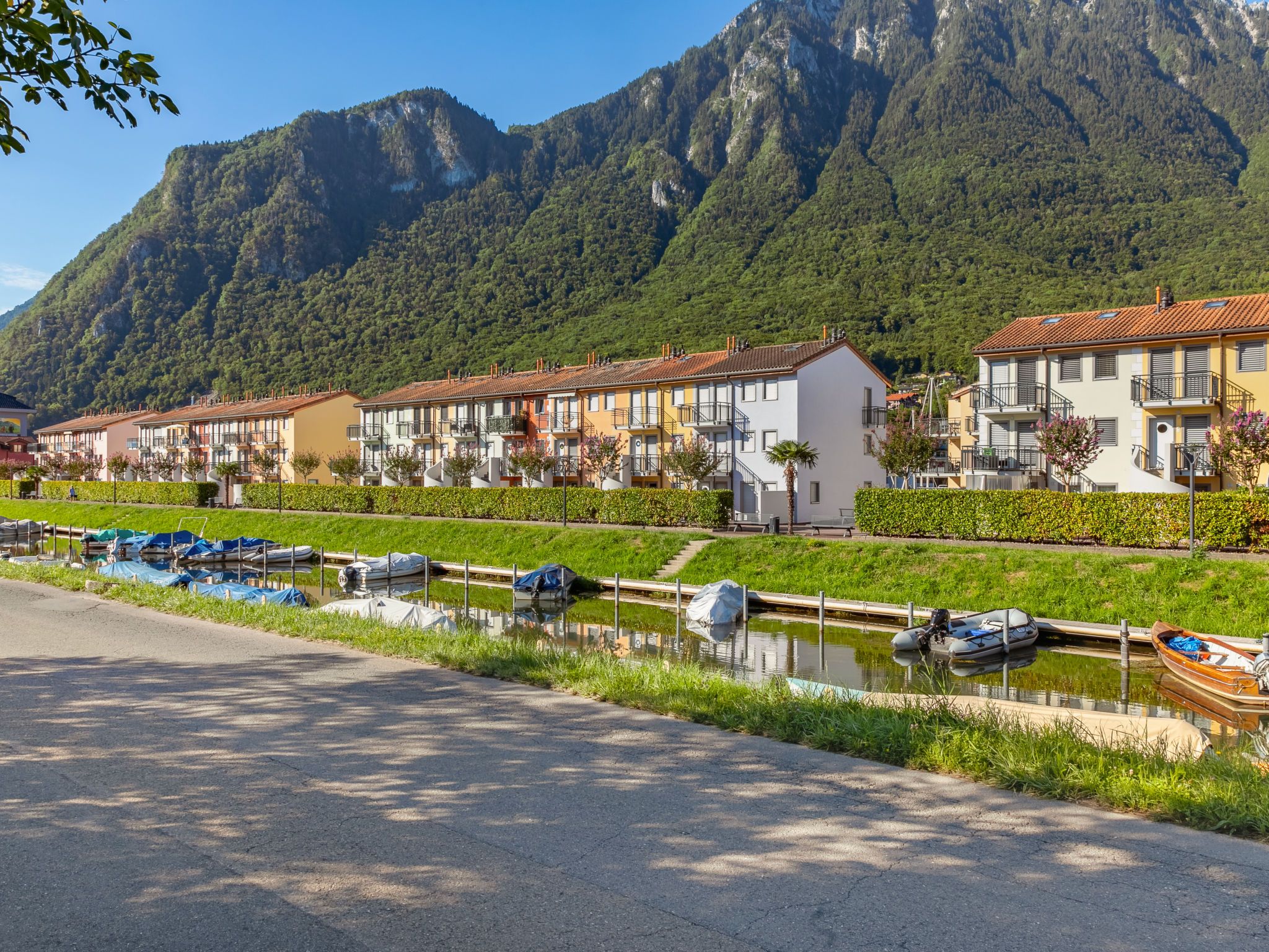Grosse Ferienanlage Residenz Marina. Am Ortsrand, 300 m vom Zentrum von Le Bouveret, ruhige, sonnige Lage, 200 m vom See, 50 m vom Kanal. Im Hause: Zentralheizung. Einkaufsgeschäft, Lebensmittelgeschäft 800 m, Restaurant, Bäckerei 500 m, Fahrradverleih 190 m, Bushaltestelle Bouveret village 1.2 km, Bahnstation Le Bouveret 300 m, Kieselstrand 200 m, Freibad 300 m, Hallenbad 7.2 km, Thermalbad 30 km, Strandbad 300 m, Badesee Léman 300 m. Sporthafen 200 m, Golfplatz (18 Loch) 15 km, Surfschule 200 m, Tennis, Minigolf 12 km, Wanderwege ab Haus 300 m, Bergeisenbahn 15 km, Skipisten 18 km, Skischule 18 km, Kinderskischule 35 km, Schlittelbahn 29 km, Langlaufloipe 35 km, Eisfeld 18 km. Nahe gelegene Sehenswürdigkeiten: Parc Aventure 17 km, Château Chillon / Fort de Chillon, Swiss Vapeur Parc 100 m, Aqua Parc 500 m. Bekannte Skigebiete sind gut erreichbar: Les Portes du Soleil 18 km, Villars 35 km, Leysin 31 km. Bekannte Seen in der Umgebung sind gut erreichbar: Lac Léman. Wandergebiete: Portes du Soleil. Die Schlüsselübergabe findet bei der Agentur Interhome in Bouveret statt. Die Nachbarschaft ist sehr lärmempfindlich. Ruhe und gutes Benehmen wird erwartet.