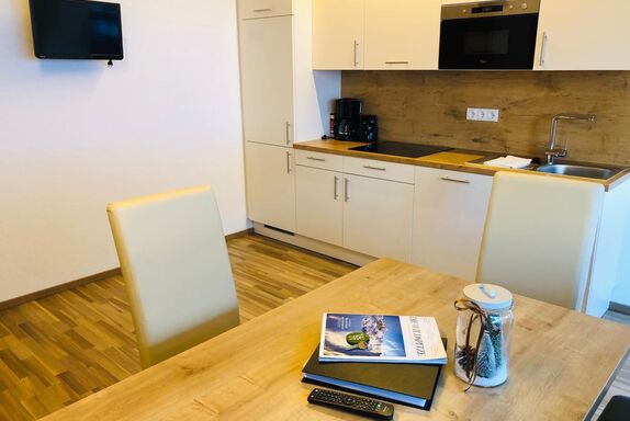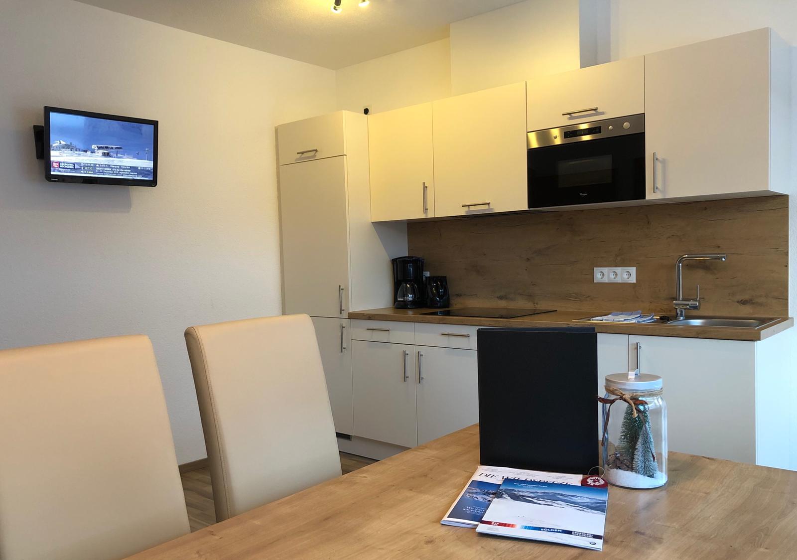 Appartement Brunnenkogel (ca. 55 m² im Parterre) 2 Doppelzimmer, 2 Badezimmer mit Dusche/WC, vollausgestattete Wohnküche mit Essbereich, Sofa, Ceran-Kochfeld, Geschirrspüler, Mikrowelle, Kühlschrank, Kaffemaschine, Wasserkocher, TV uvm. Außerdem verfügt das Appartement über einen großen Balkon.