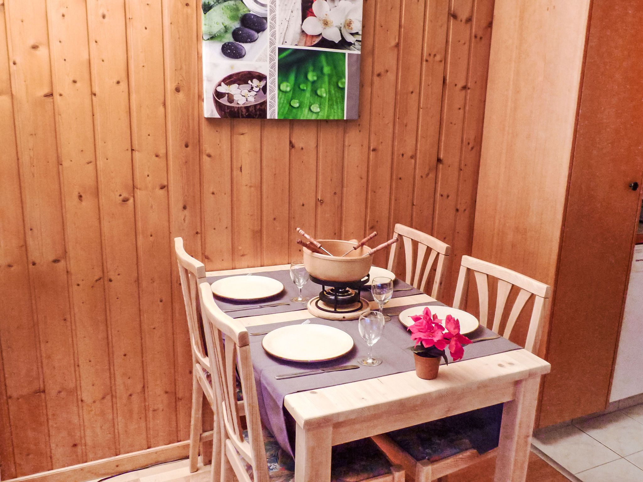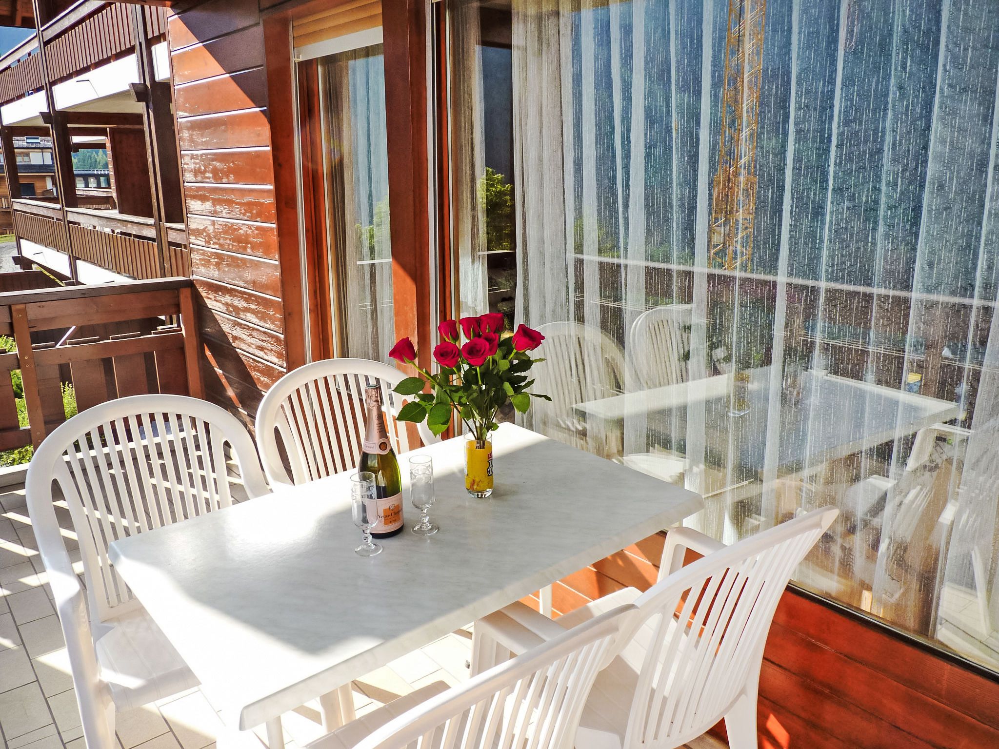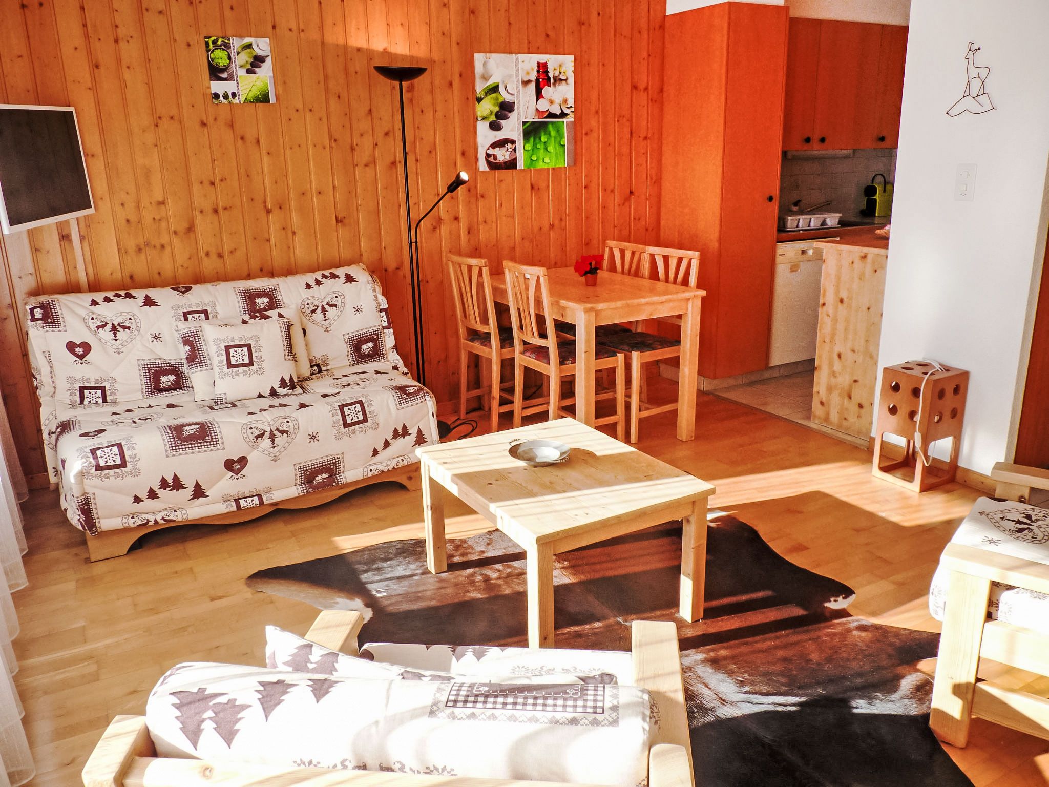 Sources 4109, 1-Zimmer-Studio 33 m2 im 1. Stock, Südlage. Hell, komfortabel und geschmackvoll eingerichtet: Wohn-/Schlafzimmer mit 2 Wandschrankbetten (90 cm, Länge 190 cm), Kabel-TV und Flachbildschirm. Ausgang zum Balkon. Kochnische (4 Kochplatten, Backofen, Geschirrspüler, Mikrowelle, elektrische Kaffeemaschine, Kapseln für die Kaffeemaschine (Nespresso) extra, Racletteofen, Fondue Set (Chinoise, Käse)) mit Esstisch. Bad/WC. Balkon 11 m2, Südlage. Balkonmöbel, Liegestühle (2). Sehr schöne Panoramasicht auf das Tal und das Schwimmbad. Zur Verfügung: Safe, Bügeleisen, Haartrockner. Internet (WLAN, gratis). Garage Nr. C11. Bitte beachten: Nichtraucher-Unterkunft.