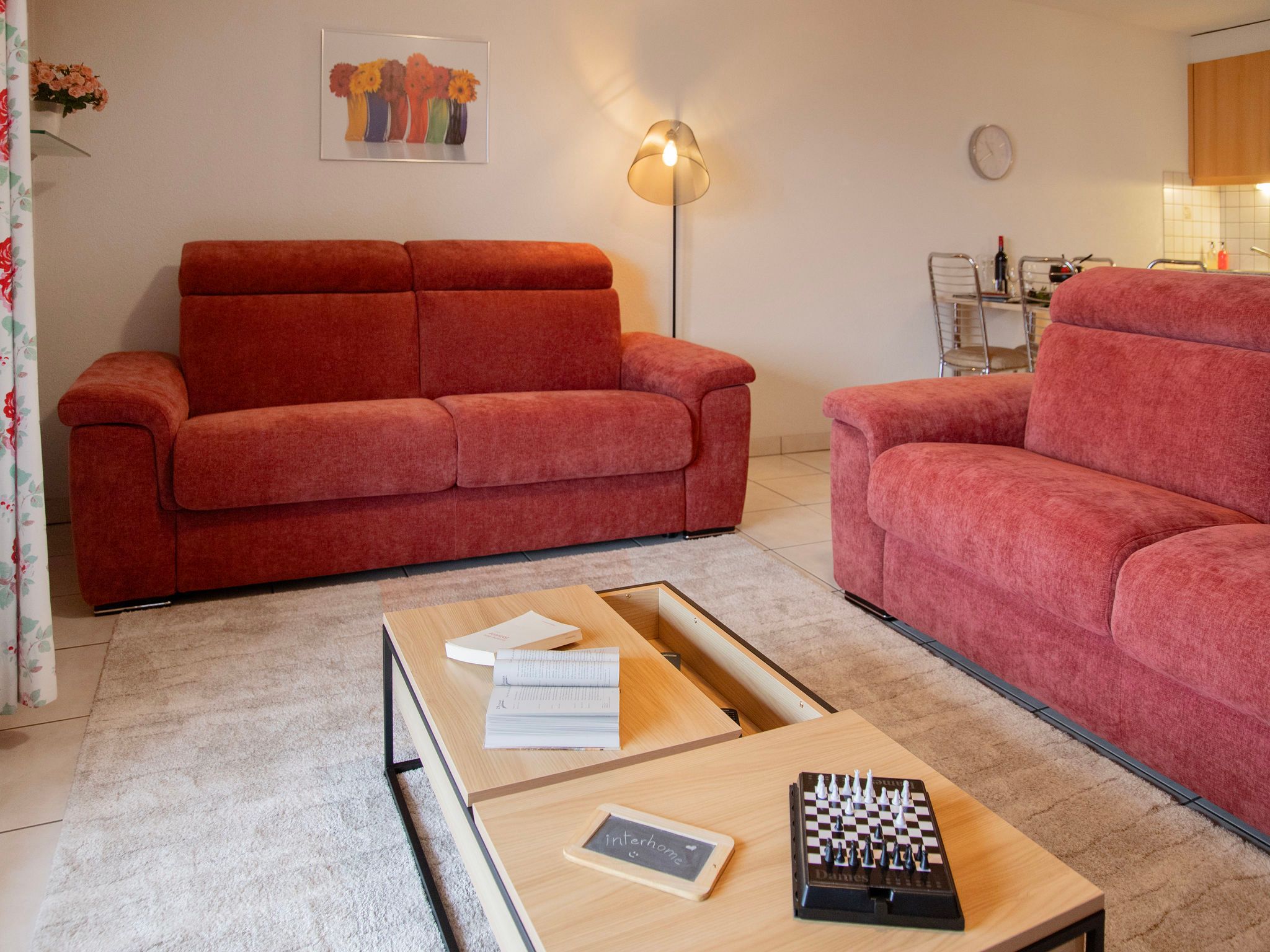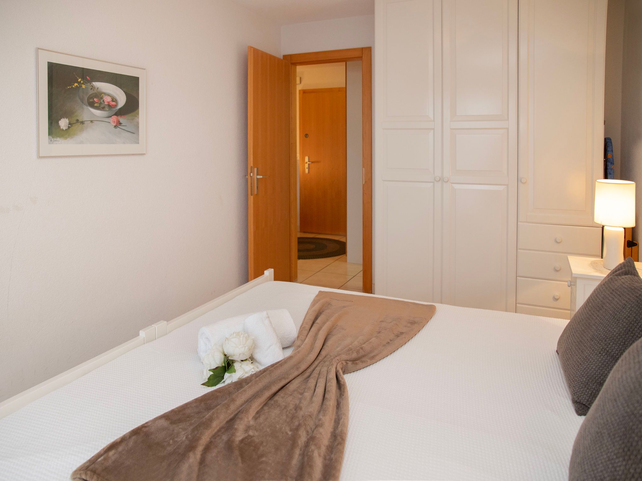 Réze 5, 2-Zimmer-Wohnung 60 m2 im 2. Stock, Südlage. Komfortabel und modern eingerichtet: Wohn-/Esszimmer 25 m2 mit 1 Doppeldiwanbett (1 x 140 cm, Länge 190 cm), offenem Kamin, Kabel-TV, Flachbildschirm, Stereoanlage und DVD. Ausgang zum Balkon. 1 Zimmer mit 2 Betten (90 cm, Länge 200 cm), Radio. Ausgang zum Balkon. Kochnische (4 Kochplatten, Backofen, Geschirrspüler, Mikrowelle, elektrische Kaffeemaschine, Kapseln für die Kaffeemaschine (Nespresso) extra) mit Esstisch. Bad/WC. Balkon 16 m2, Südlage. Terrassenmöbel, Liegestühle (2). Schöne Sicht auf die Berge. Zur Verfügung: Babybett bis 2 Jahre. Internet (WLAN, gratis). Parkplatz Nr. 5. Bitte beachten: Nichtraucher-Unterkunft. Maximal 1 kleines Haustier/Hund erlaubt.