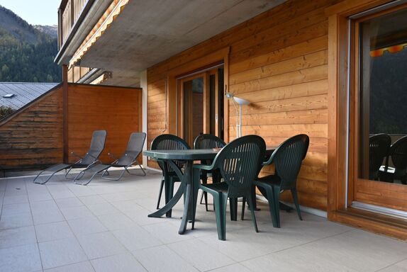 Kleines Mehrfamilienhaus Le Caroubier, Baujahr 1999. Im Ortsteil Centre Thermal, 1.4 km vom Zentrum von Ovronnaz, ruhige, sonnige Lage, 2.1 km vom Skigebiet, in einer Sackgasse, Richtung Süden. Im Hause: Zentralheizung, Waschmaschine, Wäschetrockner (zur Mitbenutzung). Zufahrt bis zum Haus (Rampe). Im Winter bitte Schneeketten mitbringen. Parkplatz (überdacht), Einzelgarage. Lebensmittelgeschäft 1.5 km, Restaurant, Bar 190 m, Bäckerei 1.5 km, Café 190 m, Bushaltestelle Postal Morthey, centre 270 m, Bahnstation Riddes 10.2 km, Thermalbad 550 m. Sessellift 2.1 km, Skiverleih 1.4 km, Skibushaltestelle 230 m, Skischule 1.4 km, Langlaufloipe 2.6 km, Kinderspielplatz 1 km. Bitte beachten: Babyausstattung auf Anfrage (extra). Gratis Skibus. Flugplatz 125 km vom Haus.