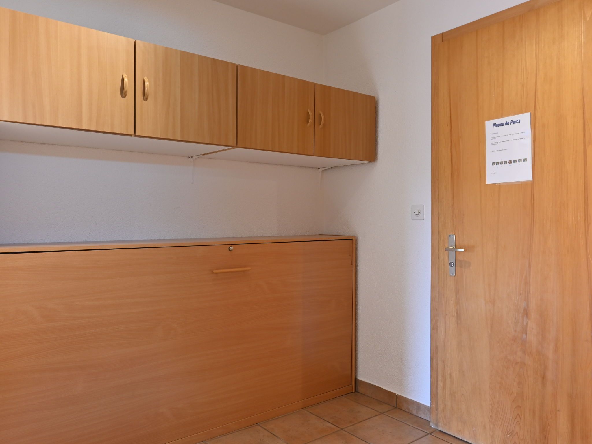 Caroubier 2, 2-Zimmer-Wohnung 60 m2 im 1. Stock, Südlage. Komfortabel und schön eingerichtet: offener Eingang mit 1 Wandklappbett (95 cm, Länge 200 cm). Wohn-/Esszimmer mit offenem Kamin, Kabel-TV und DVD. Ausgang zum Balkon, Richtung Süden. 1 Zimmer mit 1 Doppelbett (2 x 80 cm, Länge 200 cm). Ausgang zum Balkon, Richtung Süden. Offene Küche (Backofen, Geschirrspüler, 4 Glaskeramikplatten, Mikrowelle, elektrische Kaffeemaschine, Kapseln für die Kaffeemaschine (Delizio) extra, Racletteofen, Fondue Set (Chinoise, Käse)) mit Esstisch. Bad/WC. Grosser Balkon 26 m2, Südlage. Balkonmöbel, Gartengrill, Liegestühle. Schöne Sicht auf die Berge. Zur Verfügung: Bügeleisen, Haartrockner. Internet (WLAN, gratis). Parkplatz Nr. 2 devant le box n°2 (überdacht, 1 Auto), Garage Nr. 2 (1 Auto), Höhe 210 cm, Breite 290 cm. Bitte beachten: Nichtraucher-Unterkunft. Maximal 1 Haustier/Hund erlaubt. Anstelle eines abgeschlossenen Schlafzimmers befinden sich manche Schlafplätze in einem offenen Bereich (Galerie, Nische etc.).