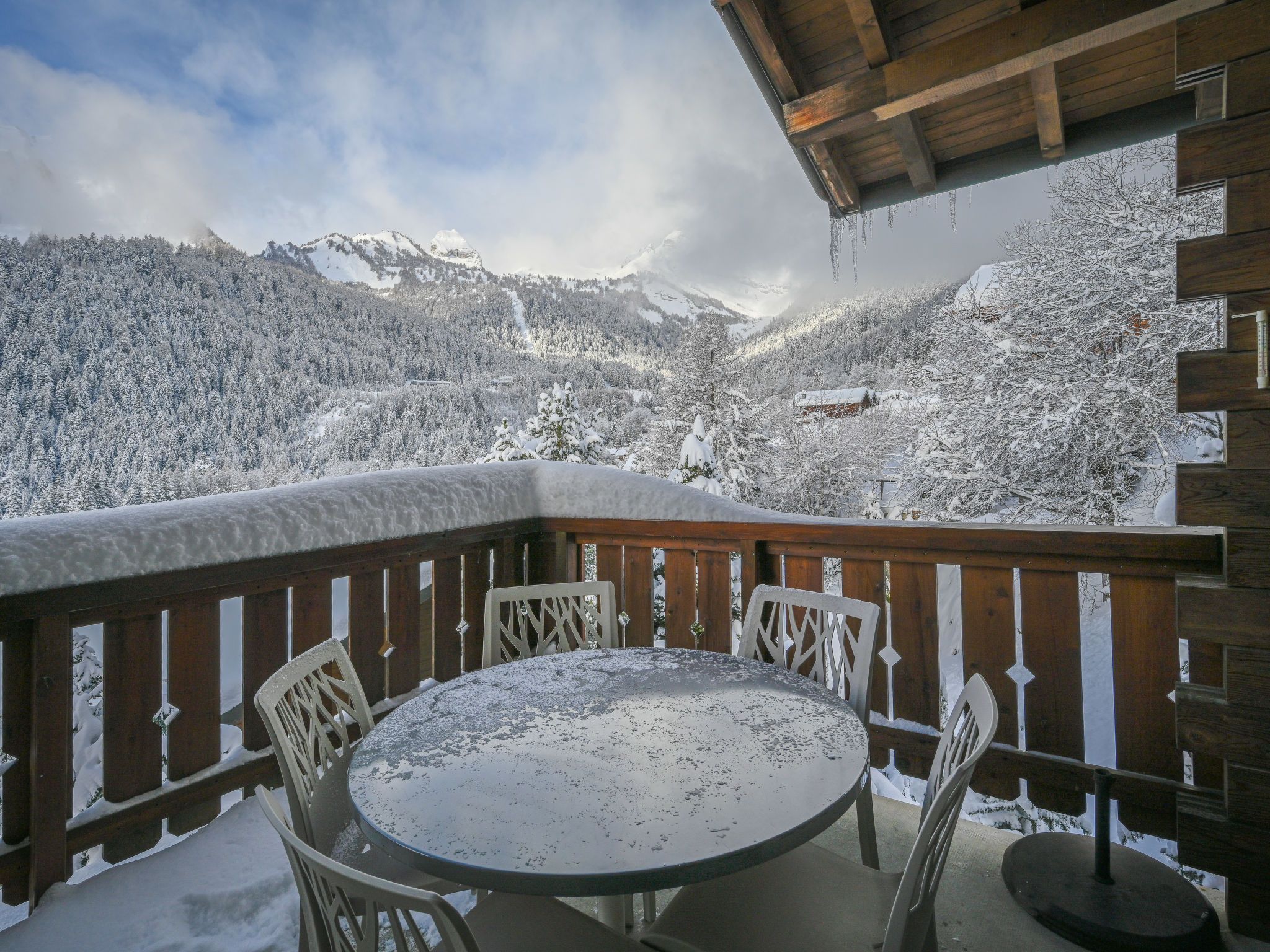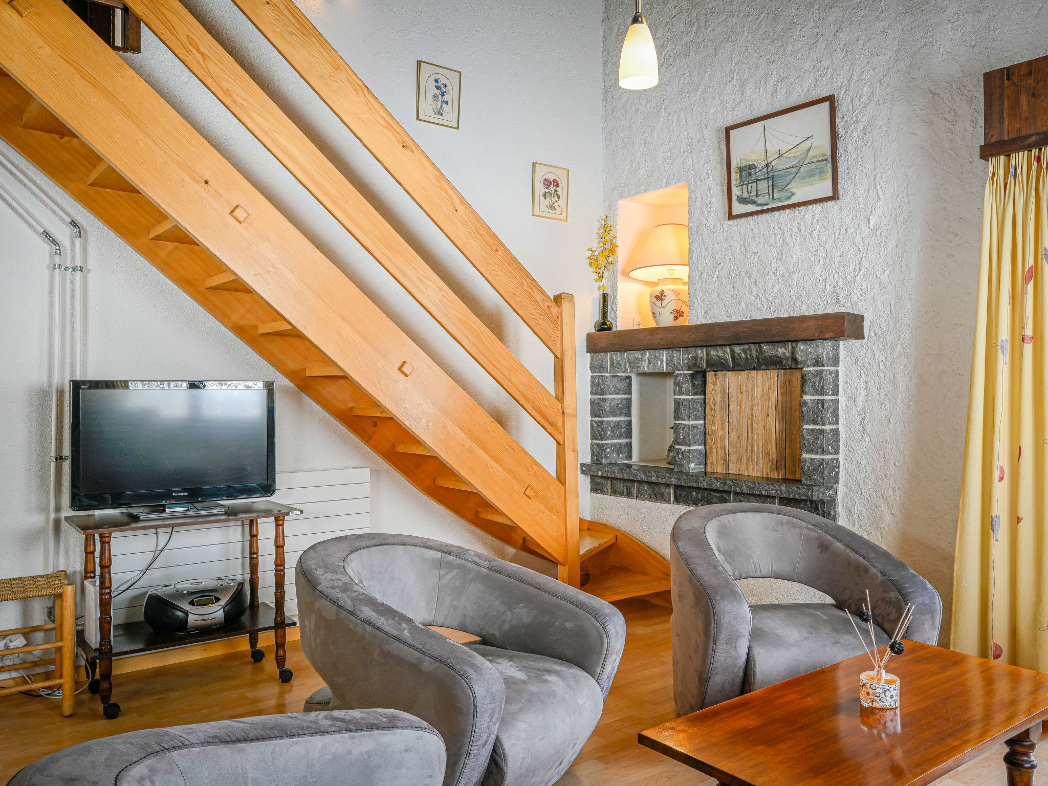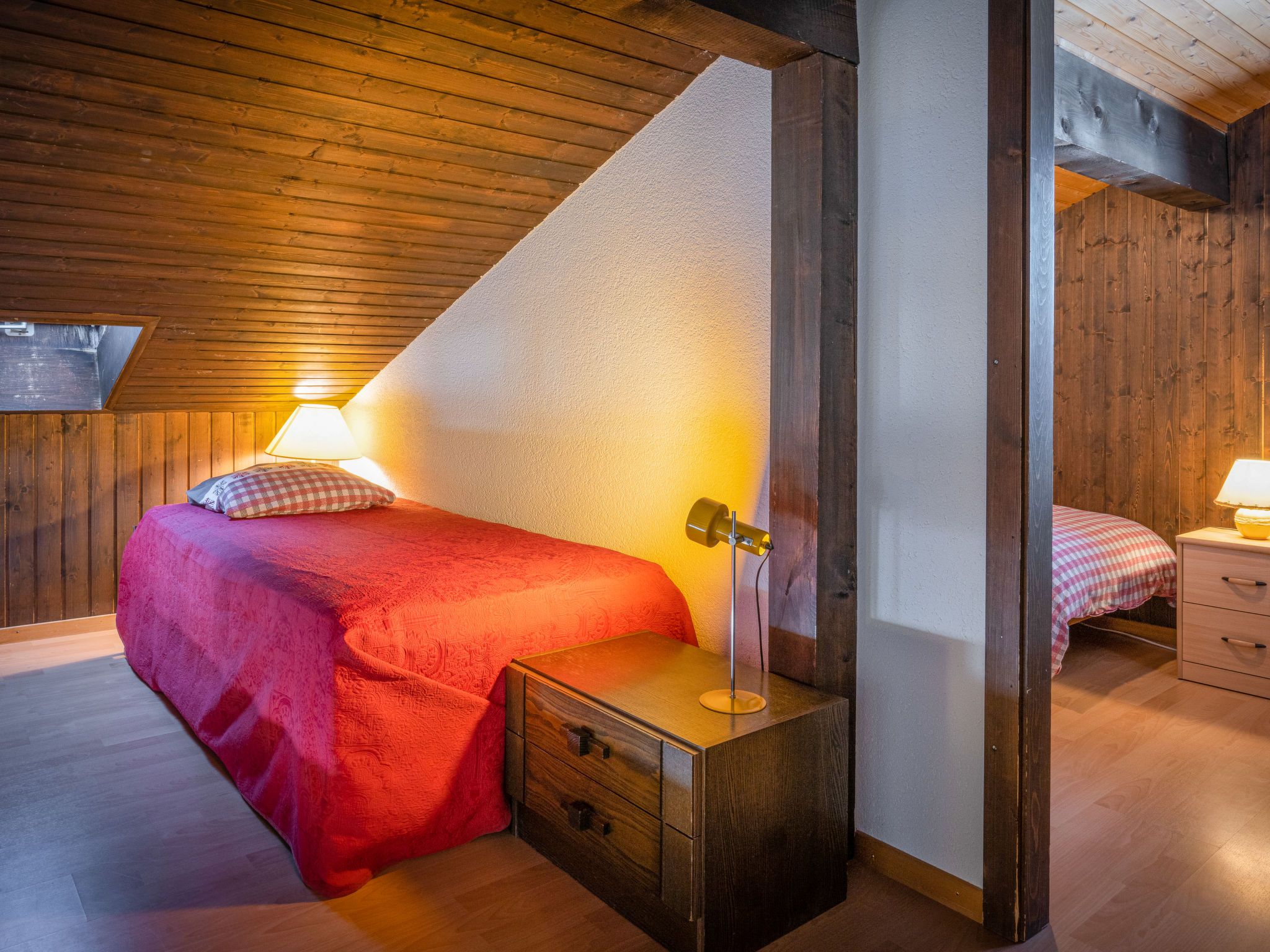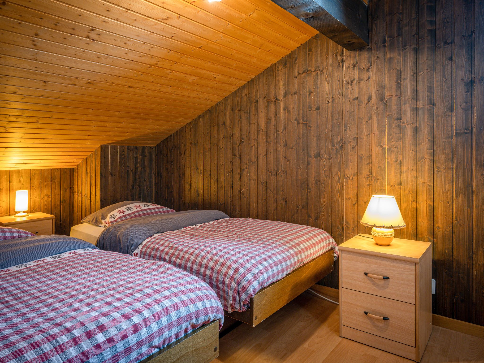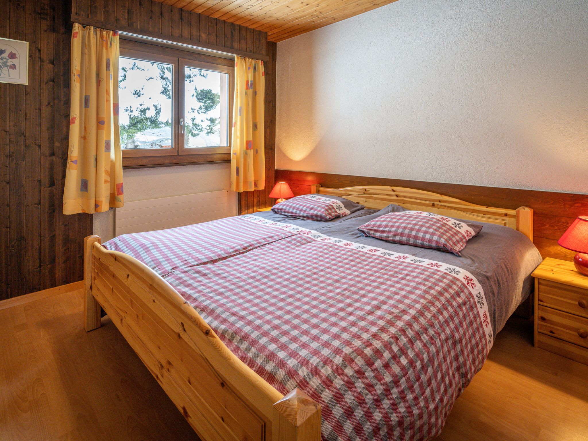 Jorasse C 20, 4-Zimmer-Wohnung 98 m2 auf 2 Stockwerken im 2. Stock, Südwestlage. Komfortabel und geschmackvoll eingerichtet: Eingang. Wohn-/Esszimmer mit Kabel-TV, Flachbildschirm, Radio und CD. Ausgang zum Balkon, Richtung Südwesten. Offene Küche (Backofen, Geschirrspüler, 4 Glaskeramikplatten, Toaster, Wasserkocher, Mikrowelle, elektrische Kaffeemaschine, Kapseln für die Kaffeemaschine (Nespresso) extra, Racletteofen, Fondue Set (Chinoise, Käse)). Dusche/WC. Obergeschoss: 1 Zimmer mit 1 Doppelbett (2 x 90 cm, Länge 200 cm). Ausgang zum Balkon, Richtung Südwesten. 1 Zimmer mit 1 Doppelbett (2 x 90 cm, Länge 200 cm). 1 Zimmer mit 2 Betten (90 cm, Länge 190 cm). Galerie. Dusche/WC. Balkon 10 m2, Südwestlage, kleiner Balkon 3 m2, Südwestlage. Terrassenmöbel, Liegestühle (2). Zur Verfügung: Babybett bis 2 Jahre, Haartrockner. Internet (Wireless LAN, gratis). Parkplatz. Bitte beachten: Nichtraucher-Unterkunft. Maximal 1 Haustier/Hund erlaubt. Anstelle eines abgeschlossenen Schlafzimmers befinden sich manche Schlafplätze in einem offenen Bereich (Galerie, Nische etc.).