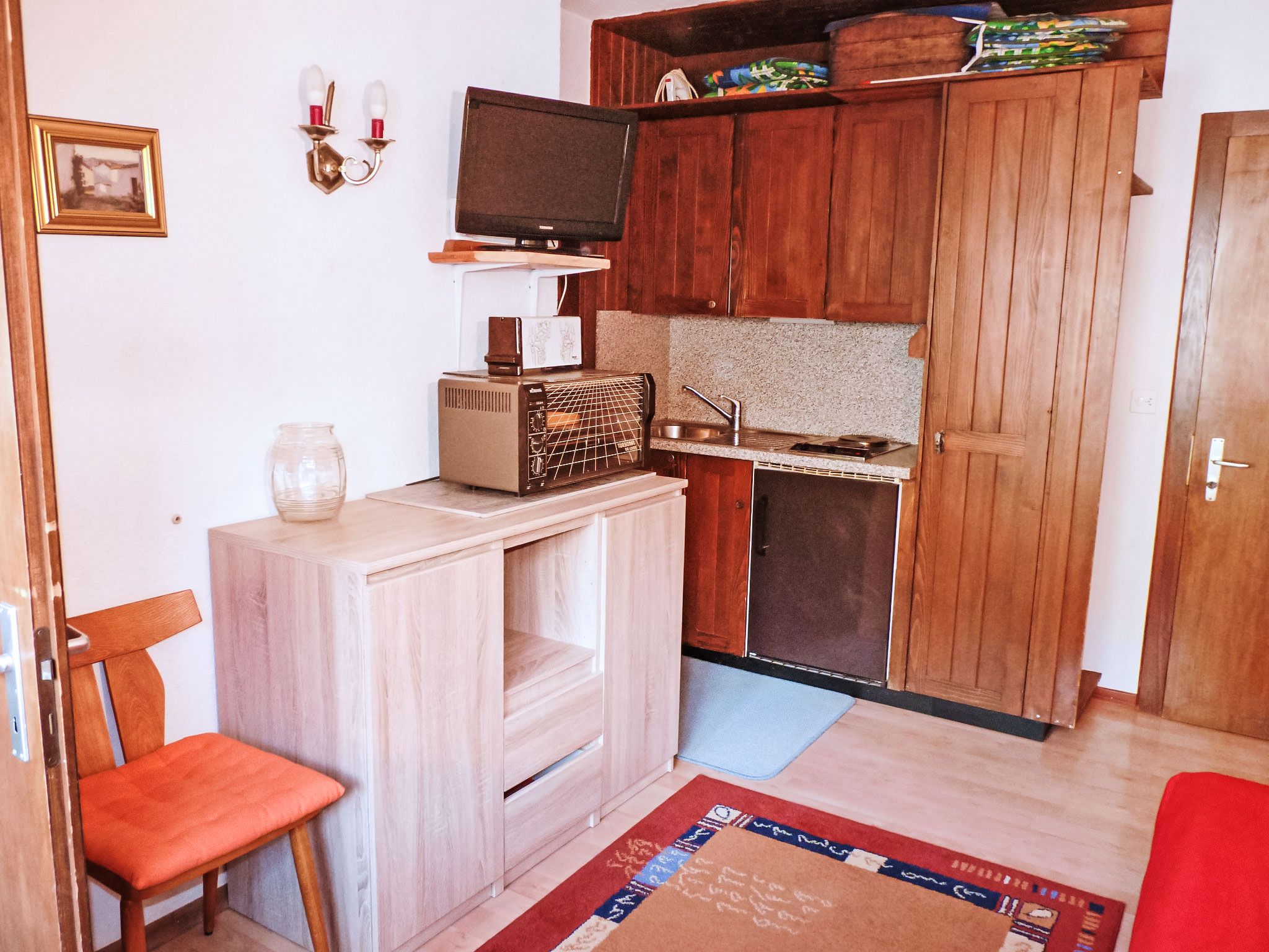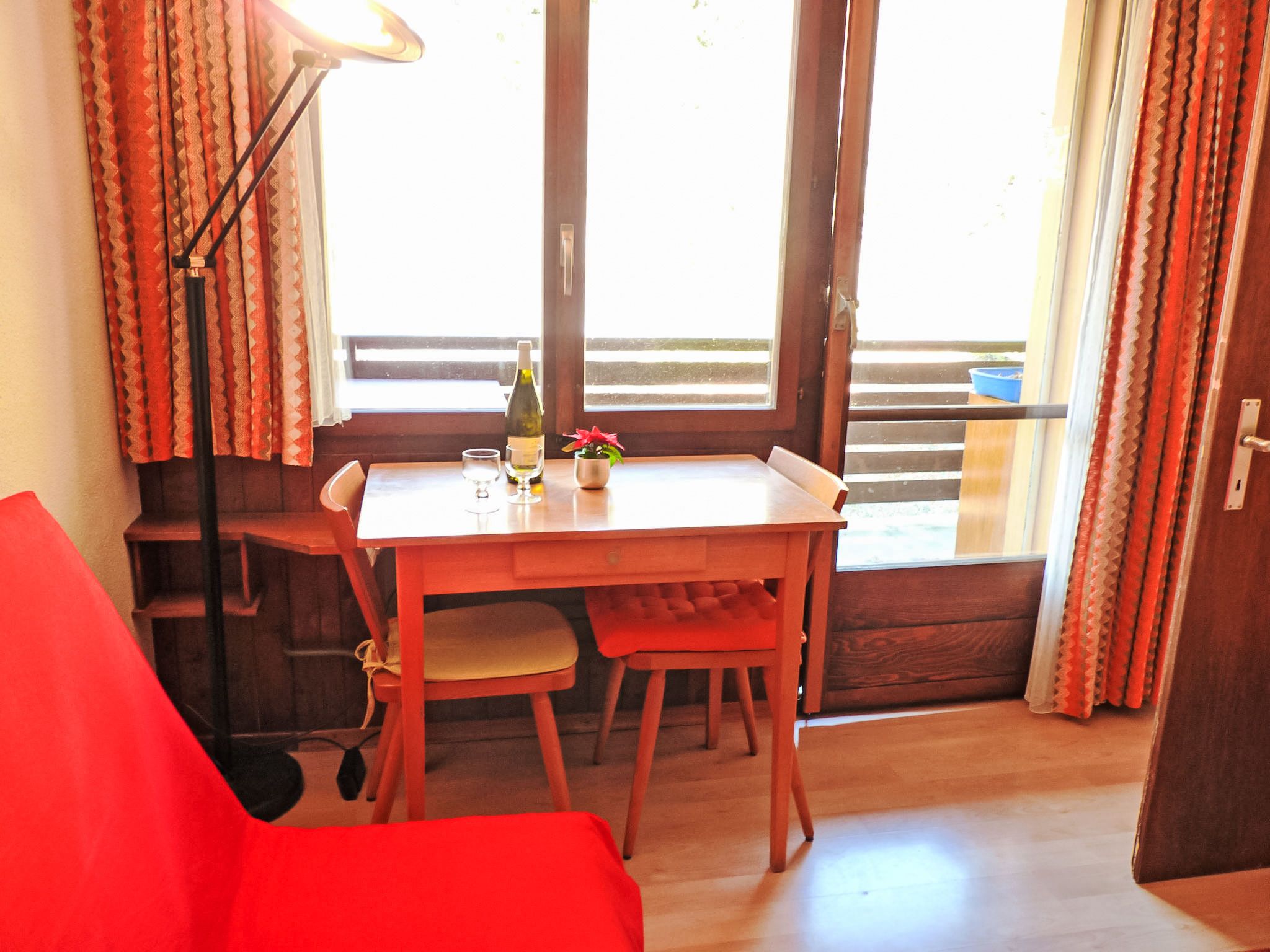 Tourbillon A 27, 2-Zimmer-Wohnung 25 m2 im 2. Stock, Nordlage. Zweckmässig eingerichtet: kleines Wohn-/Esszimmer mit 1 Diwanbett, Kabel-TV, Flachbildschirm und Radio. Ausgang zum Balkon. 1 Zimmer mit 2 Betten (80 cm). Kochnische (2 Kochplatten, Mini-Backofen). Dusche/WC. Balkon 10 m2. Schöne Sicht auf die Berge und den Wald. Parkplatz. Bitte beachten: Nichtraucher-Unterkunft. Maximal 1 Haustier/Hund erlaubt. Im Haus Tourbillon A.