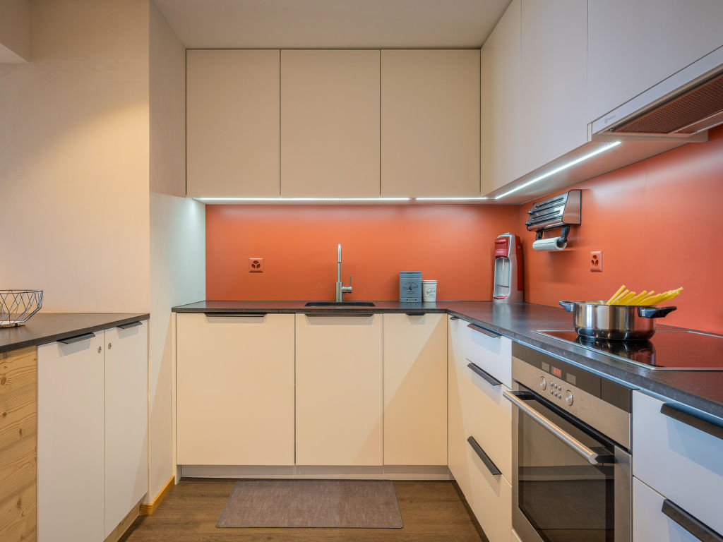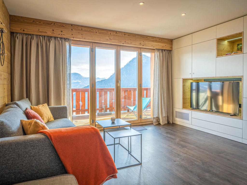 Plein Soleil A 9, 2-Zimmer-Wohnung 54 m2 im 3. Stock, Südlage. Objekt geeignet für 2 Erwachsene + 1 Kind. Komfortabel und geschmackvoll eingerichtet: Eingang. Wohnzimmer mit 1 Doppeldiwanbett und Kabel-TV (Flachbildschirm). Ausgang zum Balkon, Richtung Süden. 1 Zimmer mit 1 Bett (160 cm, Länge 200 cm). Ausgang zum Balkon, Richtung Norden. Offene Küche (Backofen, Geschirrspüler, 4 Induktionskochplatten, Mikrowelle, elektrische Kaffeemaschine, Kapseln für die Kaffeemaschine (nespresso) extra, Racletteofen, Fondue Set (Chinoise, Käse)). Dusche/WC. Balkon. Balkonmöbel, Elektrogrill, Liegestühle (2). Schöne Sicht auf die Berge und das Tal. Zur Verfügung: Internet (WLAN, gratis). Parkplatz. Bitte beachten: Nichtraucher-Unterkunft.