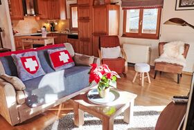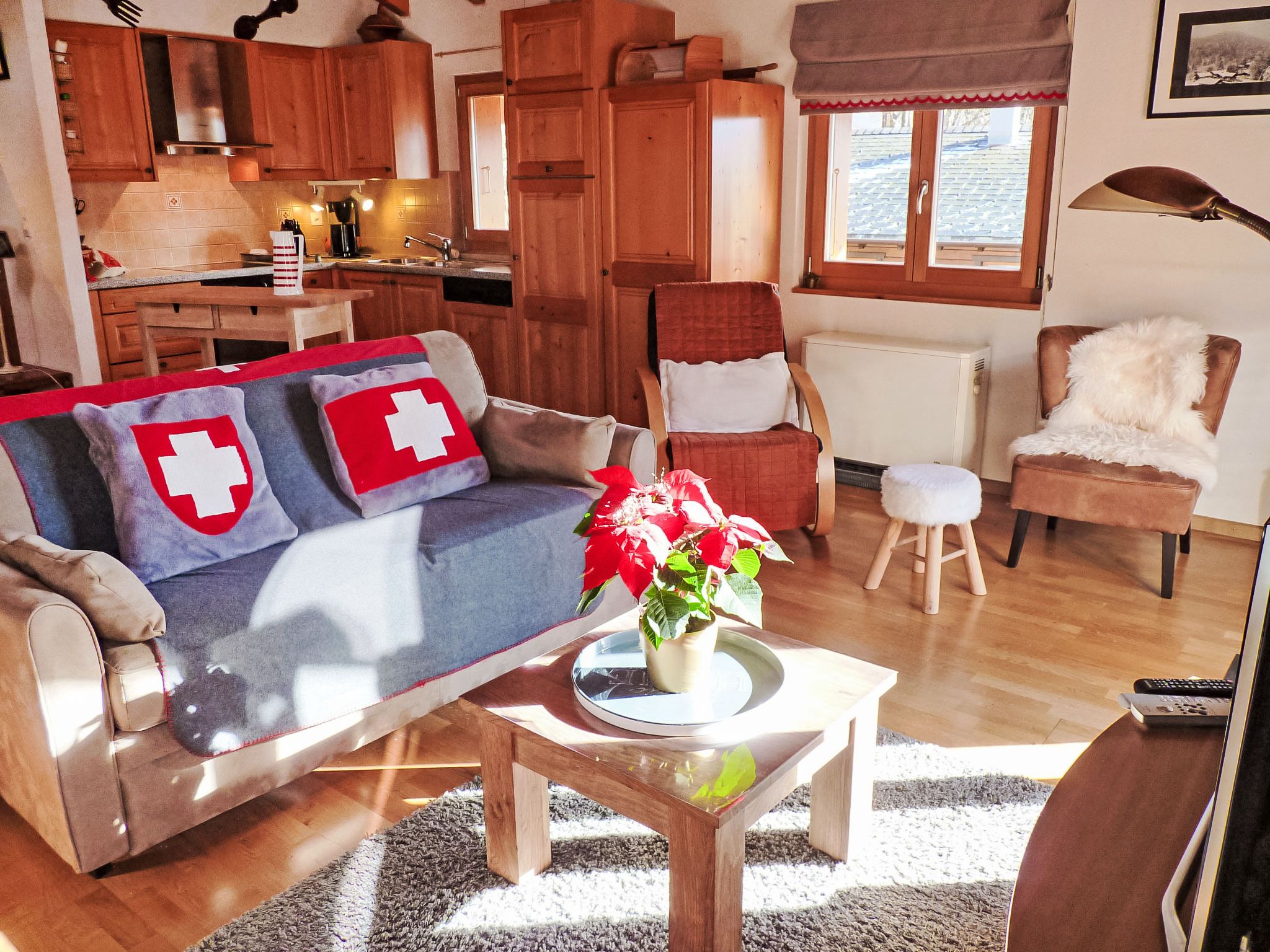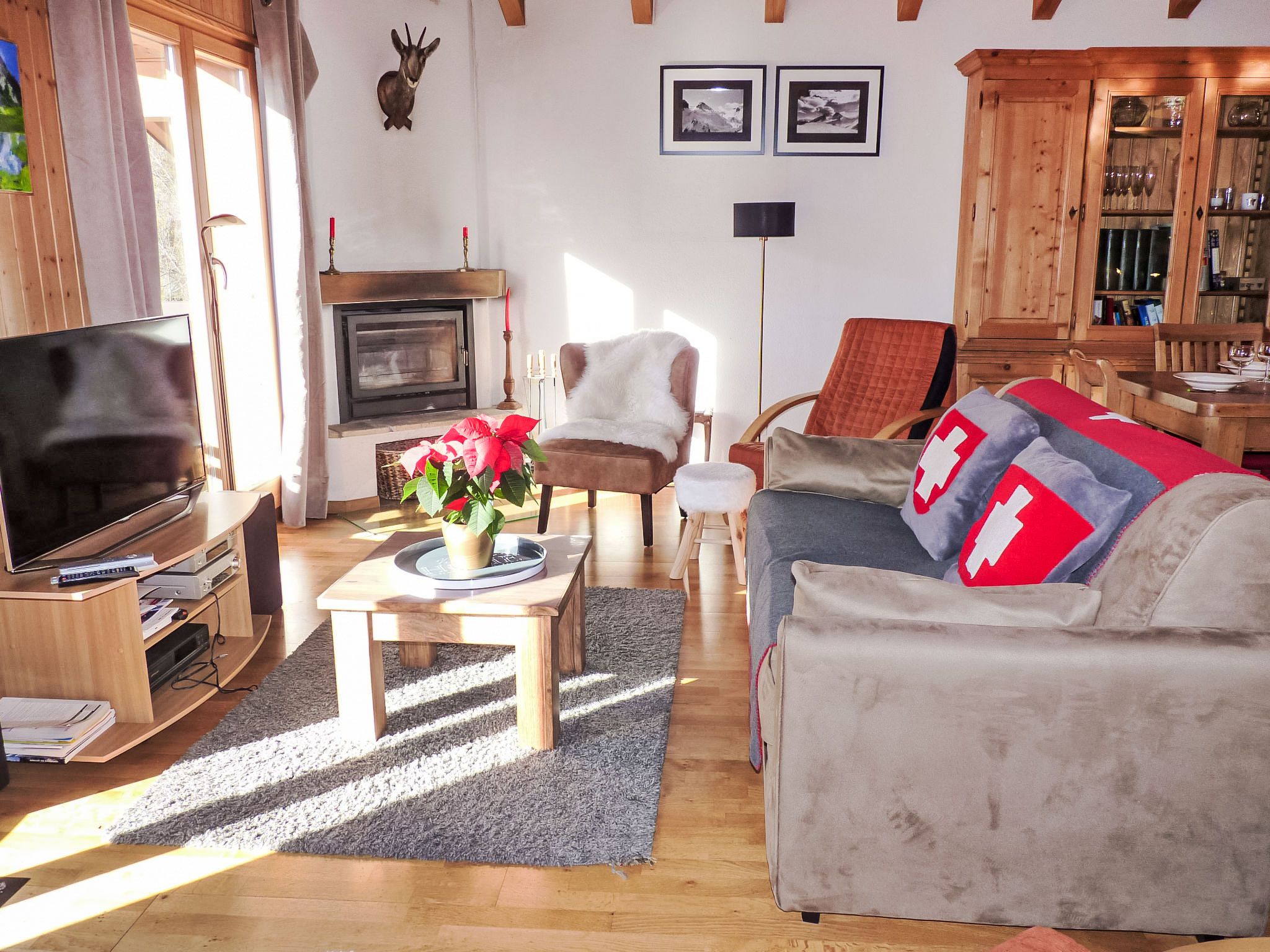 Ropiar, 5-Zimmer-Chalet 150 m2 auf 2 Stockwerken, Südwestlage. Komfortabel und schön eingerichtet: grosses Wohn-/Esszimmer mit offenem Kamin, Esstisch, Kabel-TV und Flachbildschirm. Ausgang zum Balkon, Richtung Südwesten. 1 Zimmer mit 2 Betten (90 cm, Länge 190 cm). Ausgang zur Terrasse, Richtung Norden. Grosse, offene Küche (Backofen, Geschirrspüler, 4 Glaskeramikplatten, Mikrowelle, elektrische Kaffeemaschine, Racletteofen, Fondue Set (Käse)). Dusche/WC. Unteres Geschoss: 1 Zimmer mit 1 Doppelbett (2 x 90 cm, Länge 200 cm). Ausgang zur Terrasse, Richtung Süden. 1 Zimmer mit 1 Doppelbett (2 x 90 cm, Länge 200 cm). Ausgang zur Terrasse, Richtung Süden. 1 Zimmer mit 1 x 2 Etagenbetten (90 cm, Länge 200 cm). Bad/WC. E-Heizung. Balkon 7 m2, Südwestlage, Rasen 14 m2. Terrassenmöbel, Balkonmöbel, Gartengrill (mobil), Liegestühle (2). Herrliche Sicht auf die Berge. Zur Verfügung: Waschmaschine, Bügeleisen, Haartrockner. Internet (Wireless LAN, gratis). Parkplatz (3 Autos) beim Haus. Bitte beachten: Nichtraucher-Unterkunft.