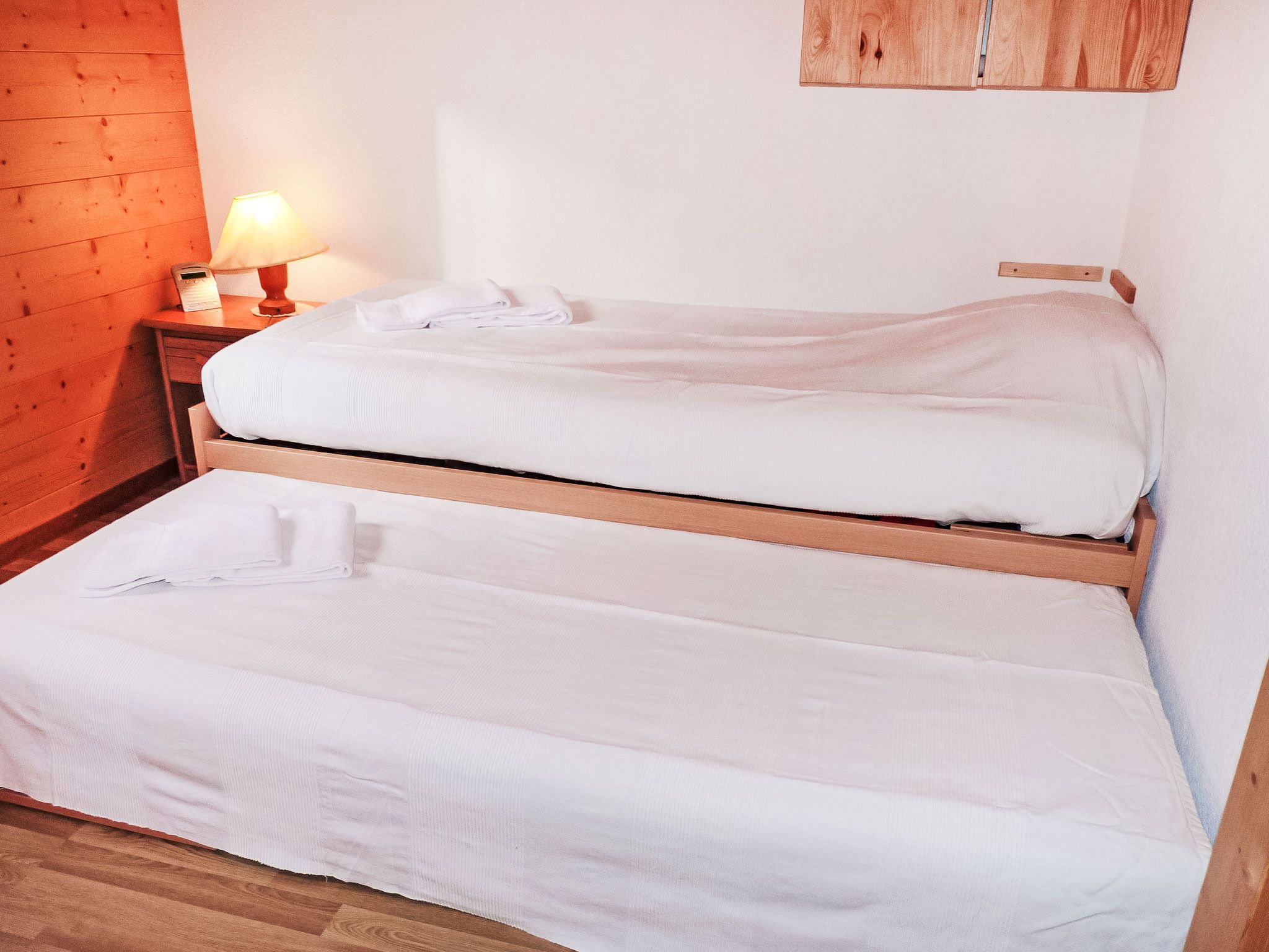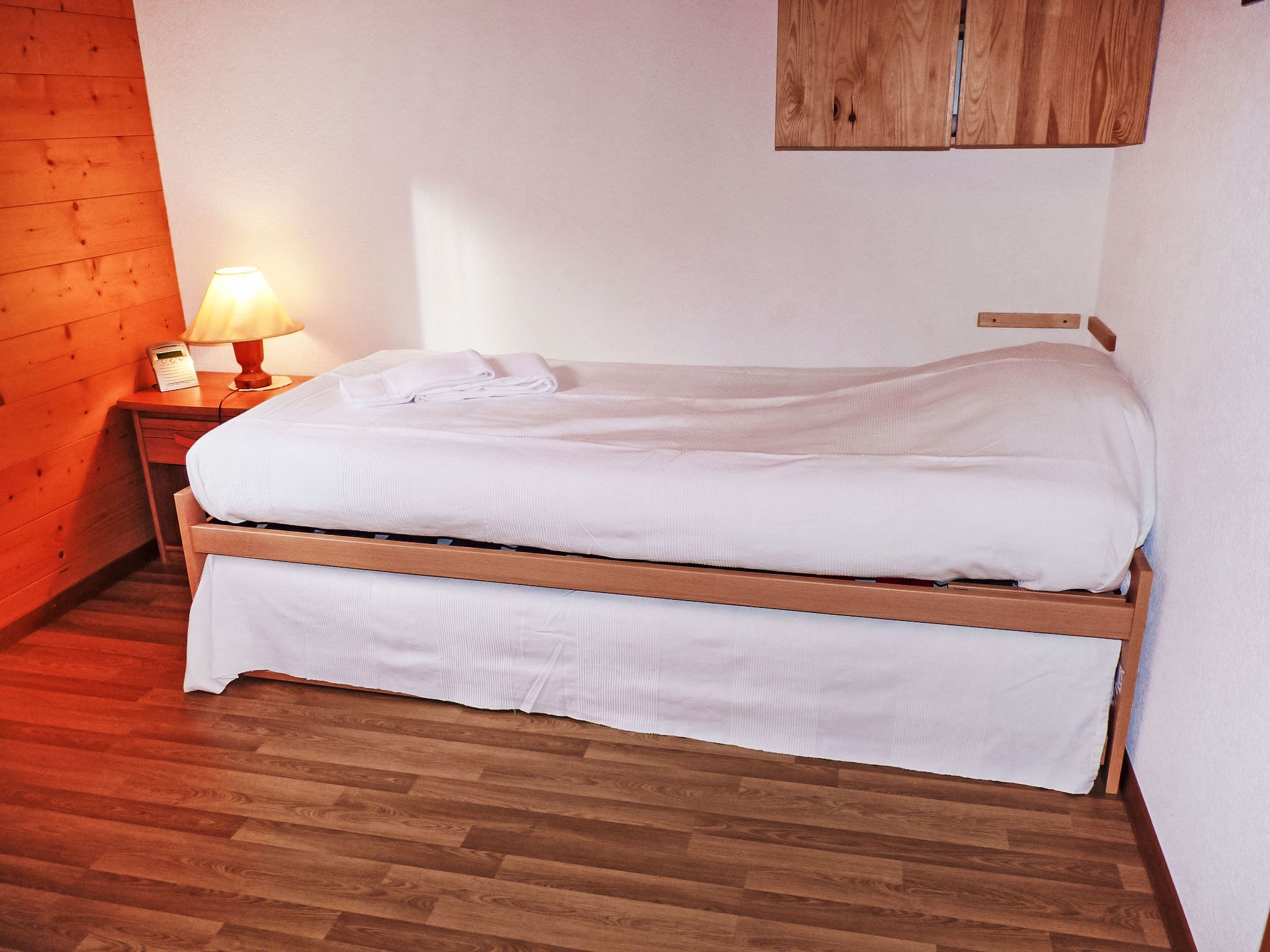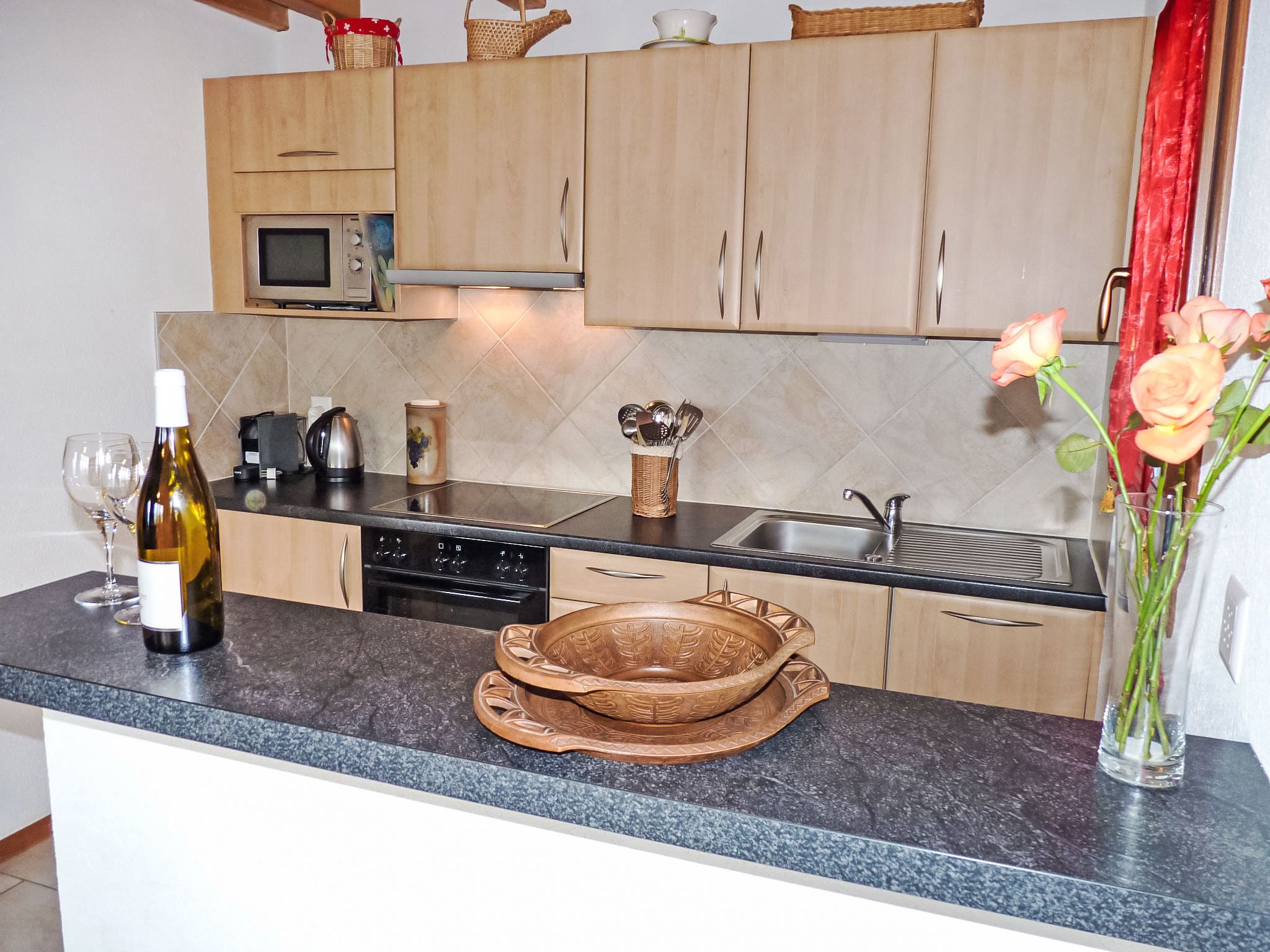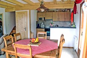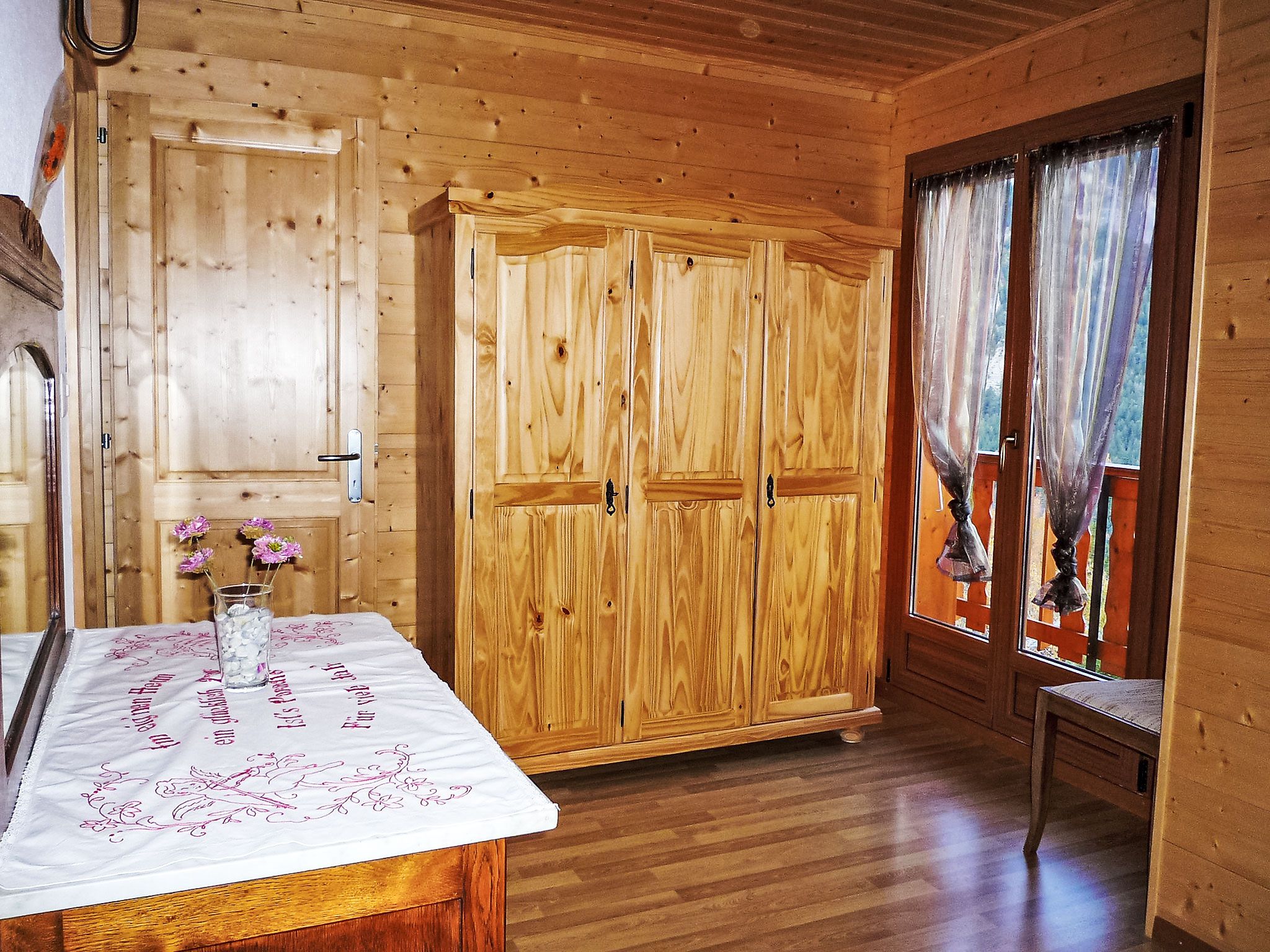 Escapade, 4-Zimmer-Chalet 100 m2 auf 2 Stockwerken. Komfortabel und geschmackvoll eingerichtet: Eingang. Wohn-/Esszimmer mit offenem Kamin, Sat-TV, Flachbildschirm, CD, Stereoanlage und DVD. Ausgang zur Terrasse, Richtung Süden. Offene Küche (Backofen, Geschirrspüler, 4 Glaskeramikplatten, Mikrowelle, Tiefkühler, elektrische Kaffeemaschine, Kapseln für die Kaffeemaschine (Nespresso) extra, Racletteofen, Fondue Set (Chinoise, Käse)) mit Bar. Dusche/WC. Obergeschoss: 1 Zimmer mit 1 franz. Bett (160 cm, Länge 200 cm), Radio. Ausgang zum Balkon. 1 Zimmer mit 1 franz. Bett (160 cm, Länge 200 cm), Radio. Ausgang zum Balkon. 1 Zimmer mit 1 Ausziehbett (2 Pers. 2 x 90 cm, Länge 200 cm), Radio. Bad/WC. Grosse Terrasse 60 m2. Terrassenmöbel, Gartengrill, Liegestühle (6), Abstellkammer. Sehr schöne Sicht auf die Berge und das Tal. Zur Verfügung: Waschmaschine, Wäschetrockner, Bügeleisen, Kinderhochstuhl, Babybett bis 3 Jahre, Haartrockner, Holz (gratis). Parkplatz (2 Autos), Garage. Bitte beachten: Nichtraucher-Unterkunft.
